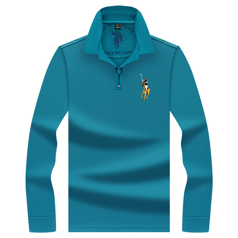 阿里虎男装保罗长袖体恤刺绣男t恤翻领纯棉色休闲时尚男士polo衫