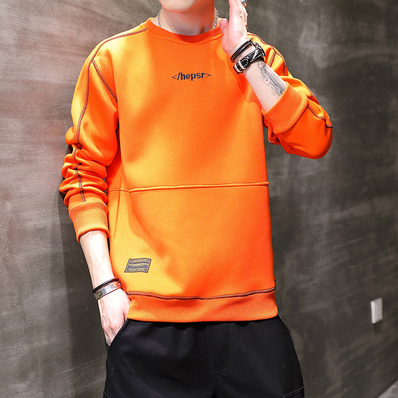 男士卫衣2023春秋季新款男圆领套头宽松卫衣假两件上衣潮长袖T恤