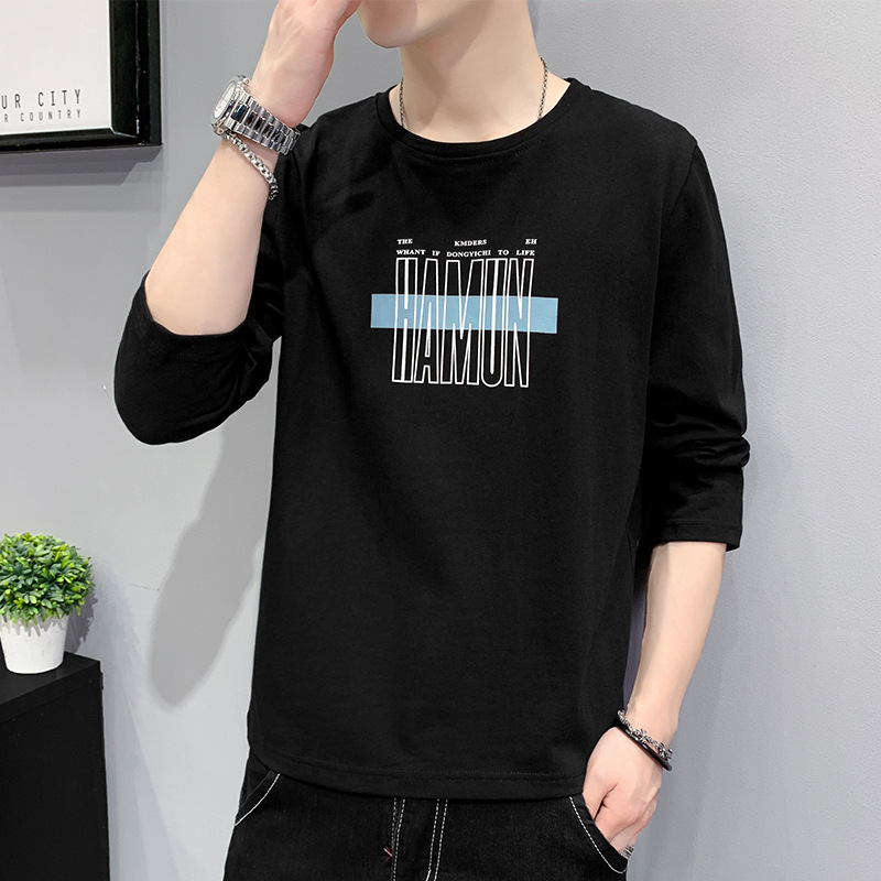 长袖t恤男纯棉宽松潮流ins上衣服秋季男装学生帅气卫衣体恤打底衫