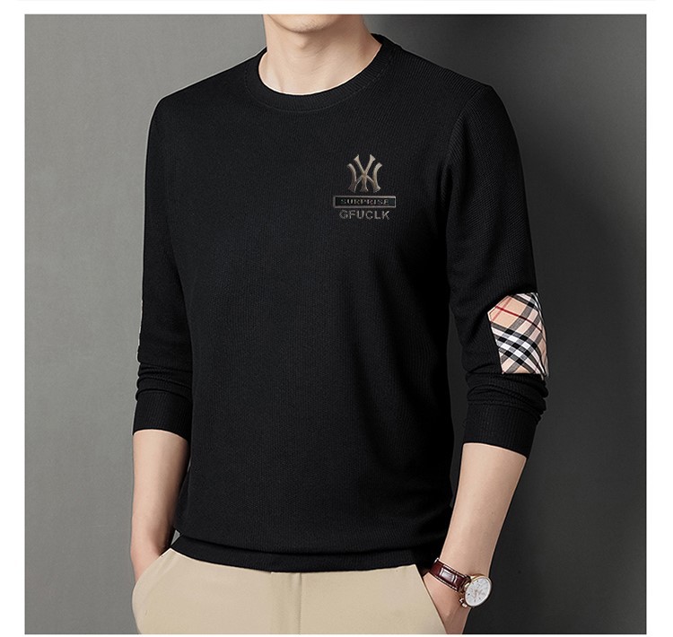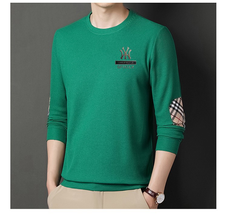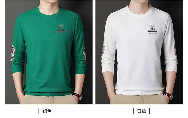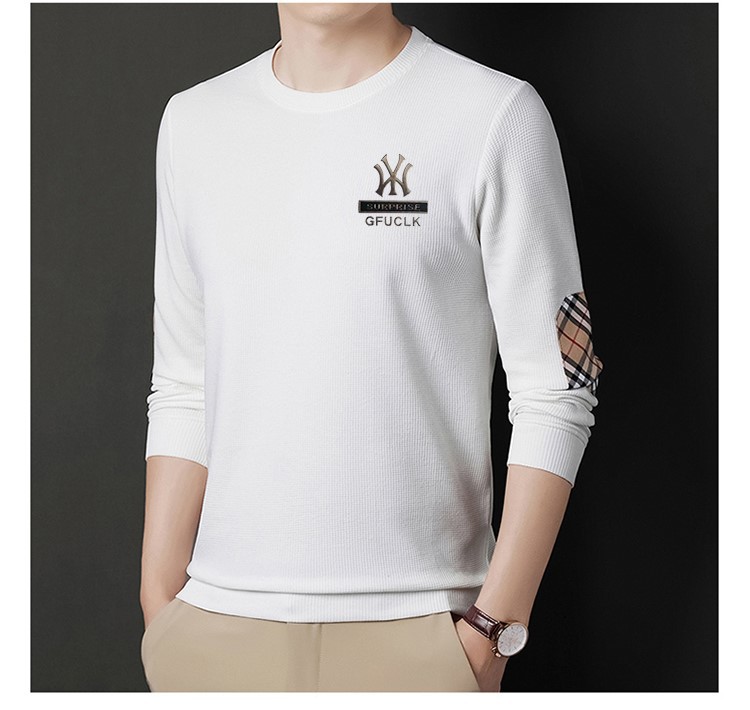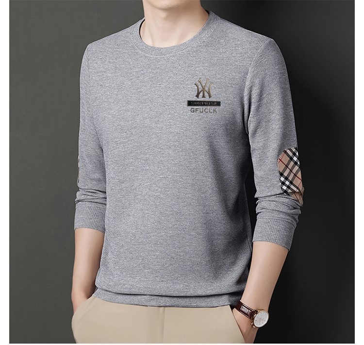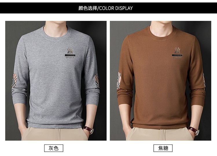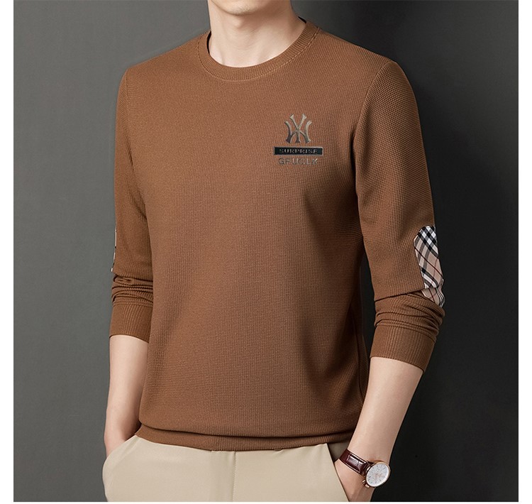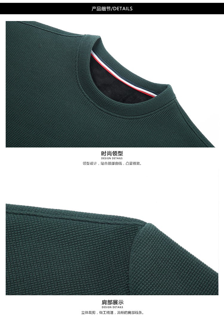 华夫格男士圆领长袖t恤 春秋宽松潮牌衣服秋季轻奢高街百搭卫衣潮