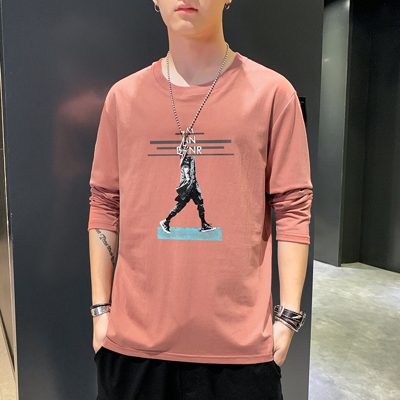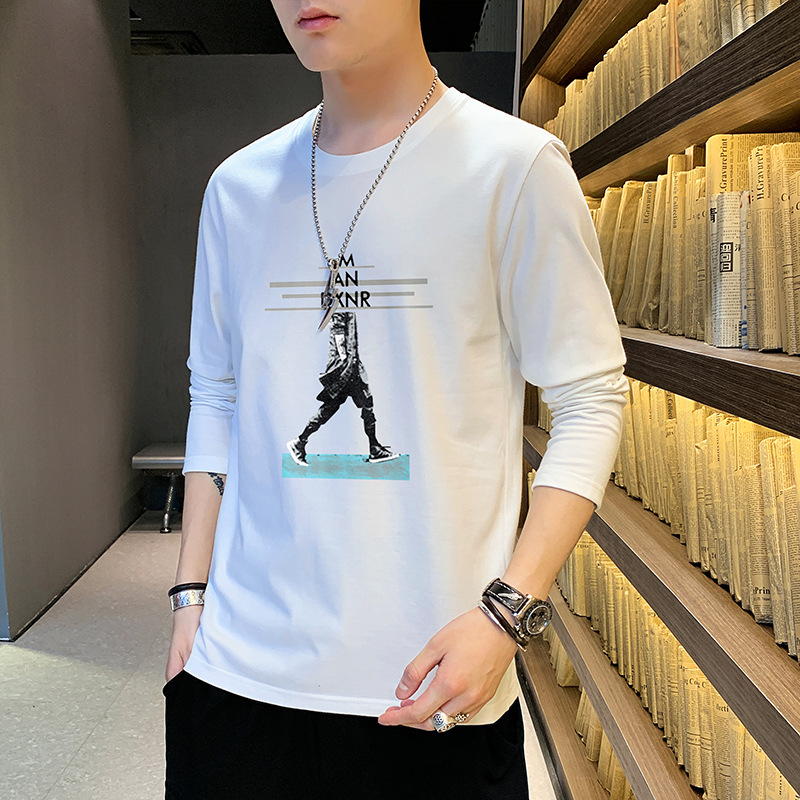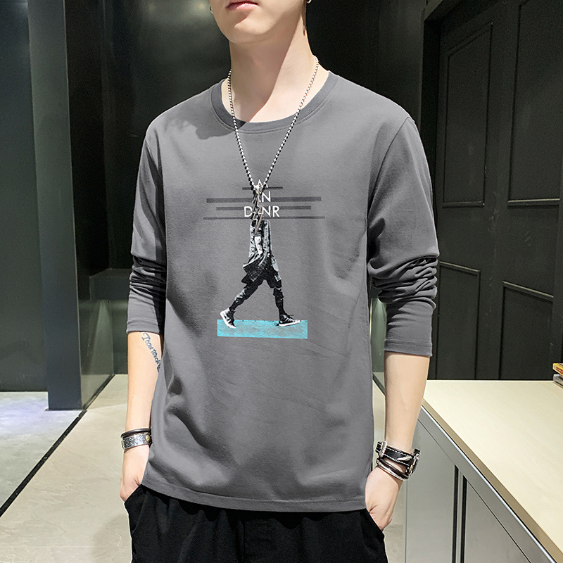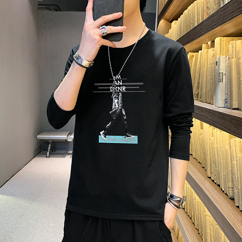 全棉长袖T恤男士春秋新款圆领宽松百搭卫衣青年帅气打底体恤男装