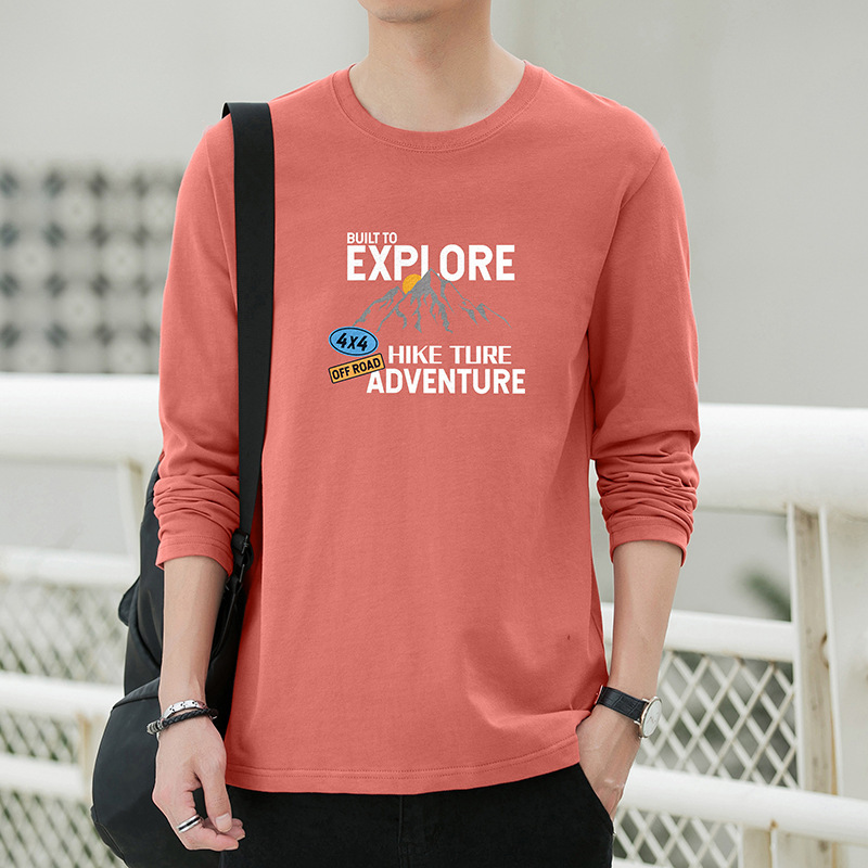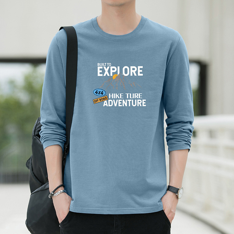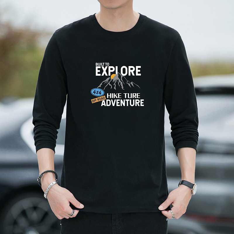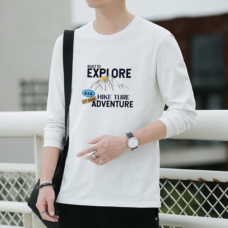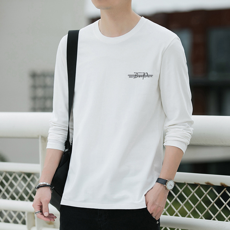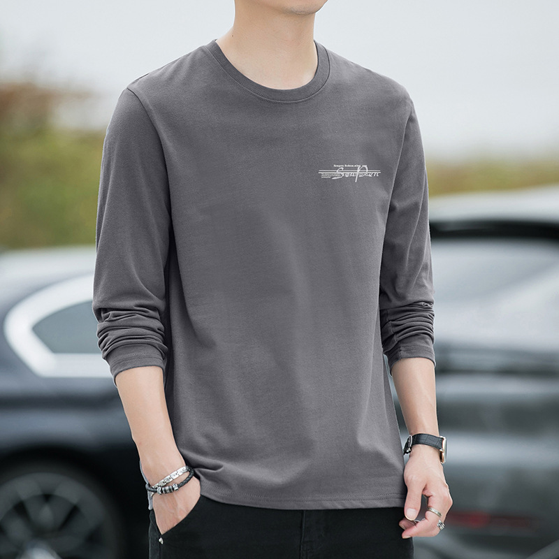 大码纯棉长袖T恤男士秋季圆领宽松百搭卫衣男青年打底衫体恤男装