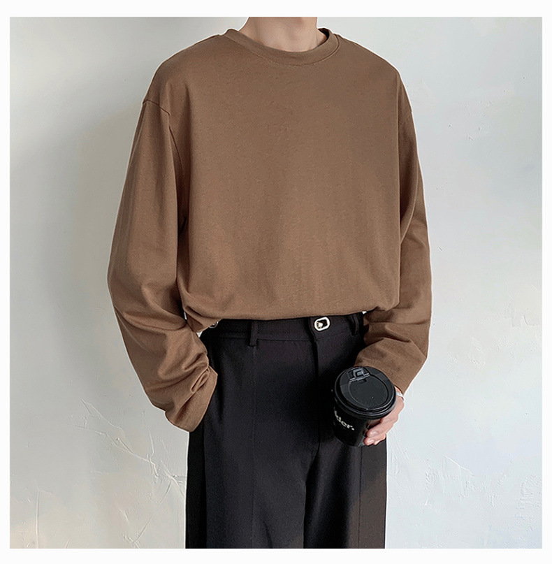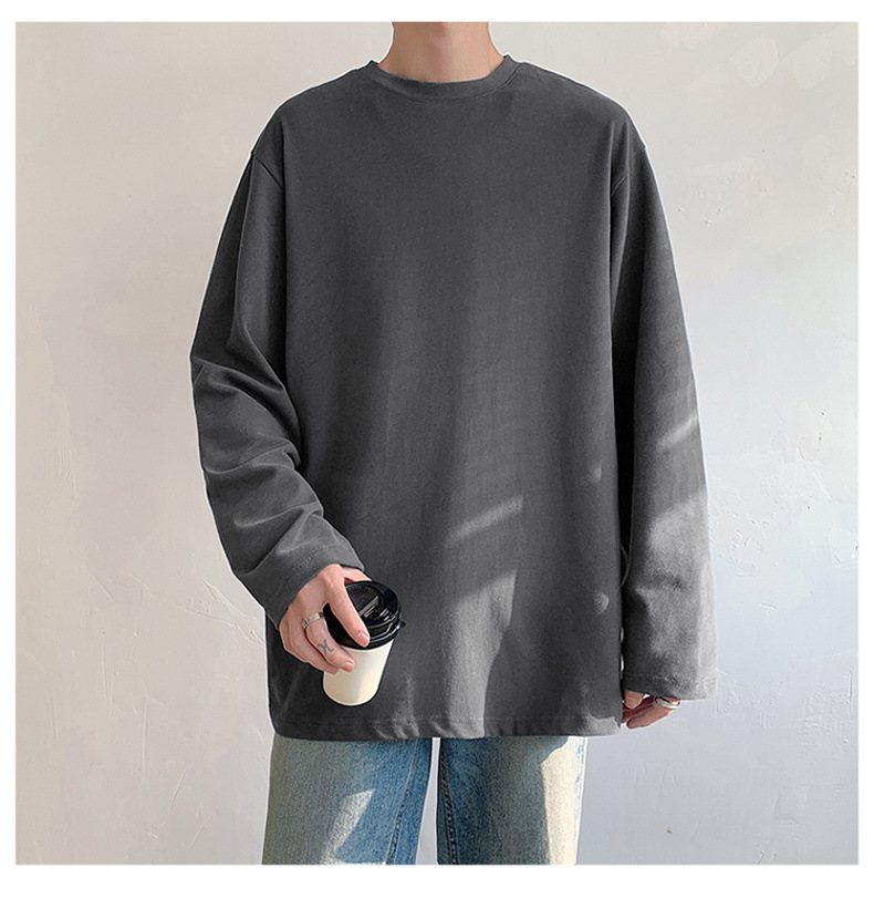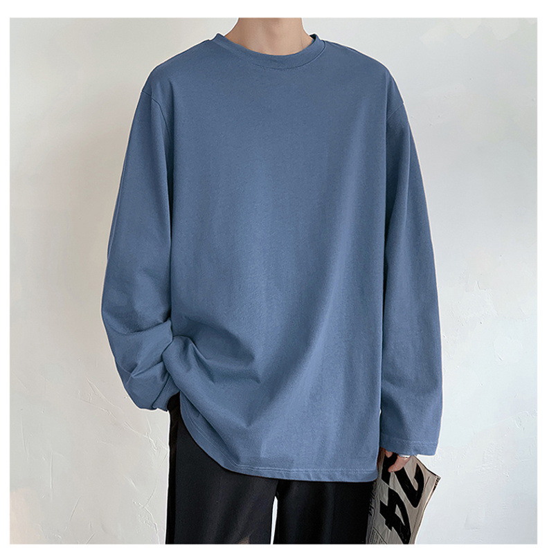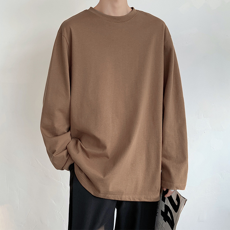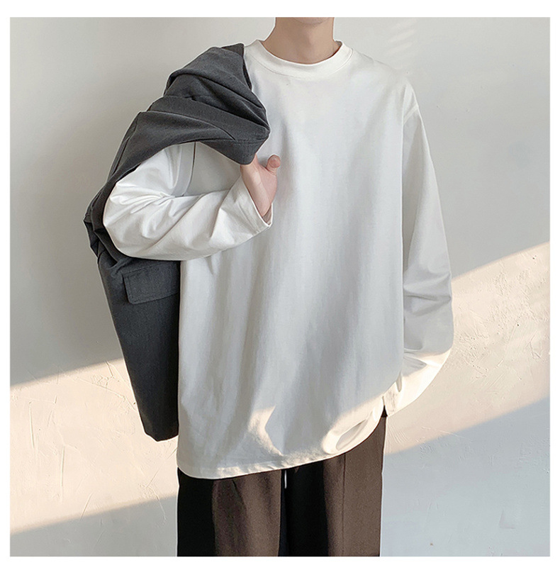 2023秋季纯棉长袖t恤男青少年纯色内搭打底衫宽松简约百搭卫衣男