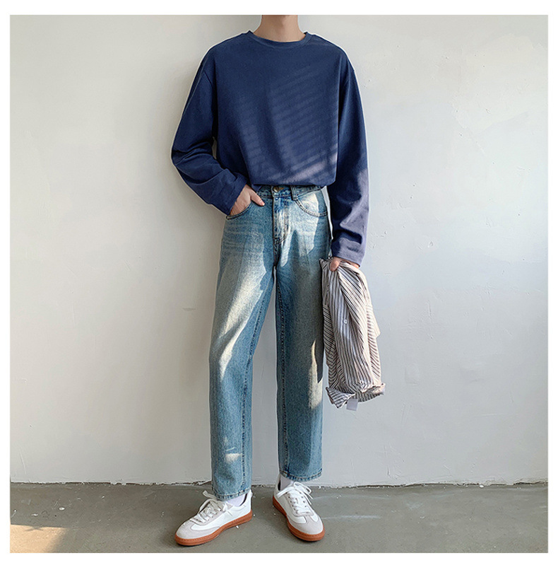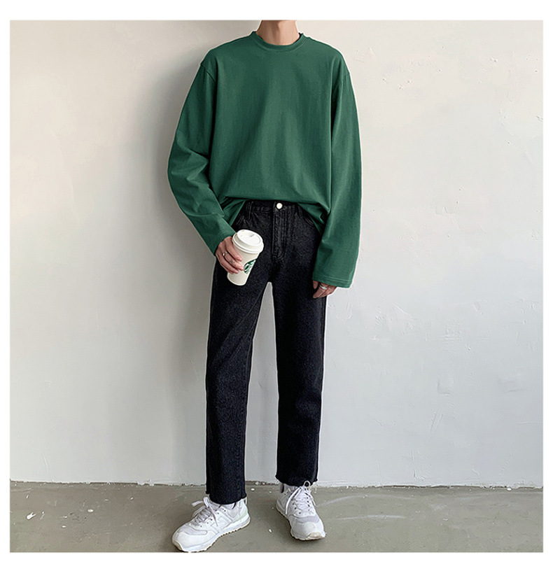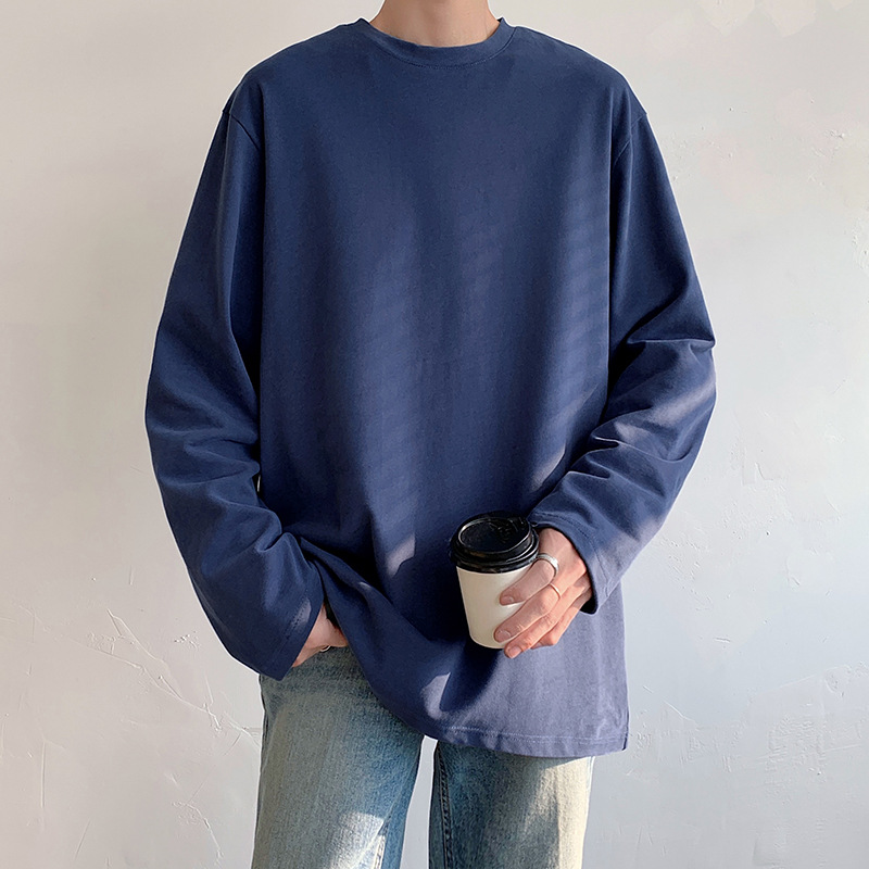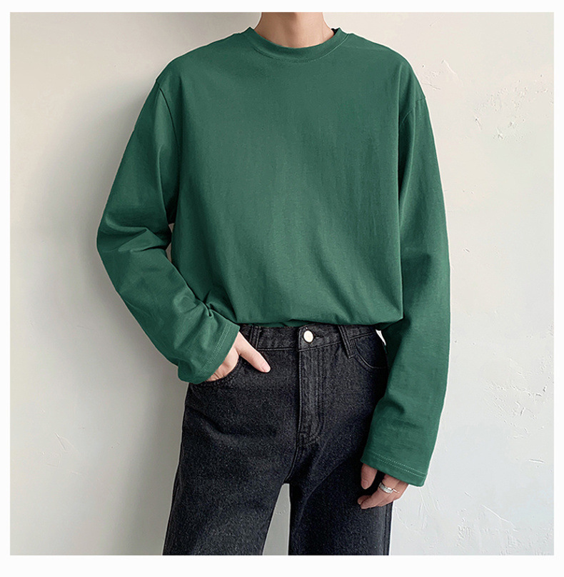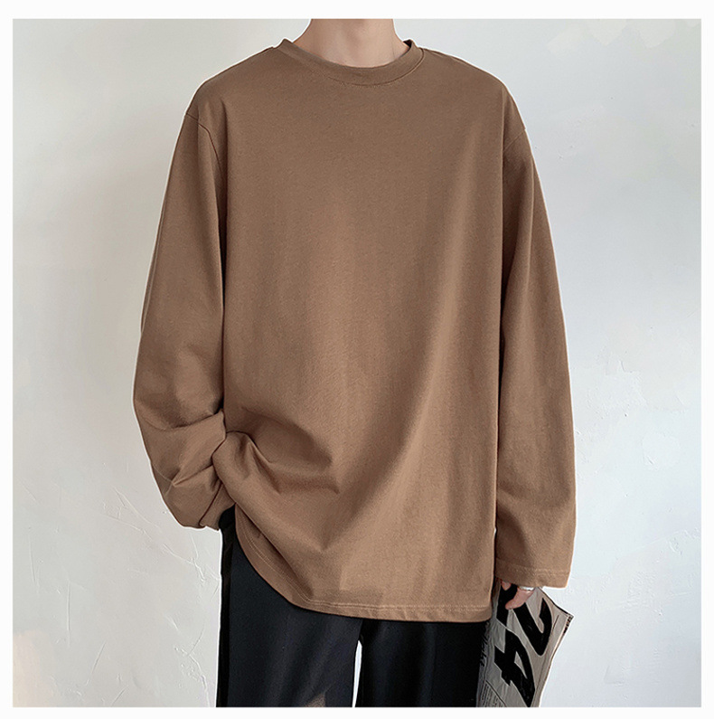 2023秋季纯棉长袖t恤男青少年纯色内搭打底衫宽松简约百搭卫衣男