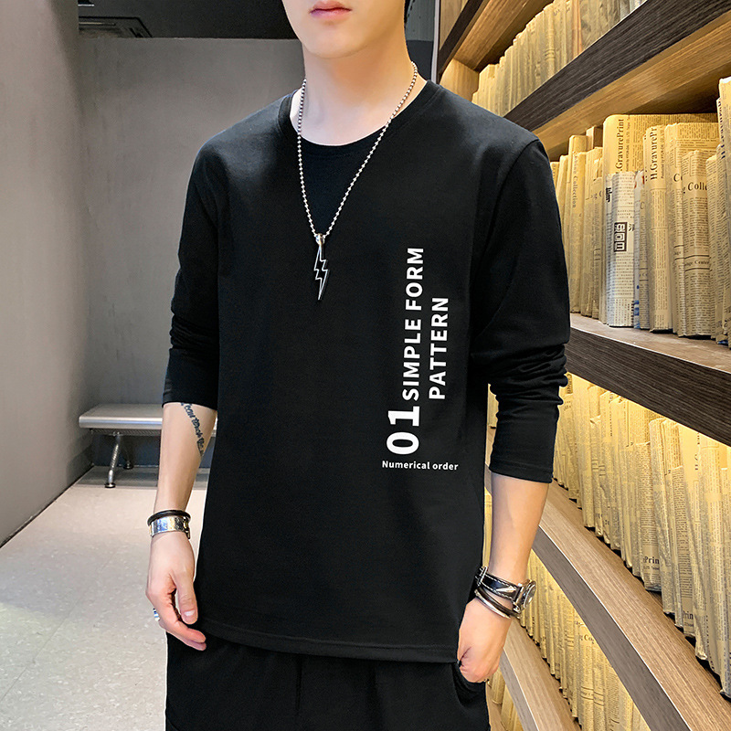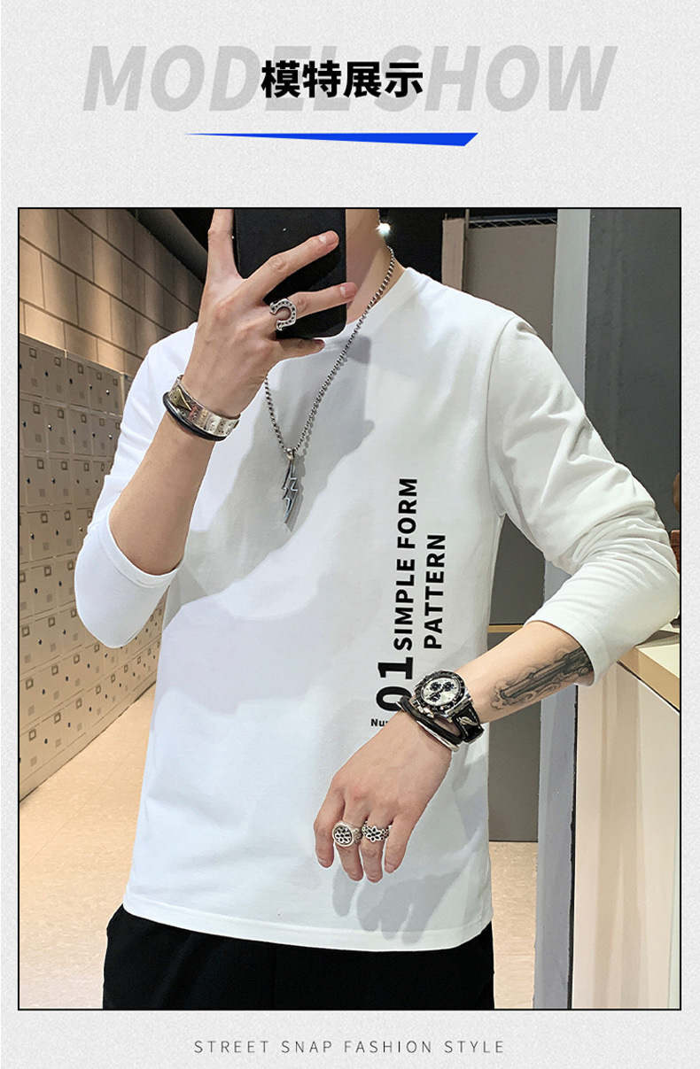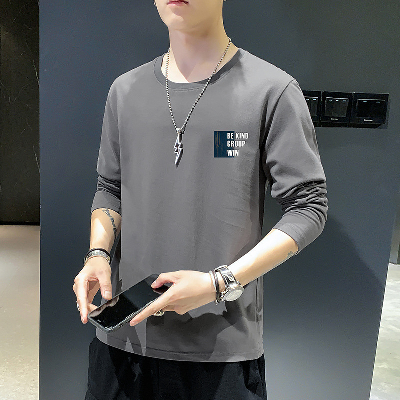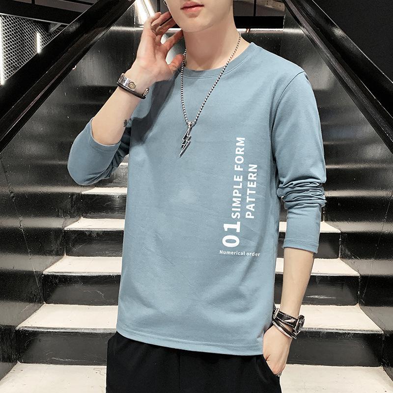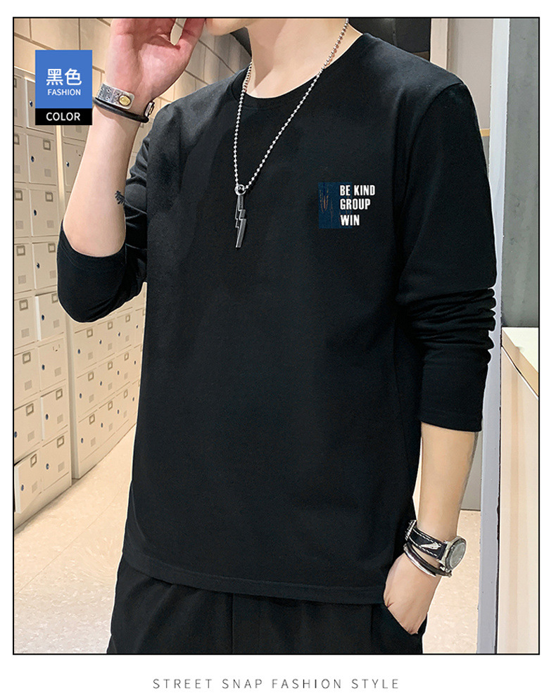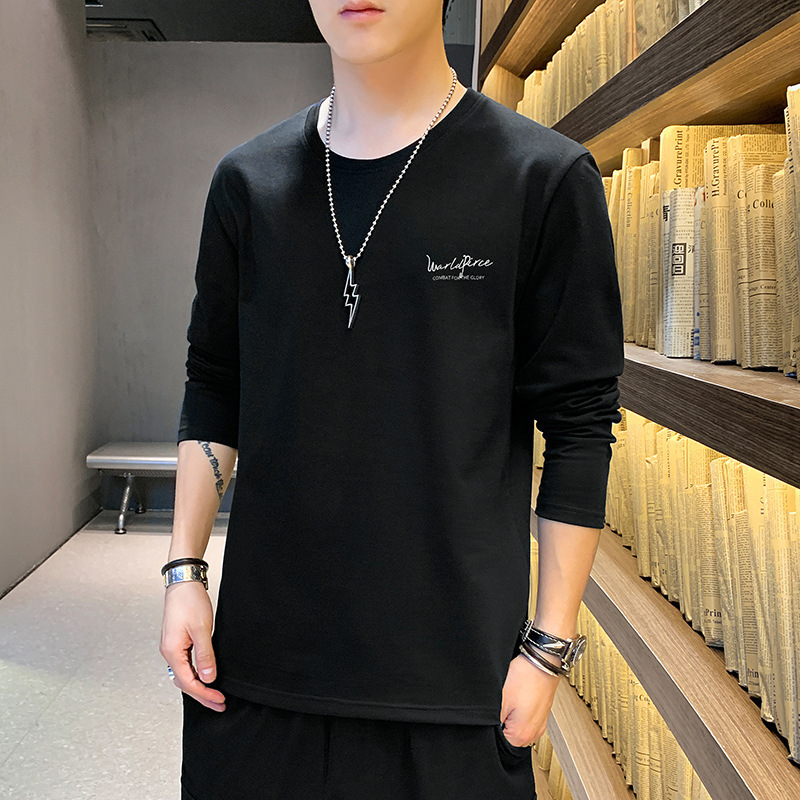 春秋季长袖T恤男士纯棉韩版圆领休闲打底衫上衣男装青年卫衣潮牌