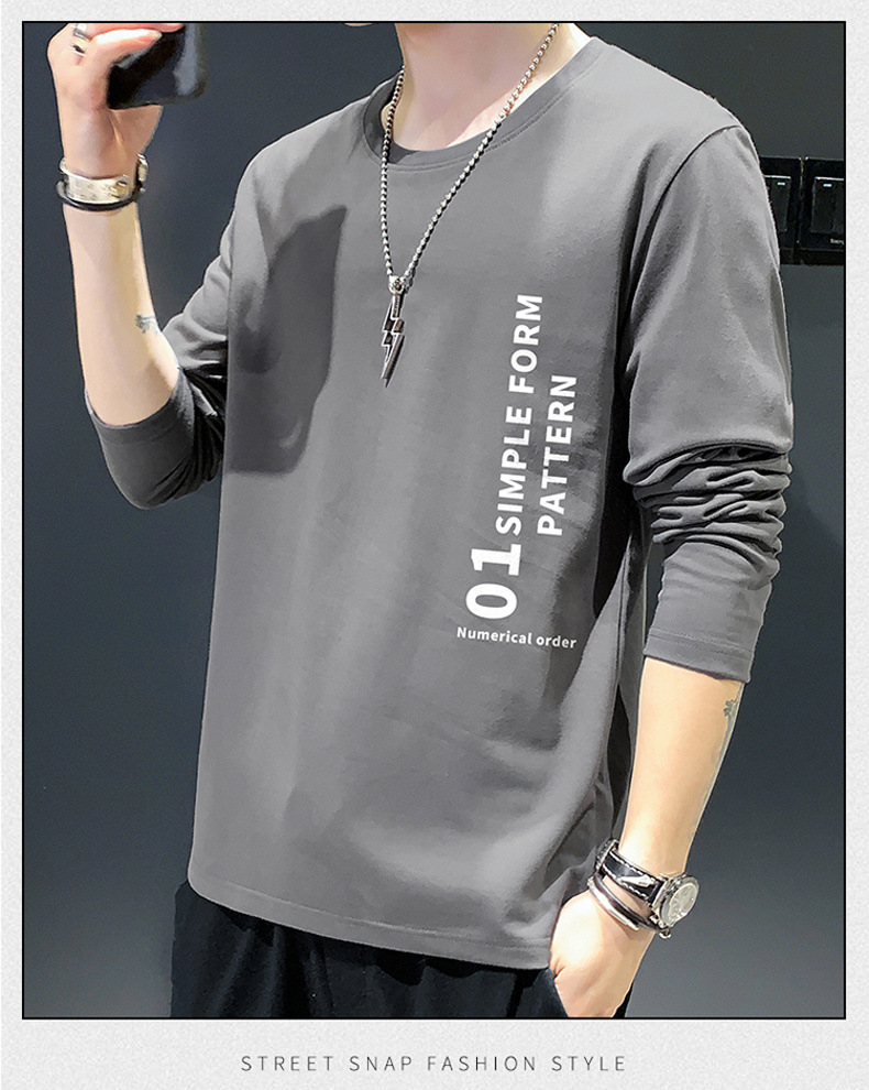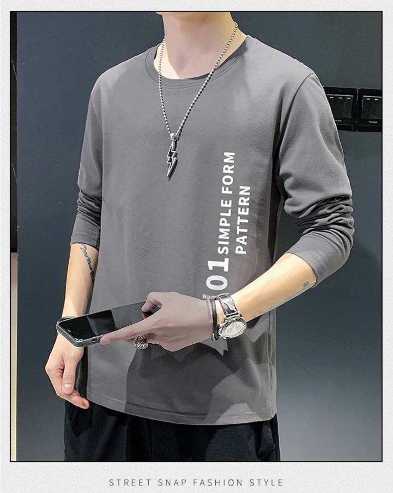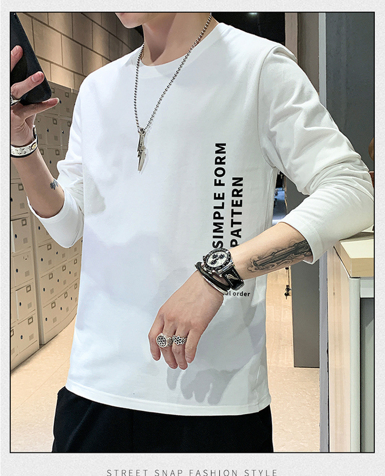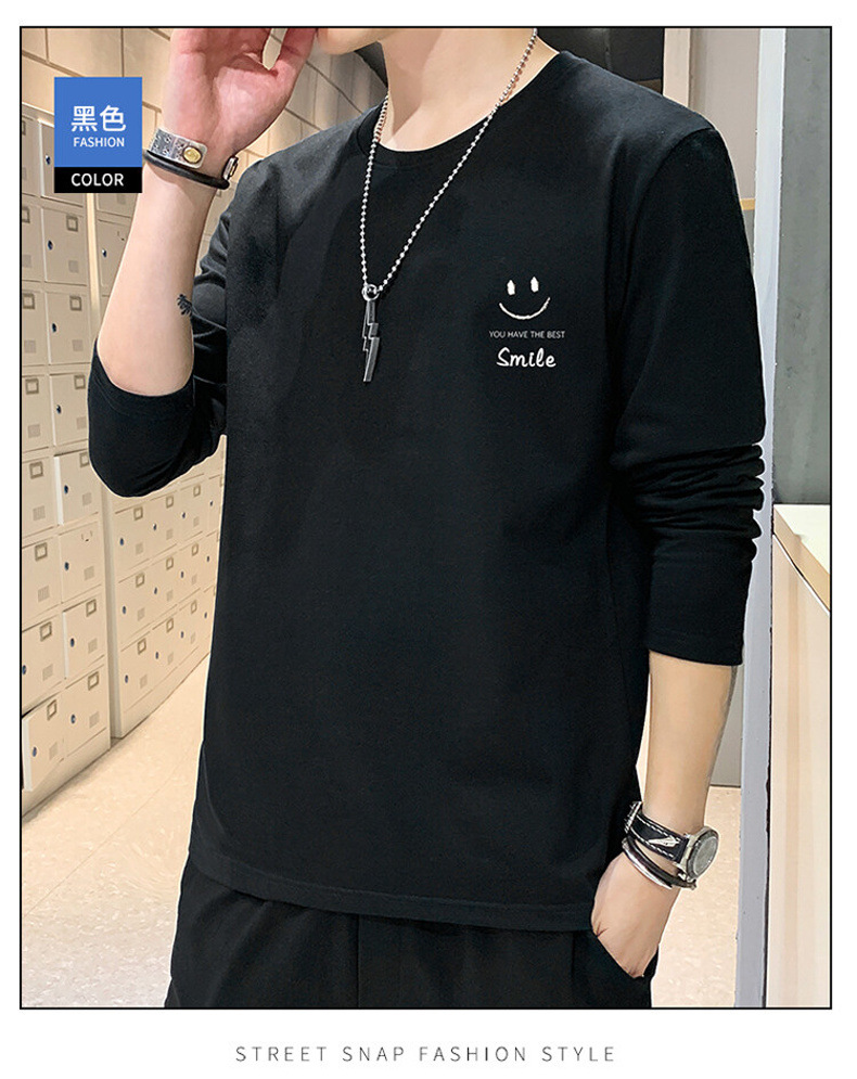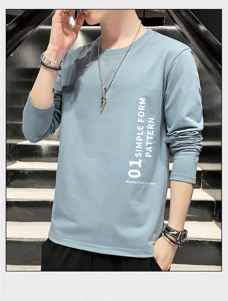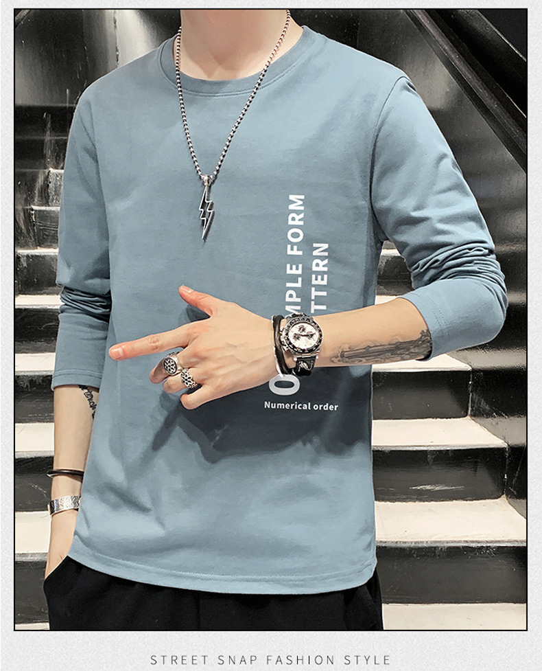 春秋季长袖T恤男士纯棉韩版圆领休闲打底衫上衣男装青年卫衣潮牌