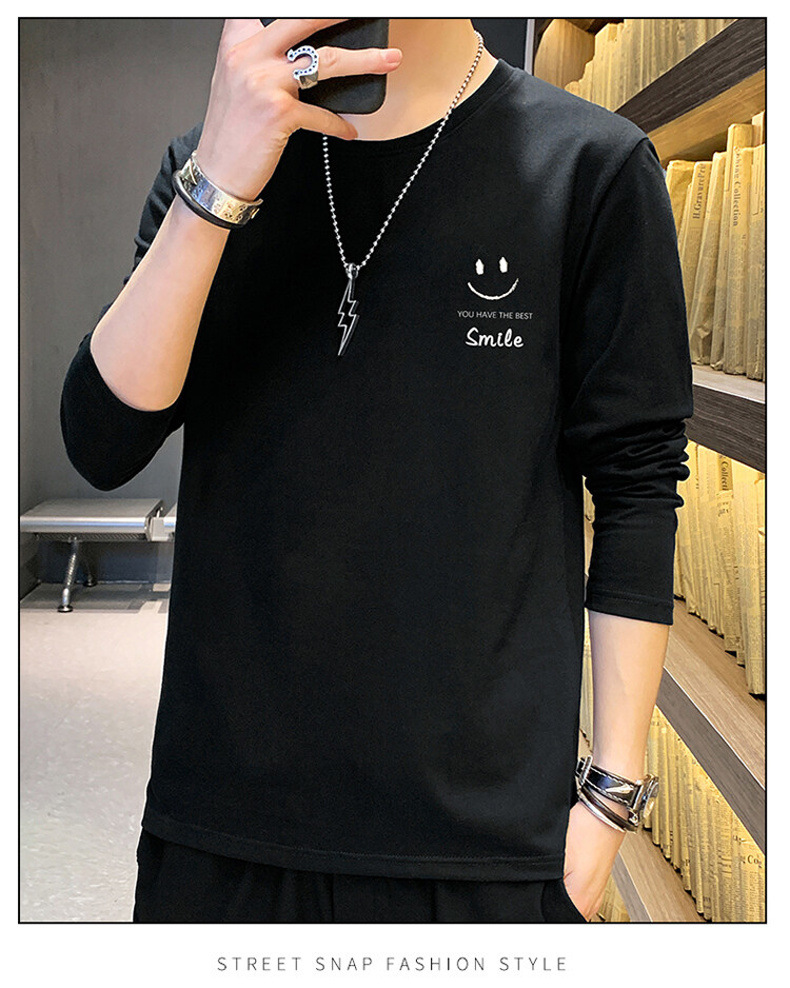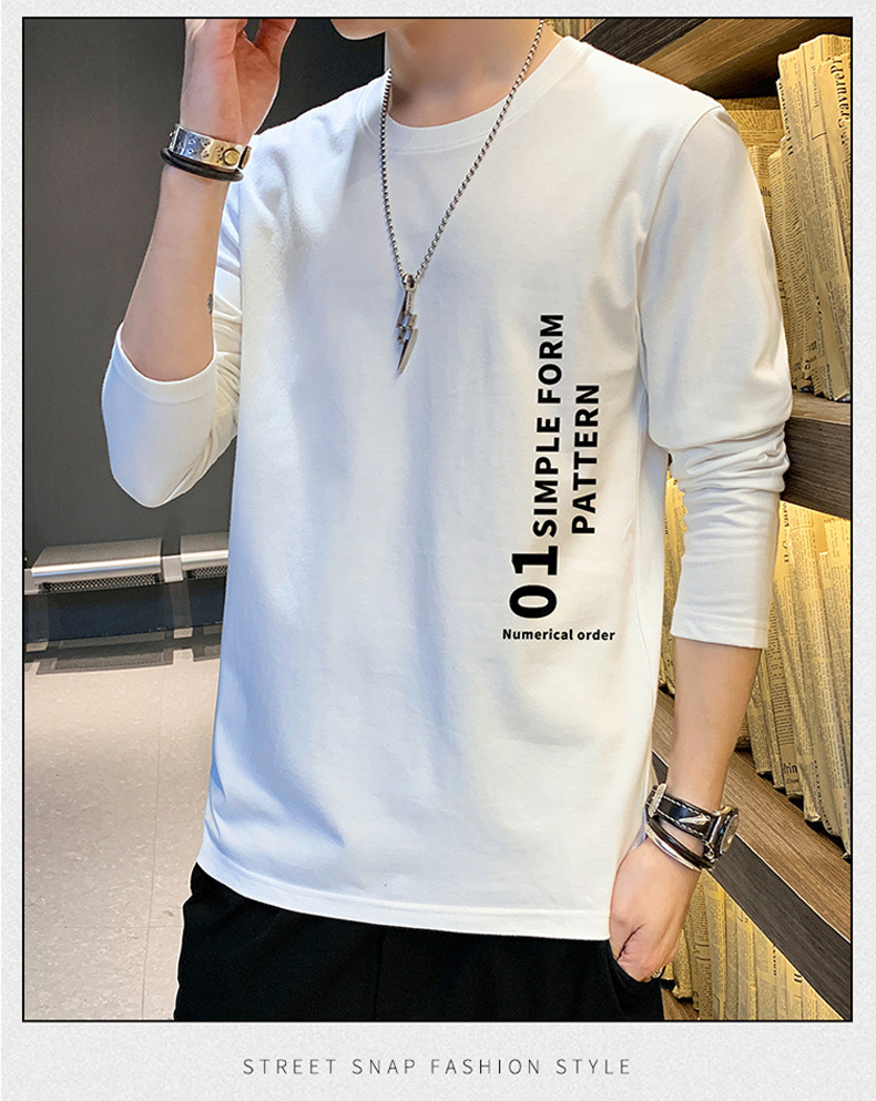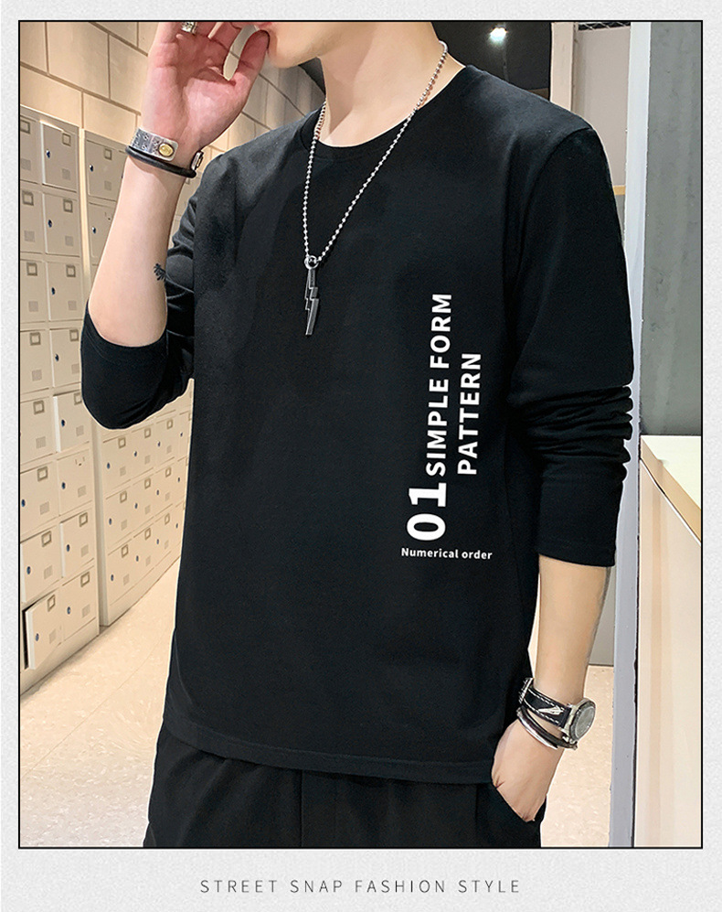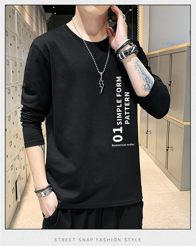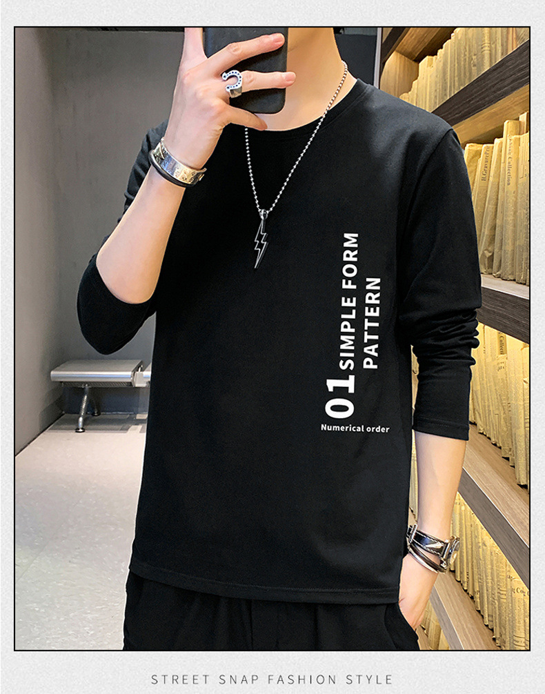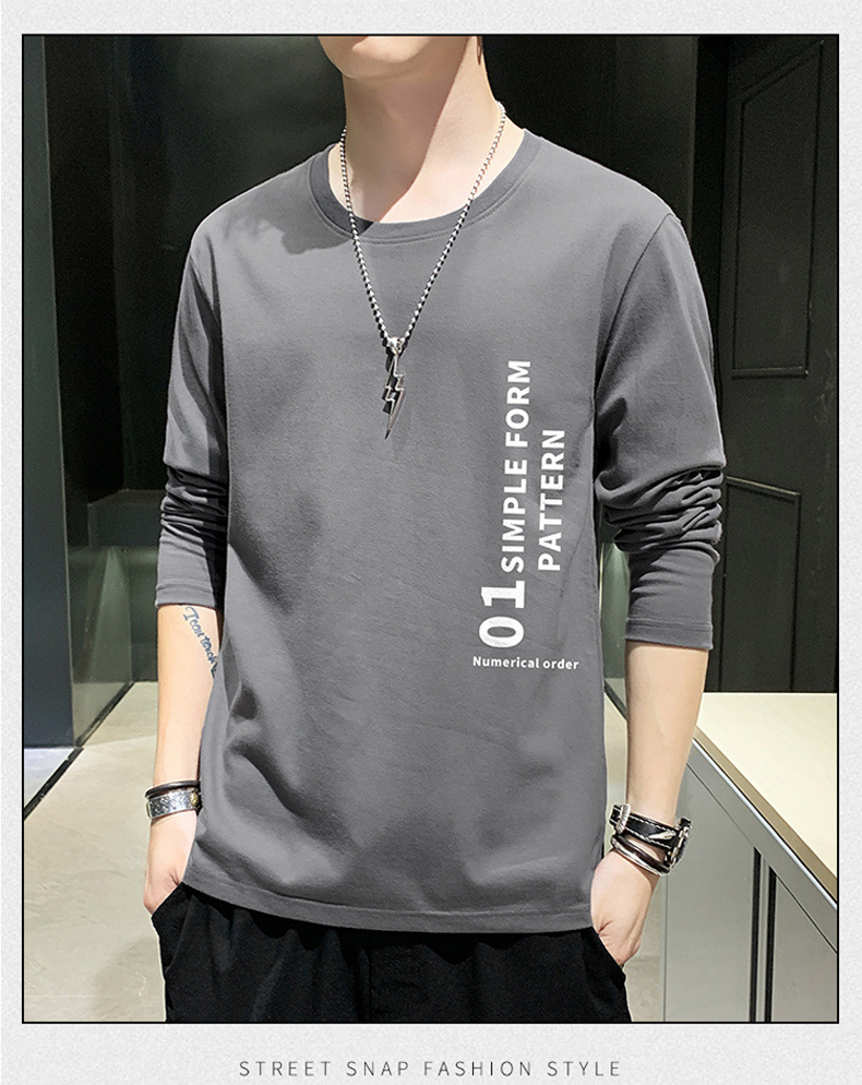 春秋季长袖T恤男士纯棉韩版圆领休闲打底衫上衣男装青年卫衣潮牌