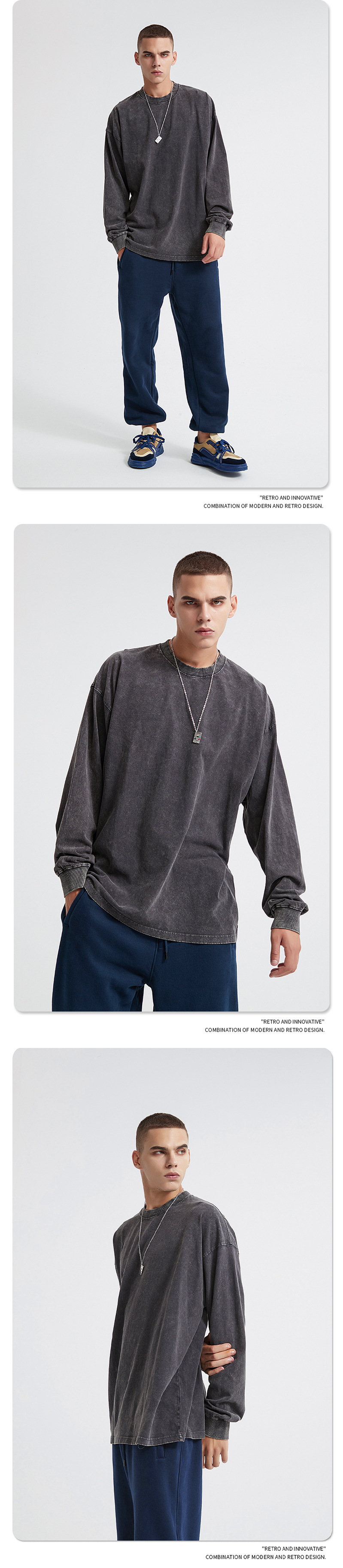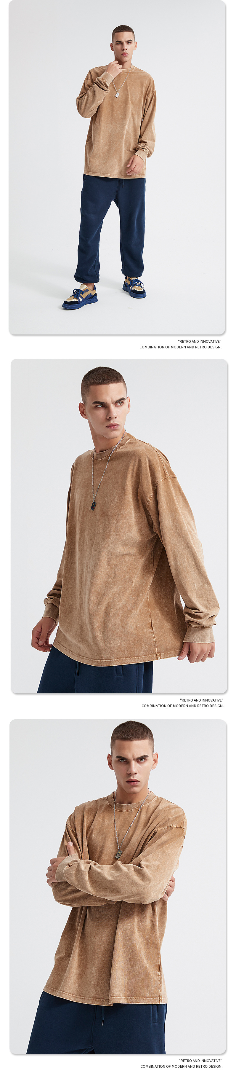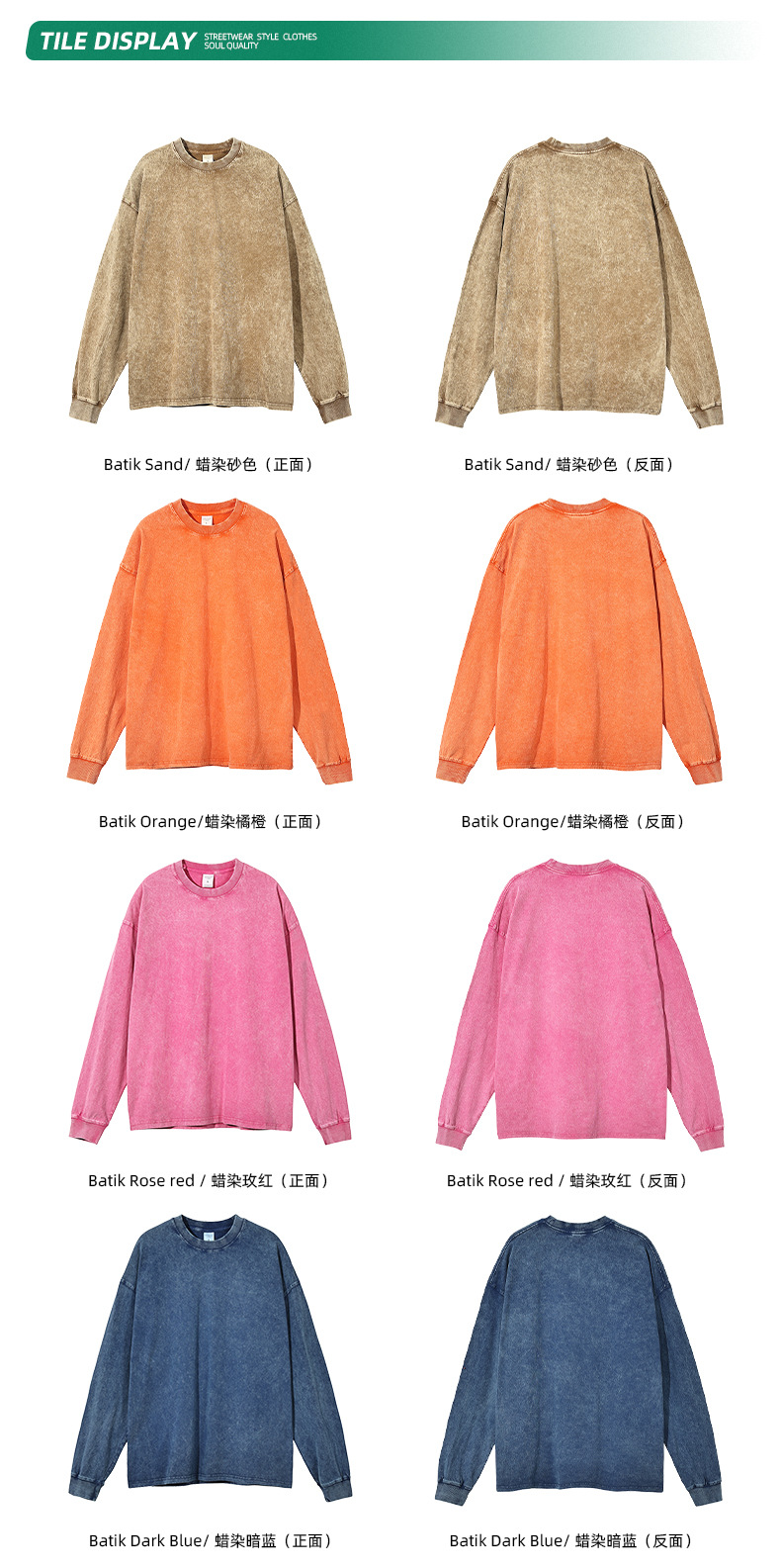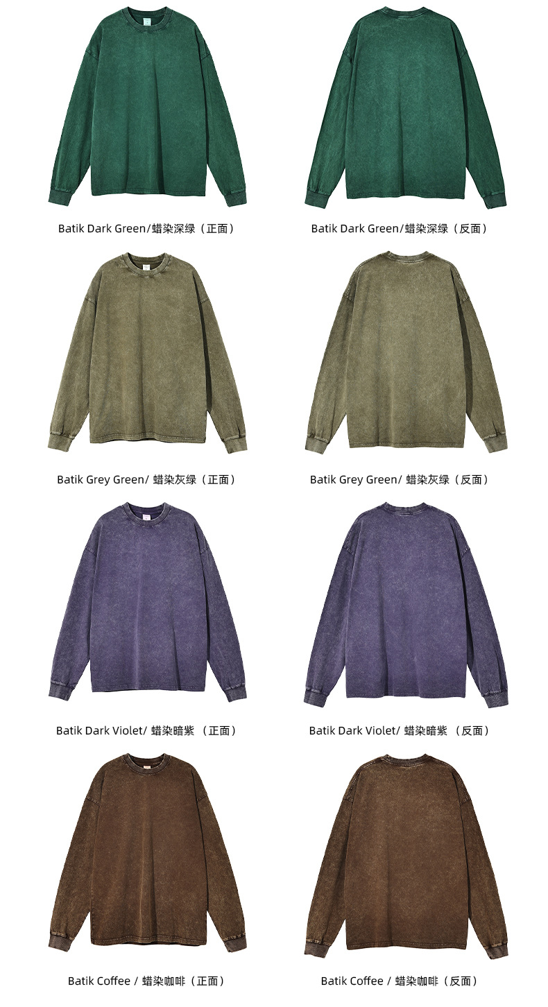 ARTIE男装丨潮牌新款蜡染250G长袖t恤 10色秋冬纯色水洗做旧男T恤