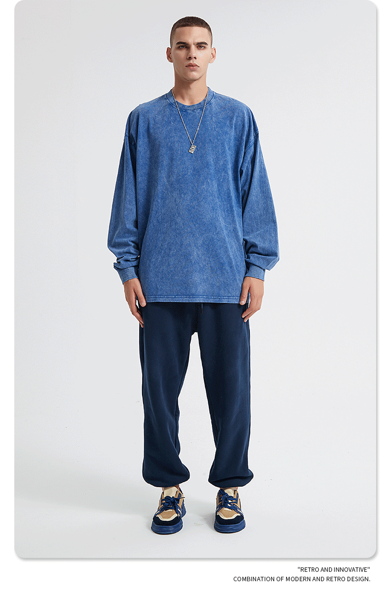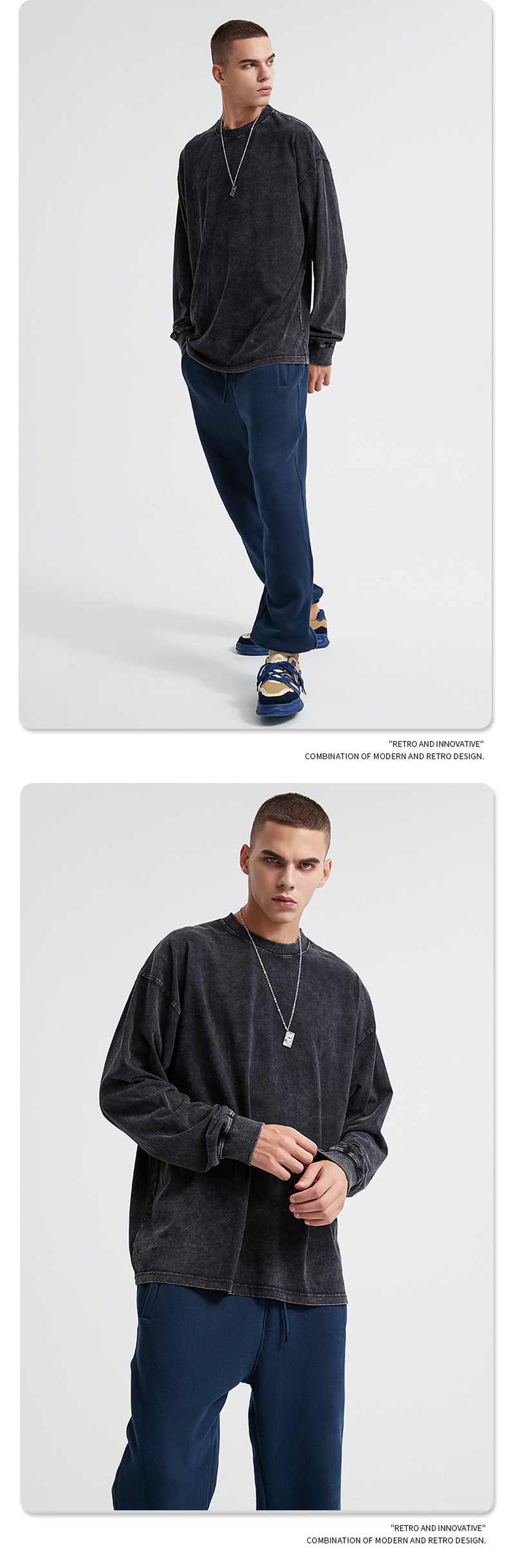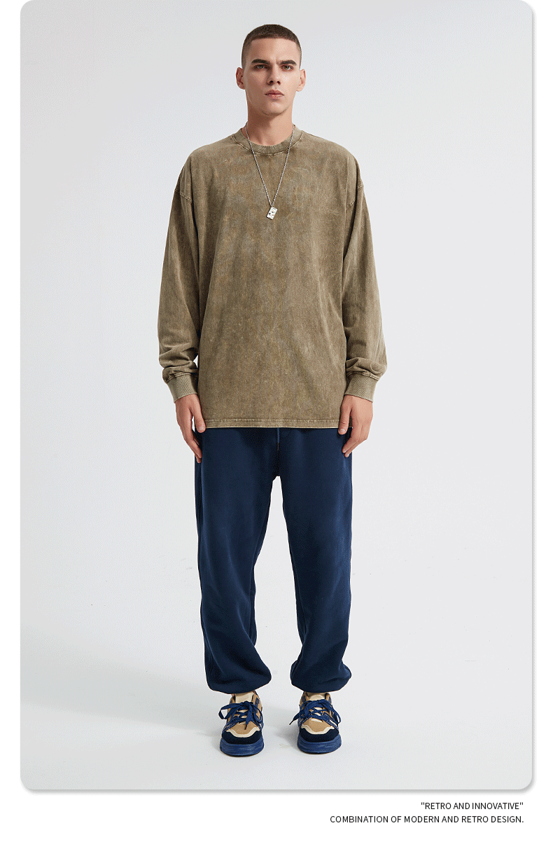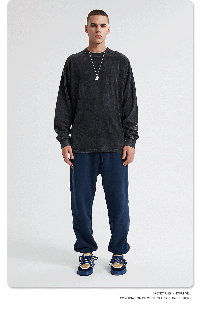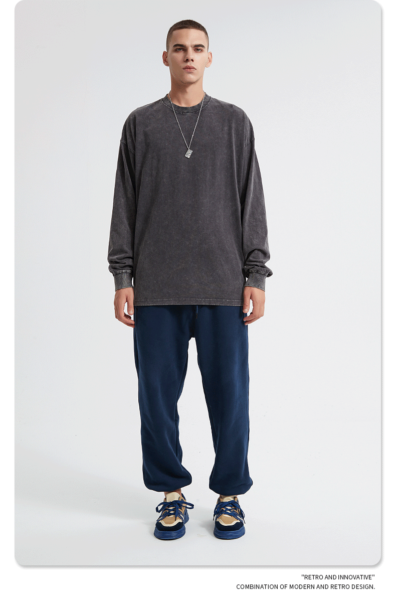 ARTIE男装丨潮牌新款蜡染250G长袖t恤 10色秋冬纯色水洗做旧男T恤