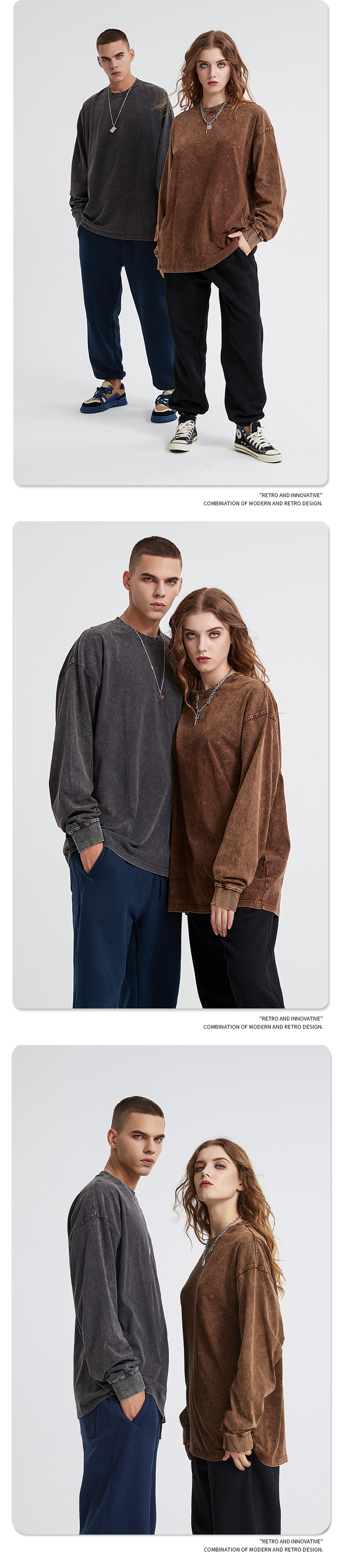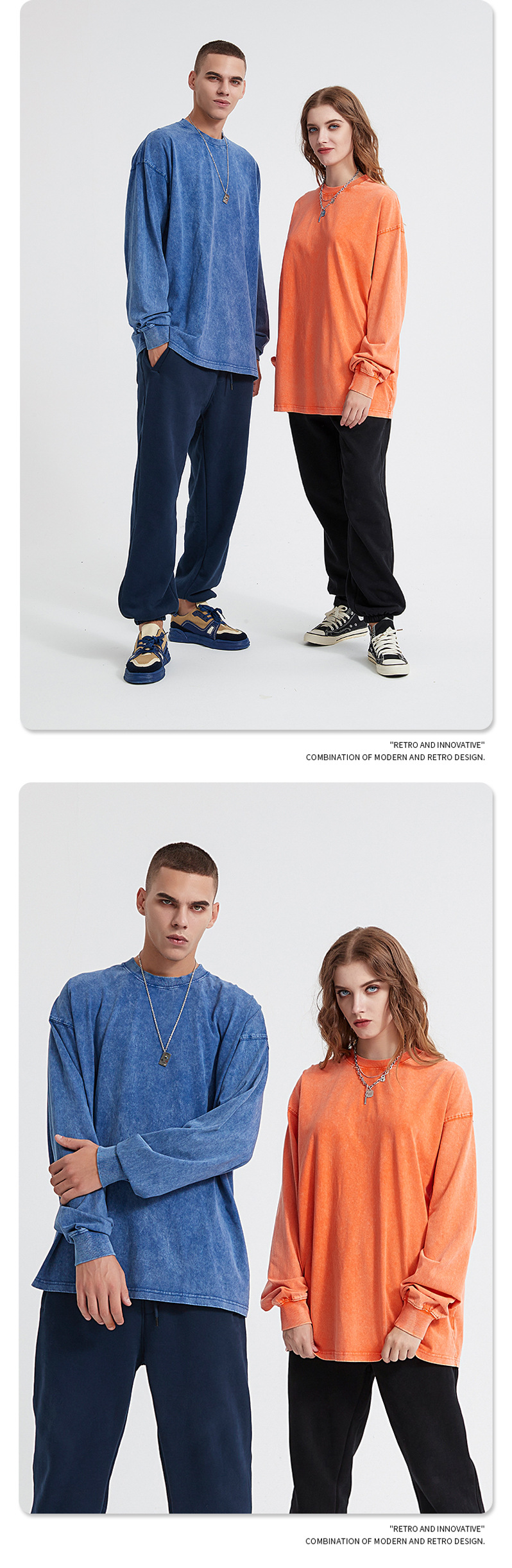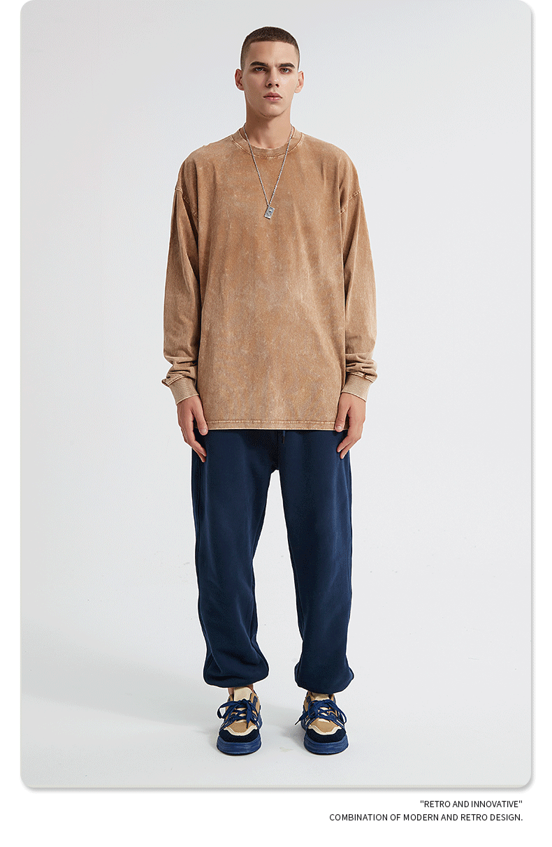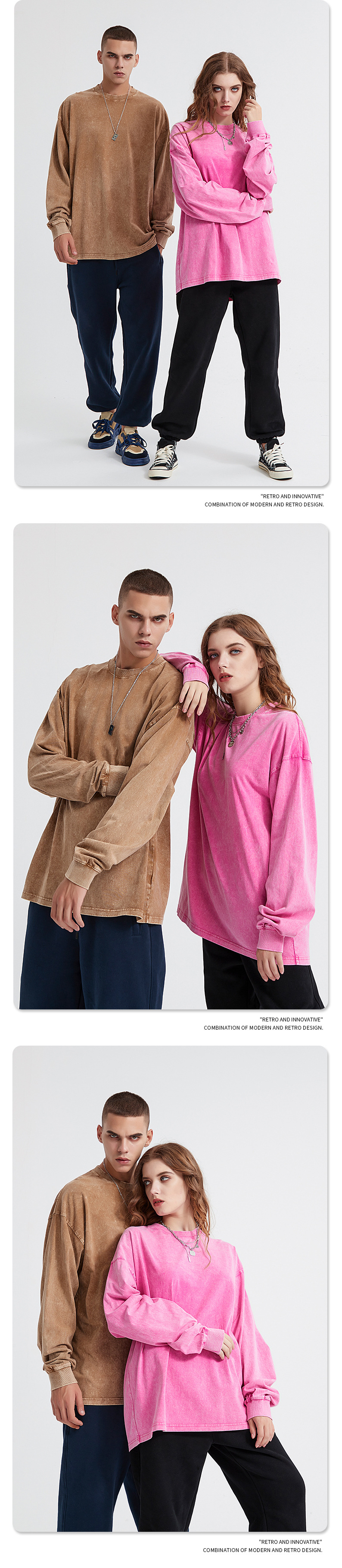 ARTIE男装丨潮牌新款蜡染250G长袖t恤 10色秋冬纯色水洗做旧男T恤