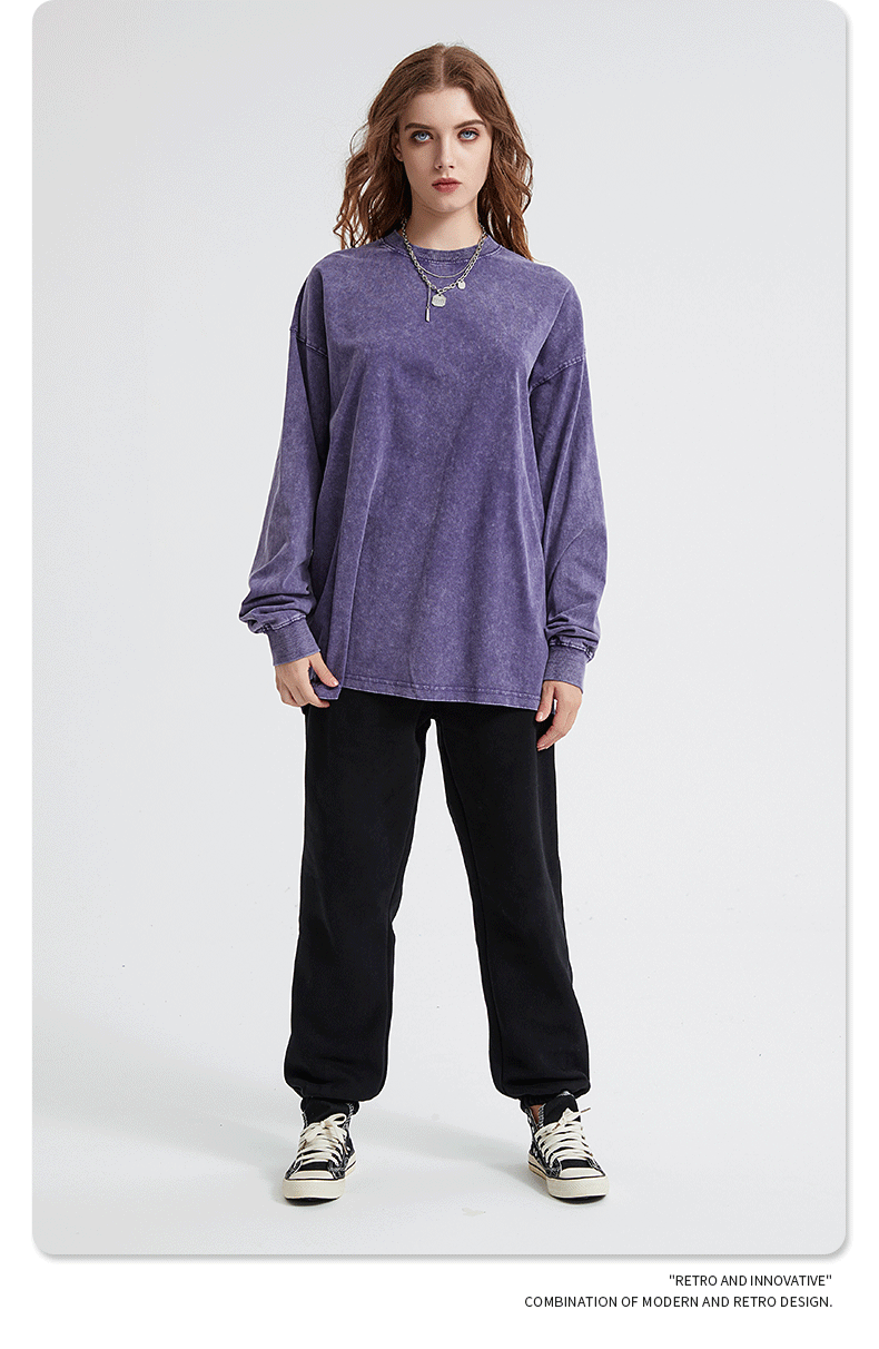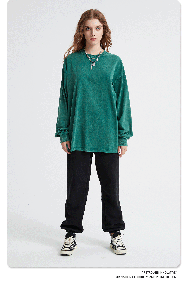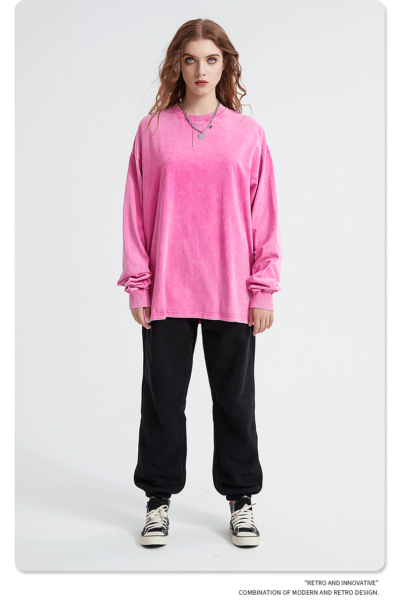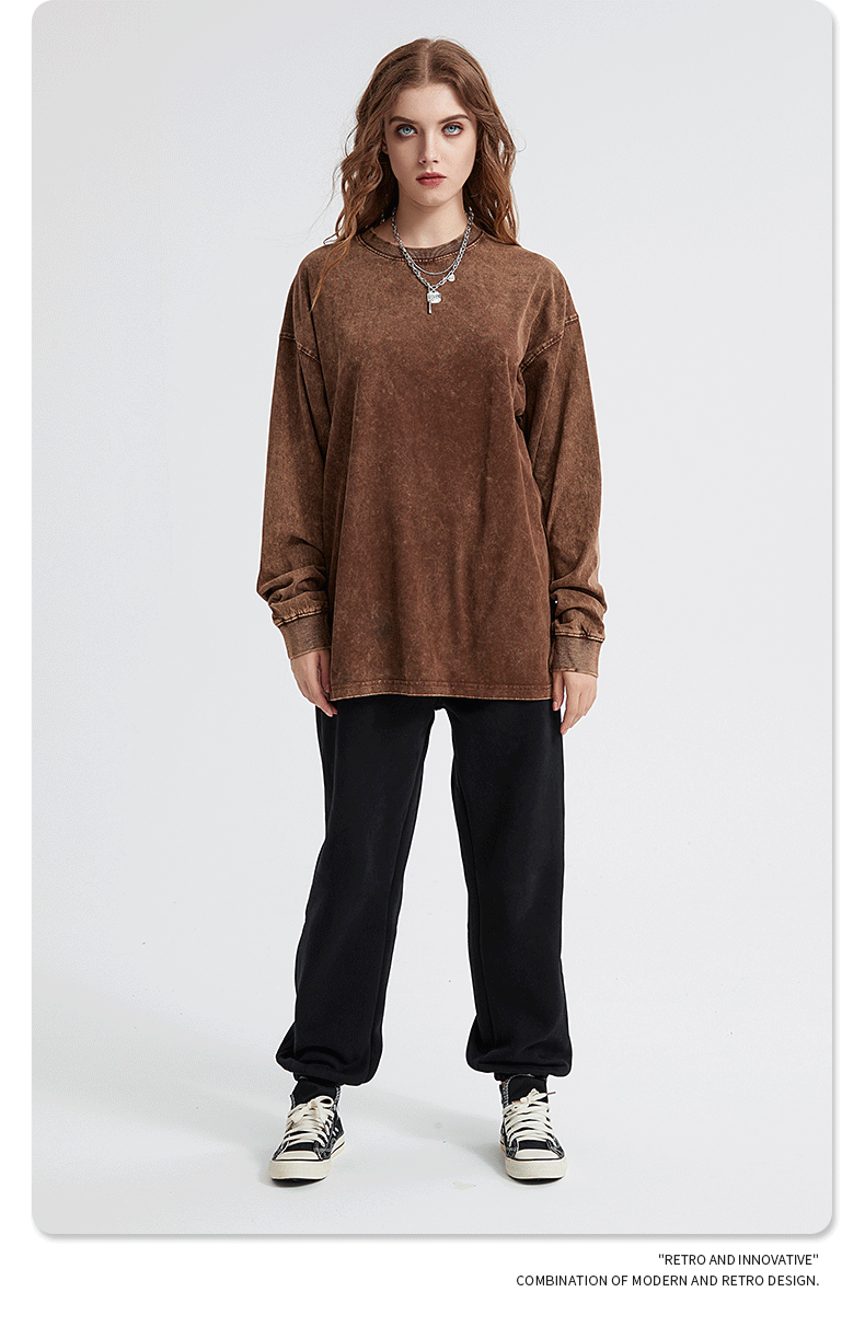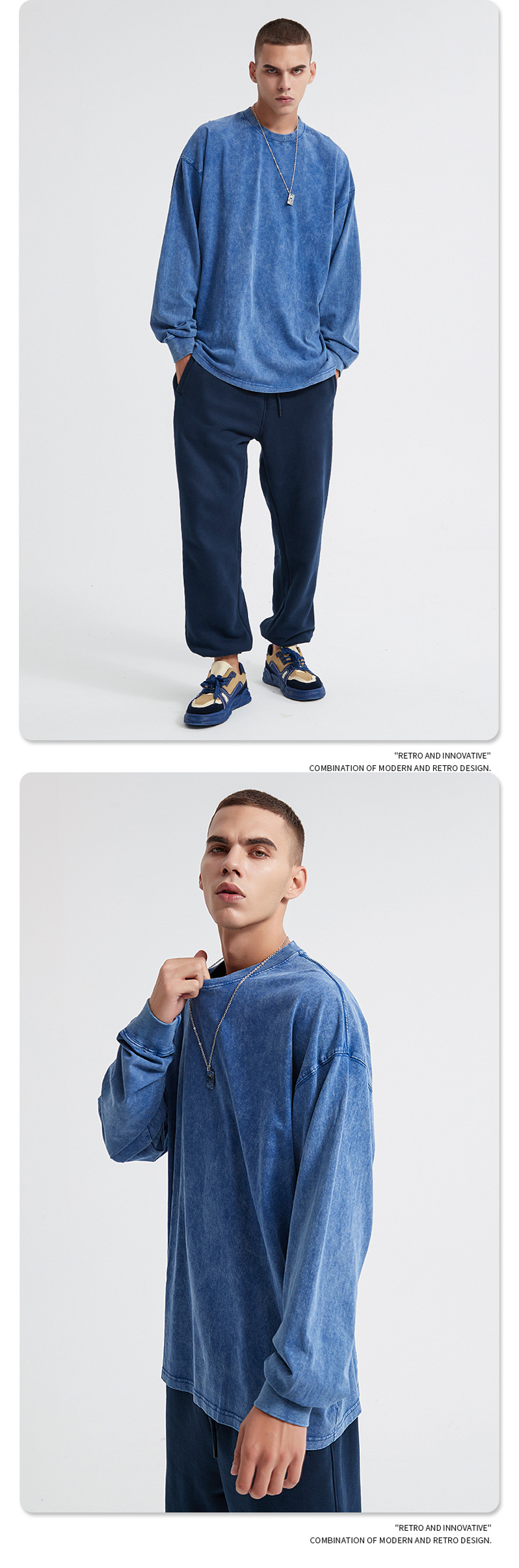 ARTIE男装丨潮牌新款蜡染250G长袖t恤 10色秋冬纯色水洗做旧男T恤