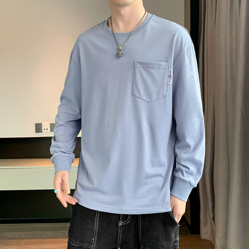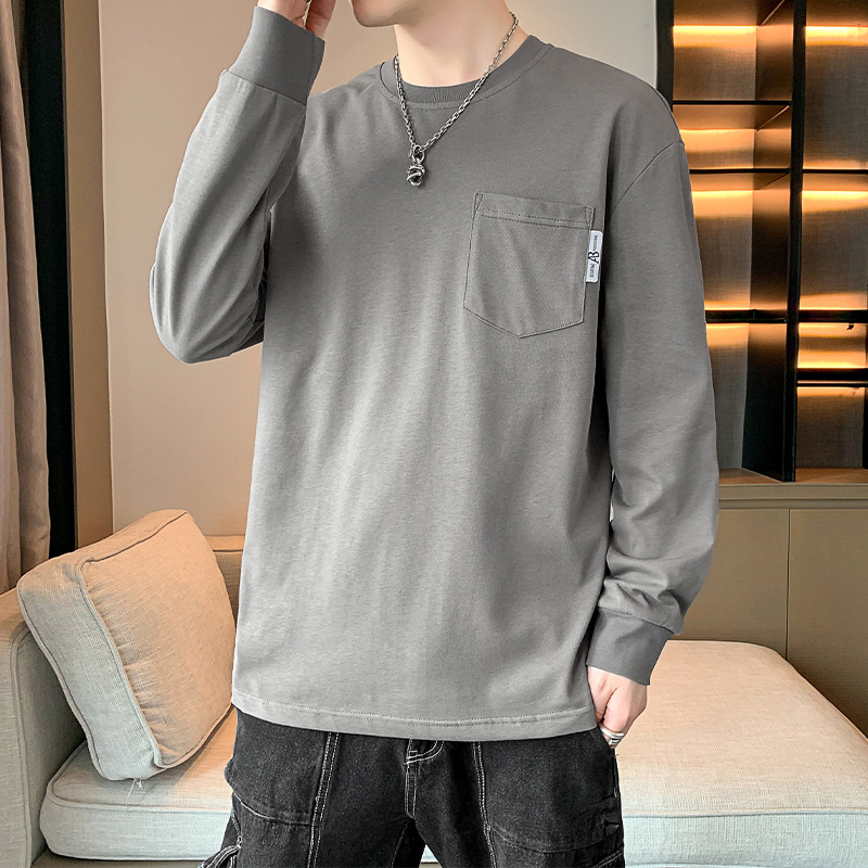 2023春秋新款男士长袖t恤韩版时尚潮流纯棉卫衣休闲上衣打底衫男