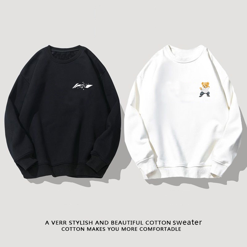 男士秋冬新款圆领棉卫衣潮牌重磅运动长袖宽松纯色打底衫一件代发