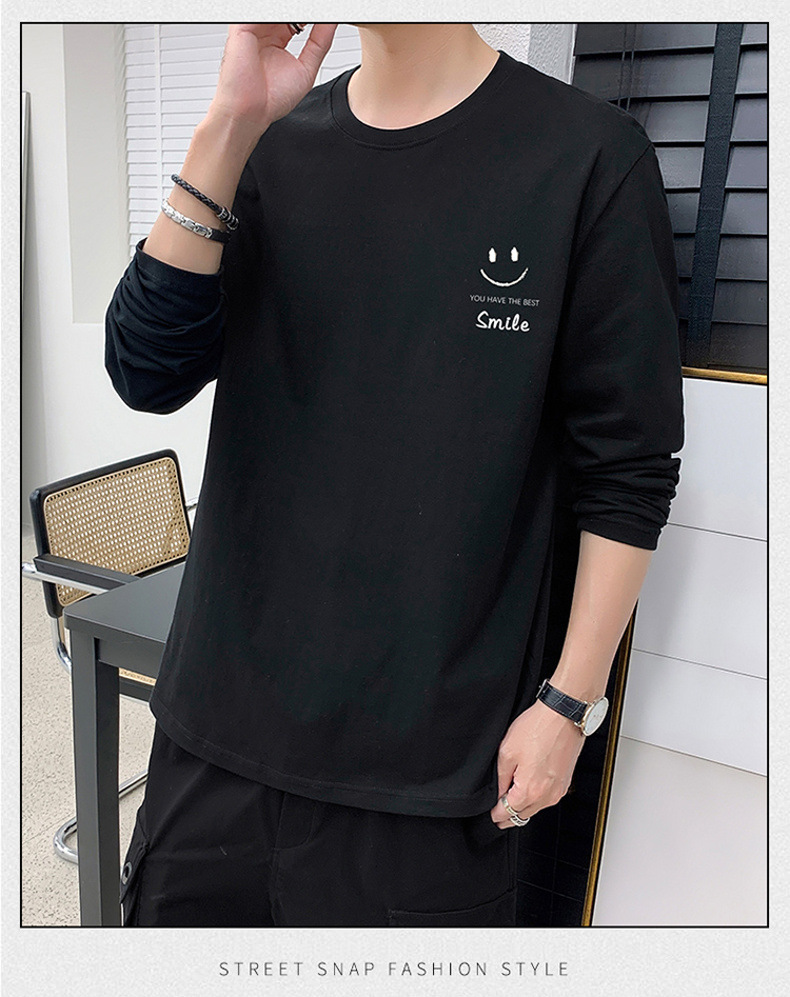 秋季新款长袖T恤男士纯棉韩版圆领休闲打底衫上衣男装青年卫衣潮