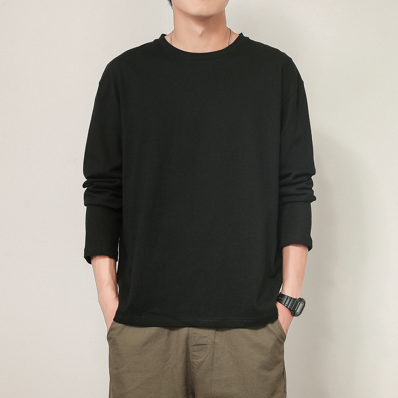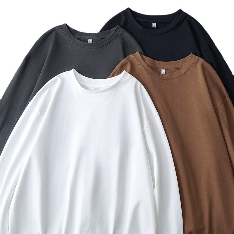 长袖t恤男2023春季新款纯色打底衫棉质多色男士圆领宽松大码体恤