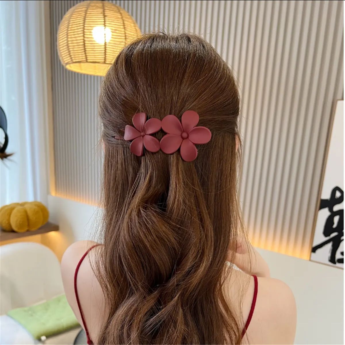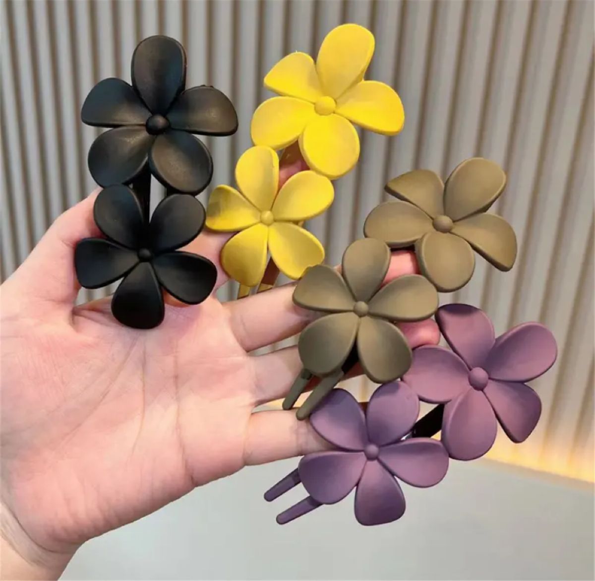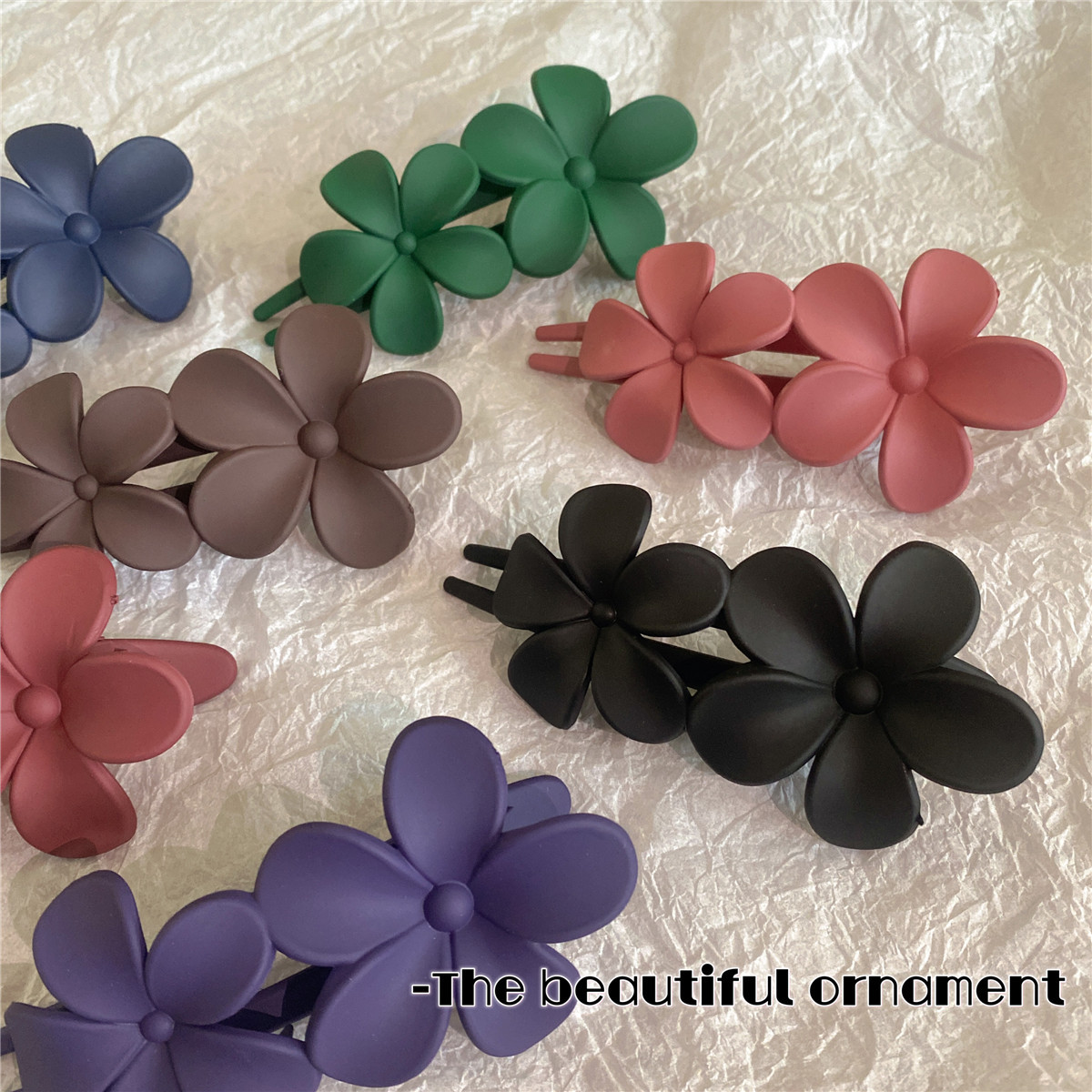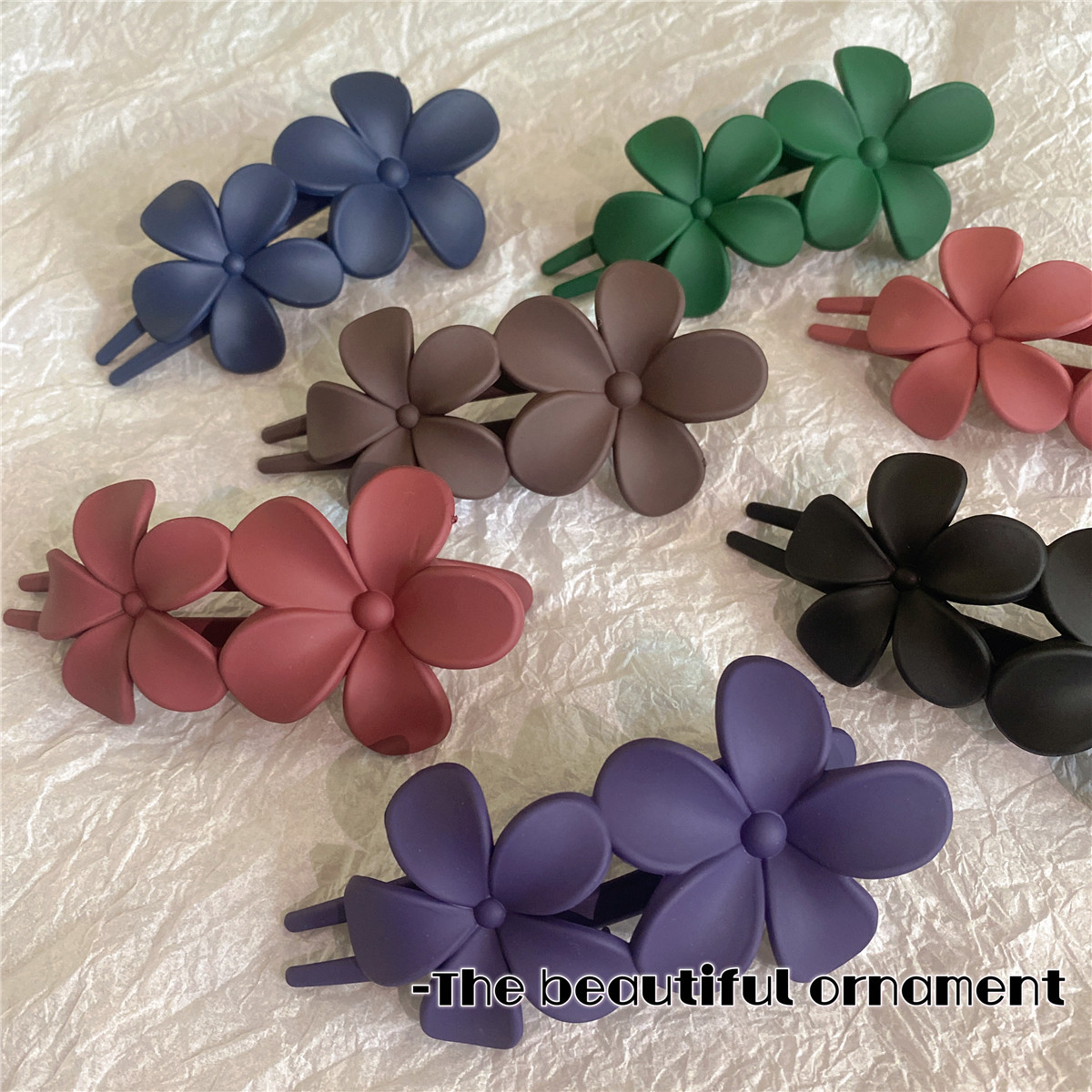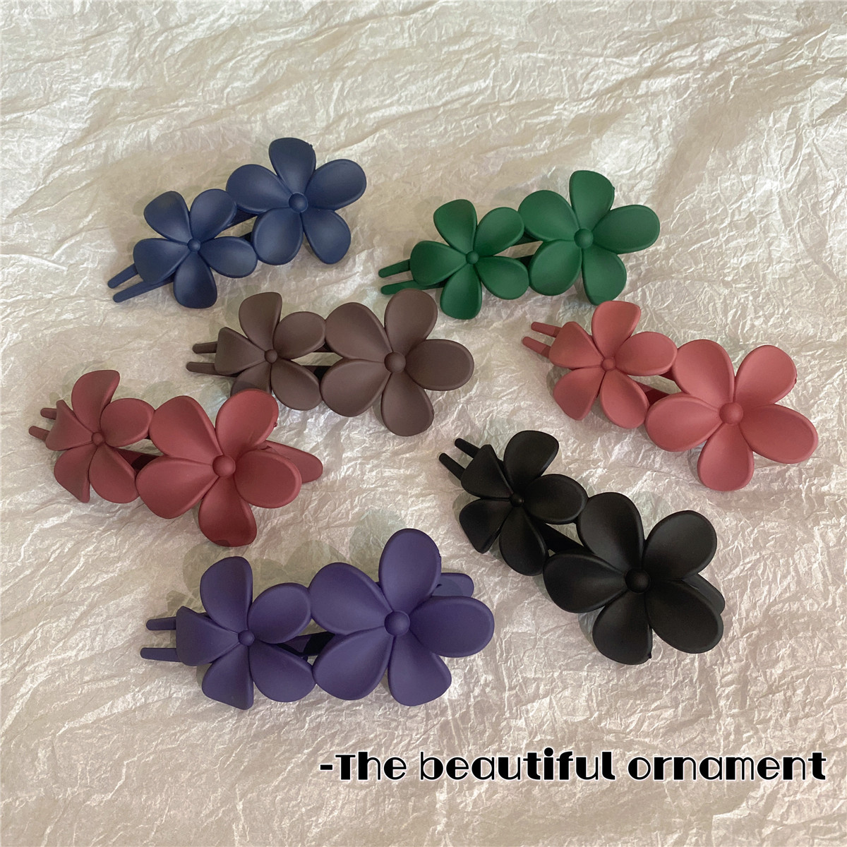 2023年夏季新款磨砂双花树脂发夹五瓣花鸭嘴夹少女后脑勺马尾发饰