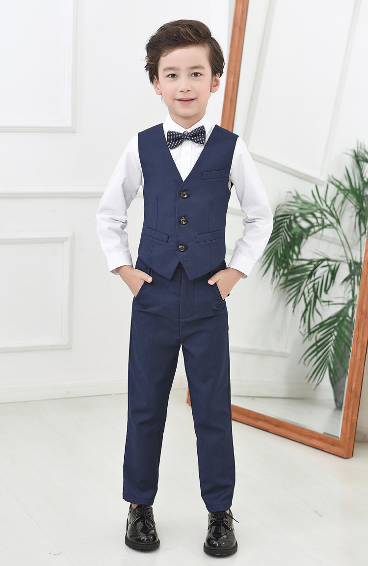 儿童礼服男童黑色西装马甲男套装花童小学生钢琴演出服大童表演服