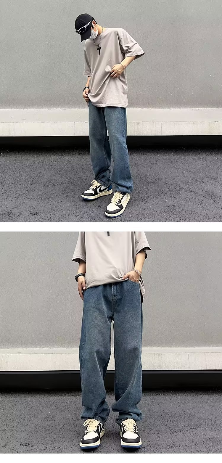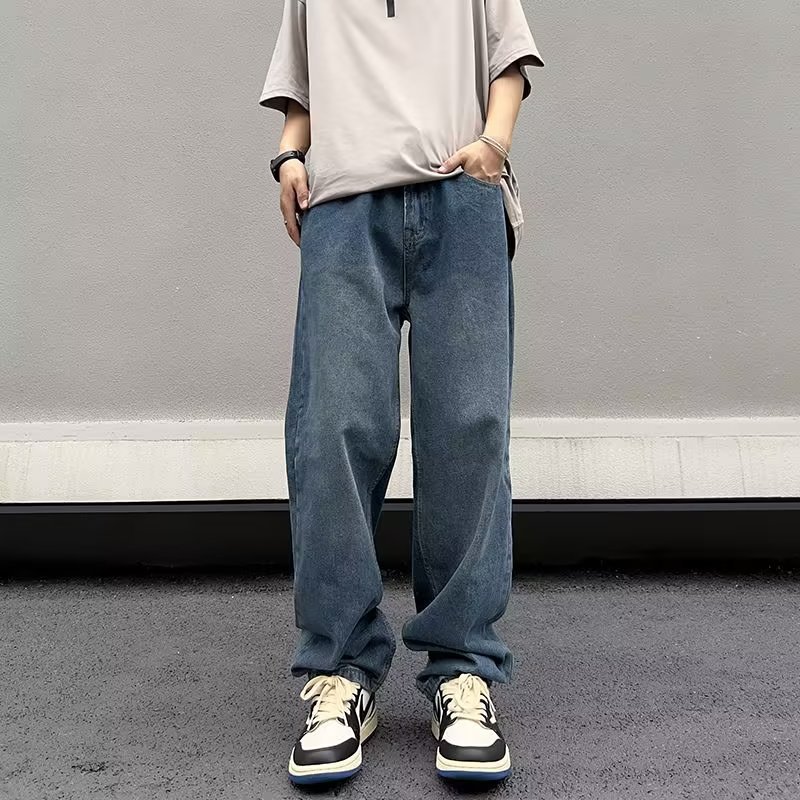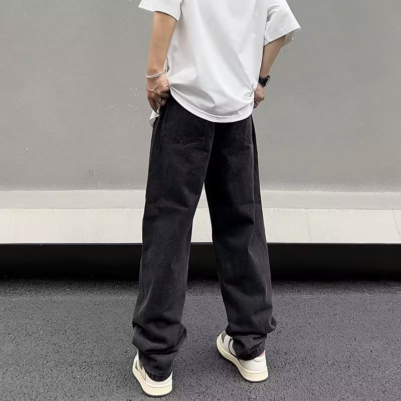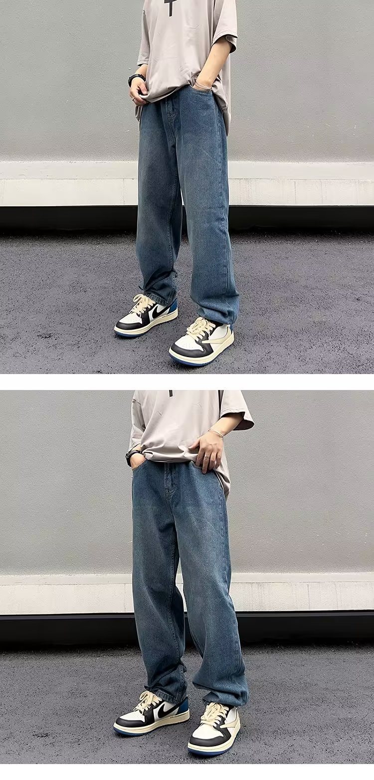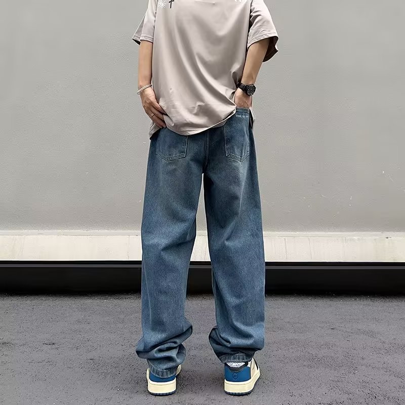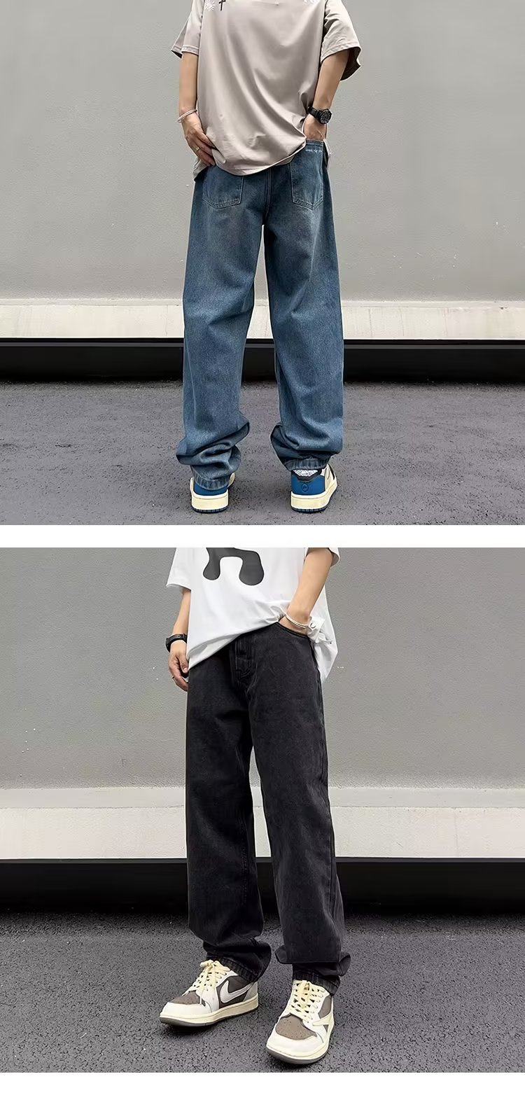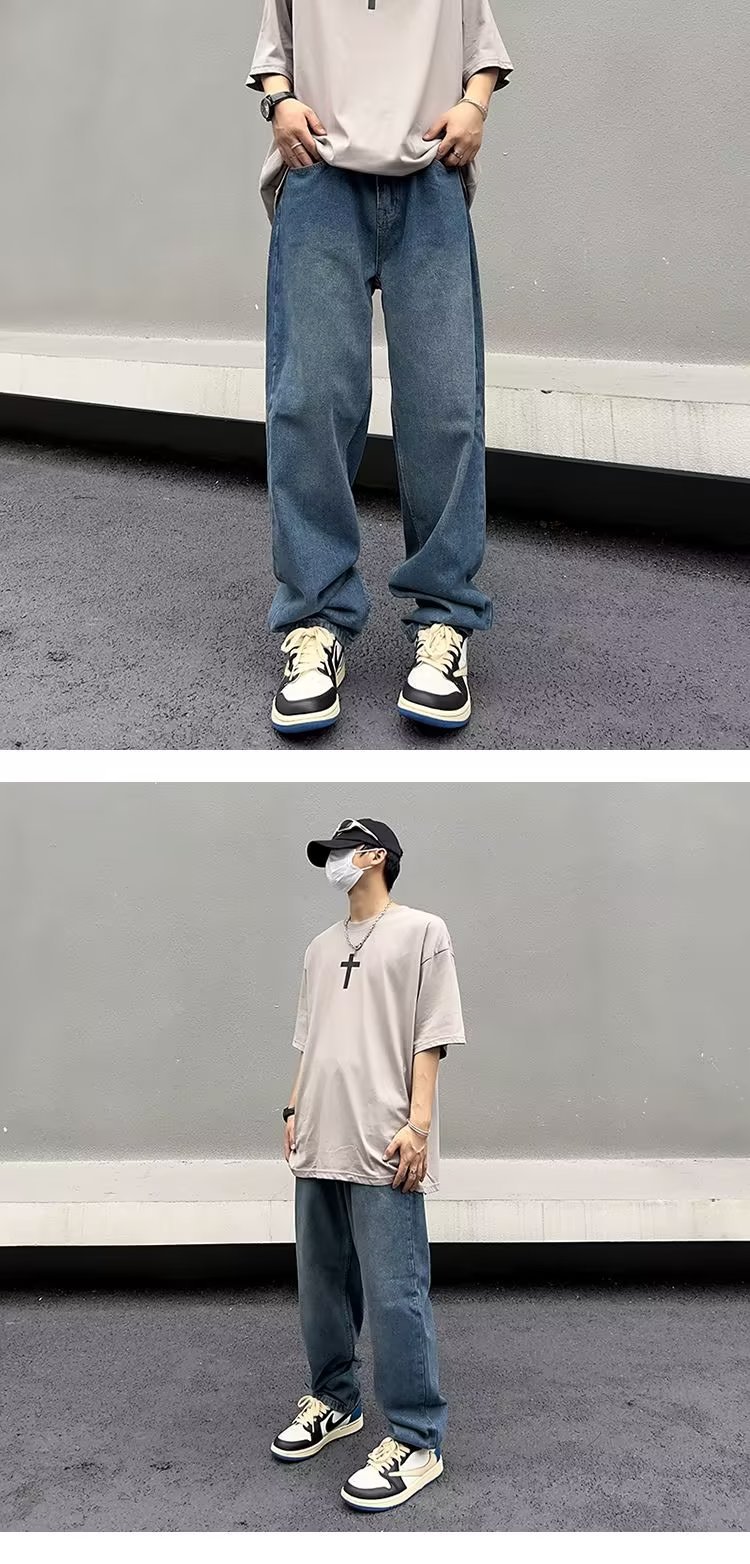 美式高街vibe复古做旧水洗宽松直筒阔腿潮牌长裤子男生牛仔裤男款