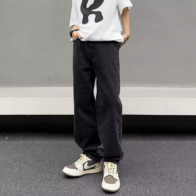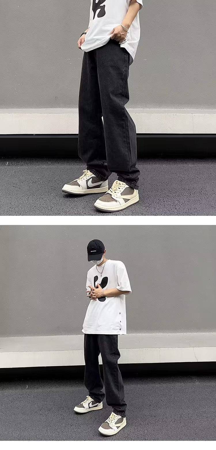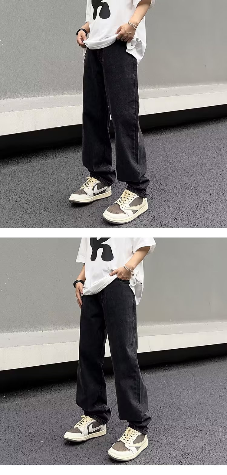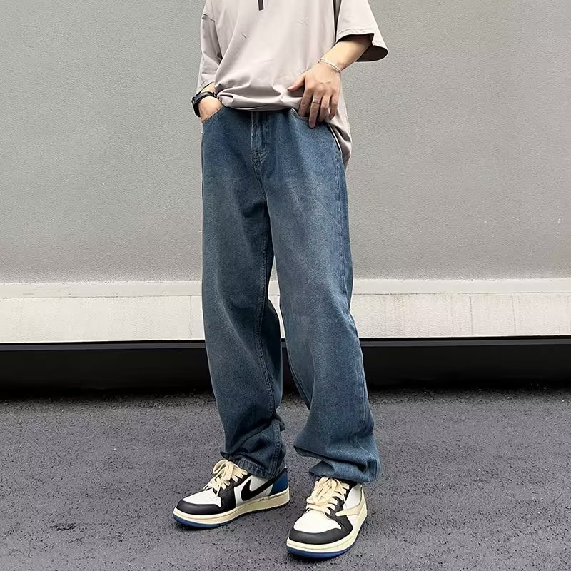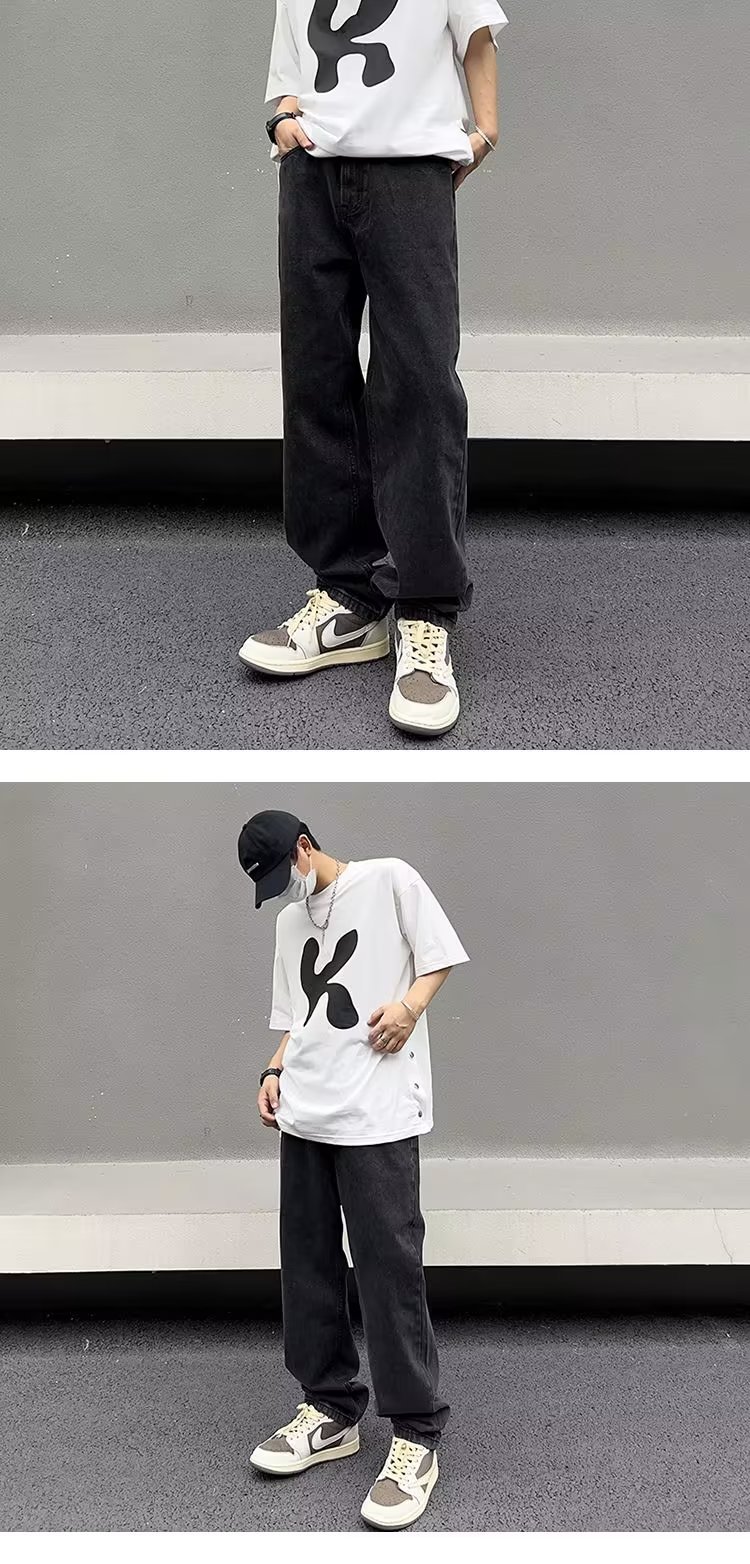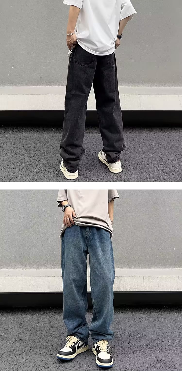 美式高街vibe复古做旧水洗宽松直筒阔腿潮牌长裤子男生牛仔裤男款