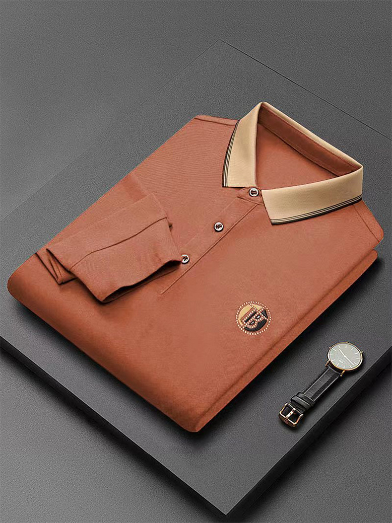 春秋季新款男士长袖POLO衫休闲宽松翻领刺绣t恤商务透气上衣男装