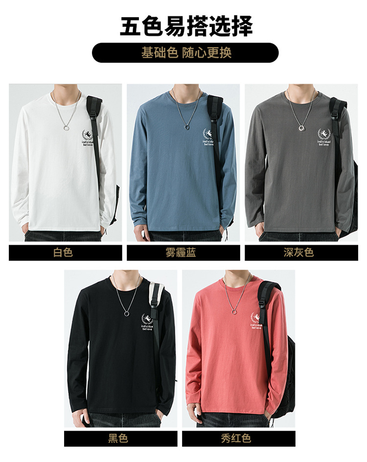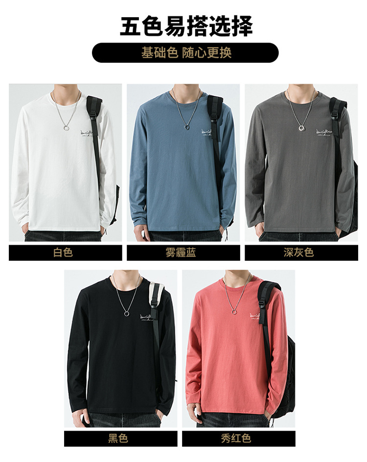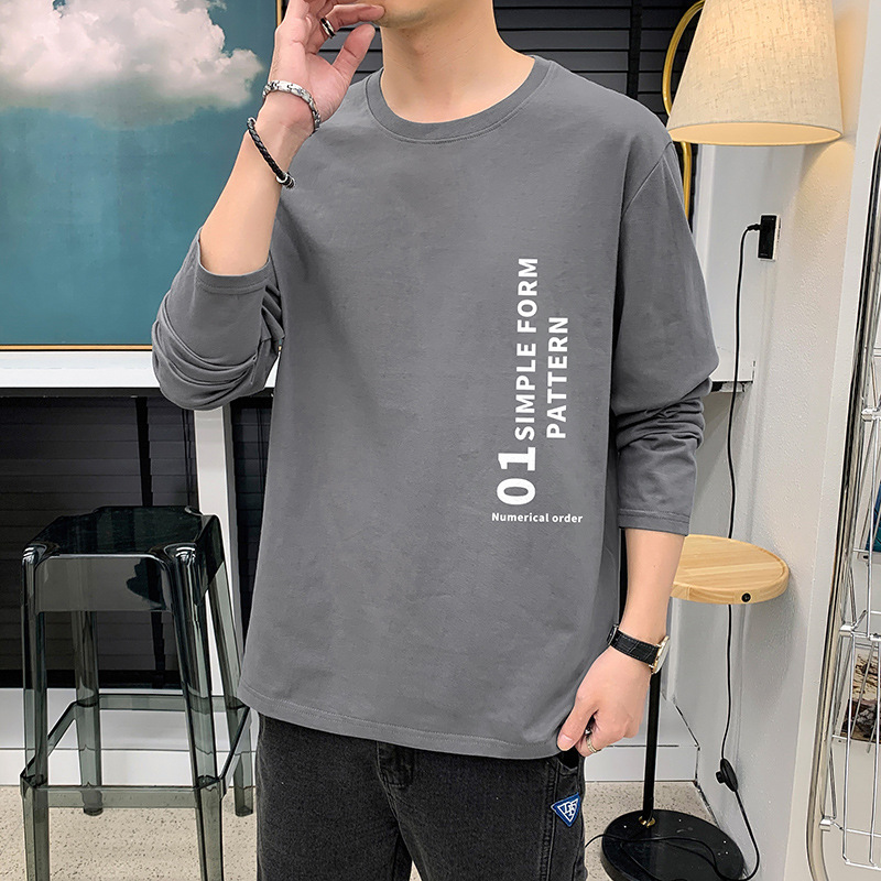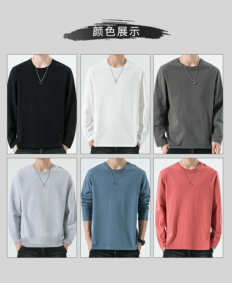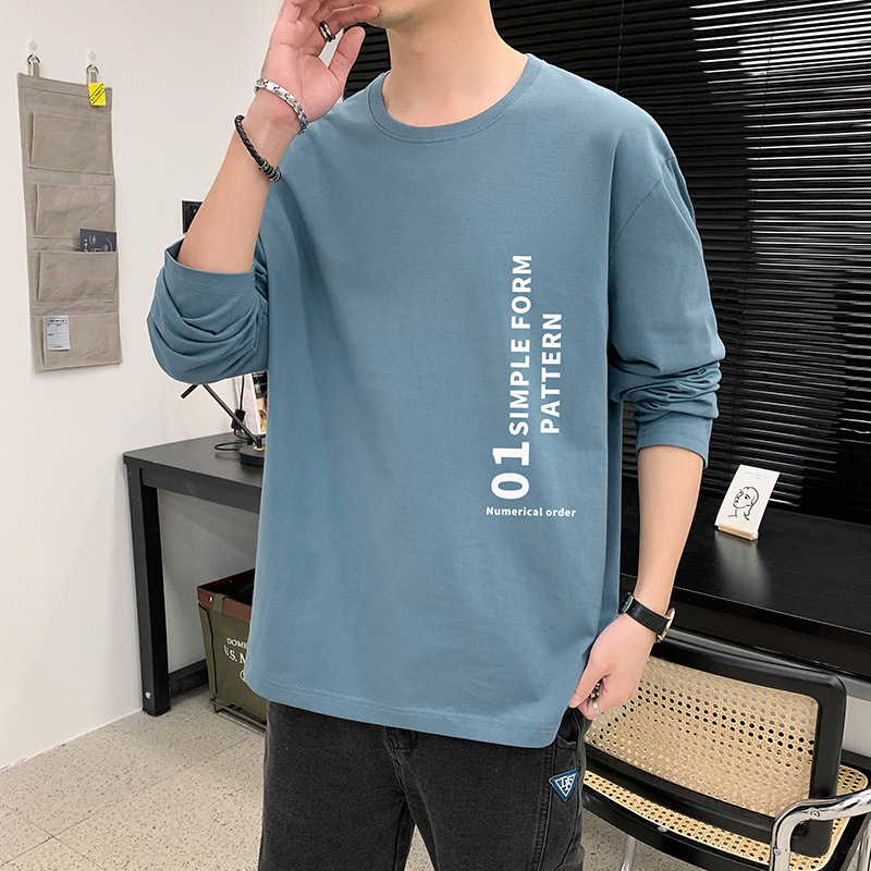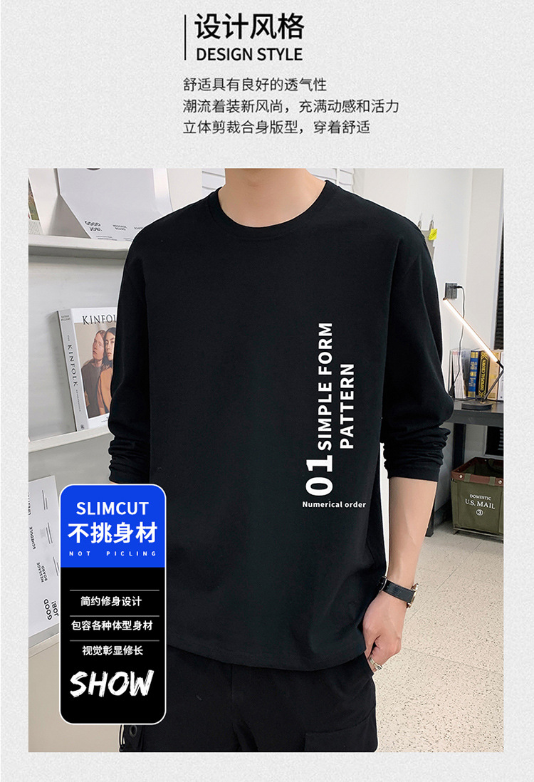 秋季新款长袖T恤男运动休闲长T青年时尚宽松圆领卫衣纯棉上衣大码