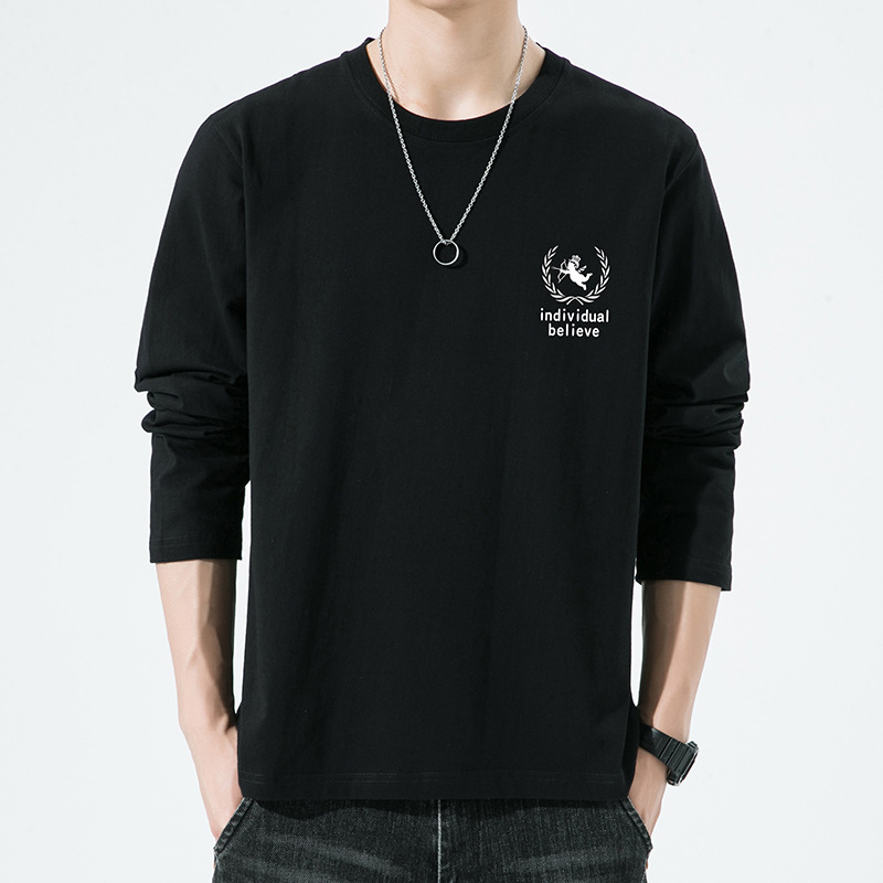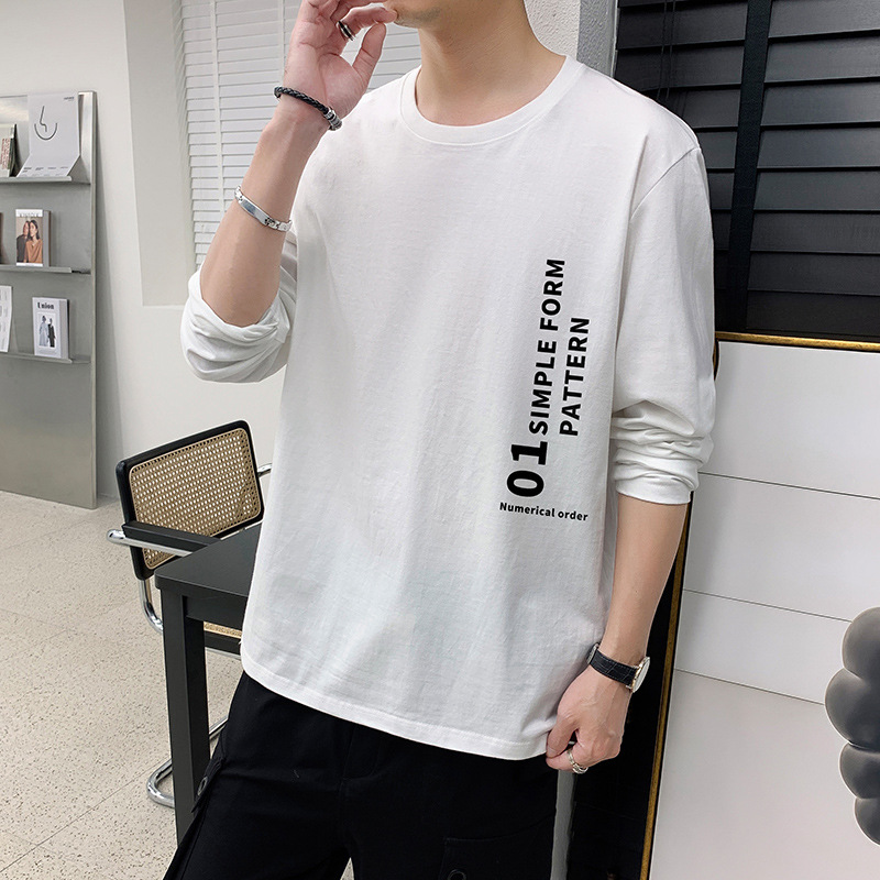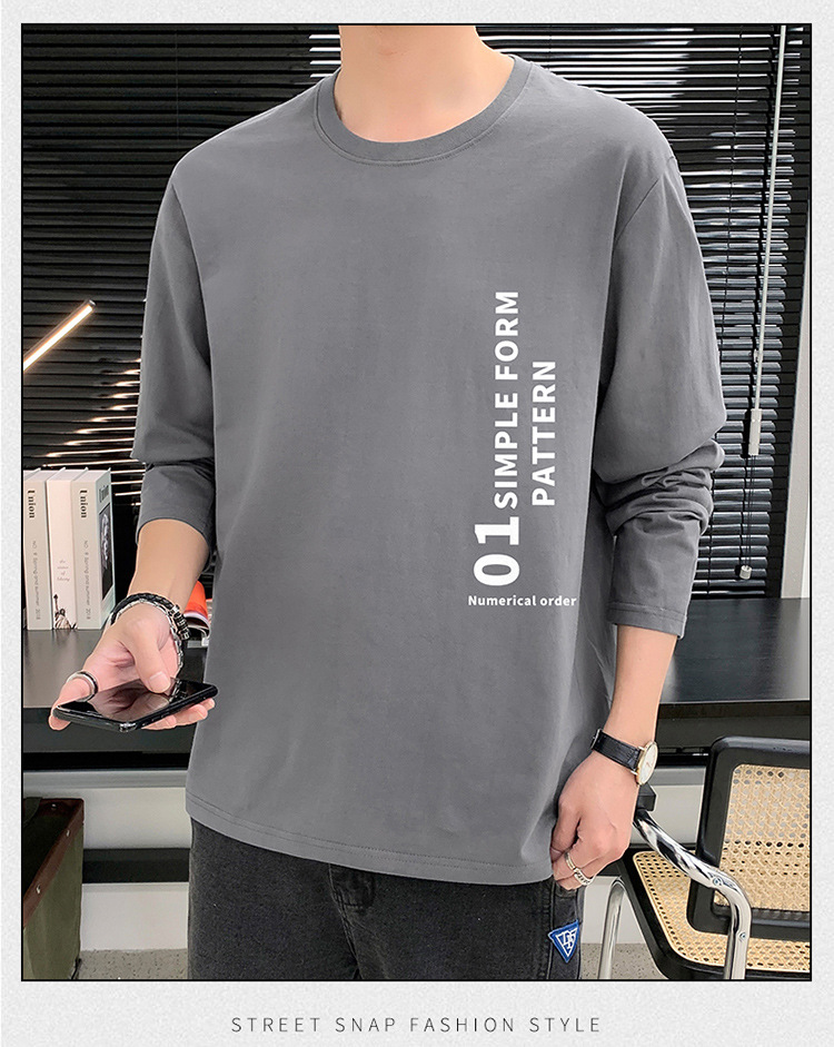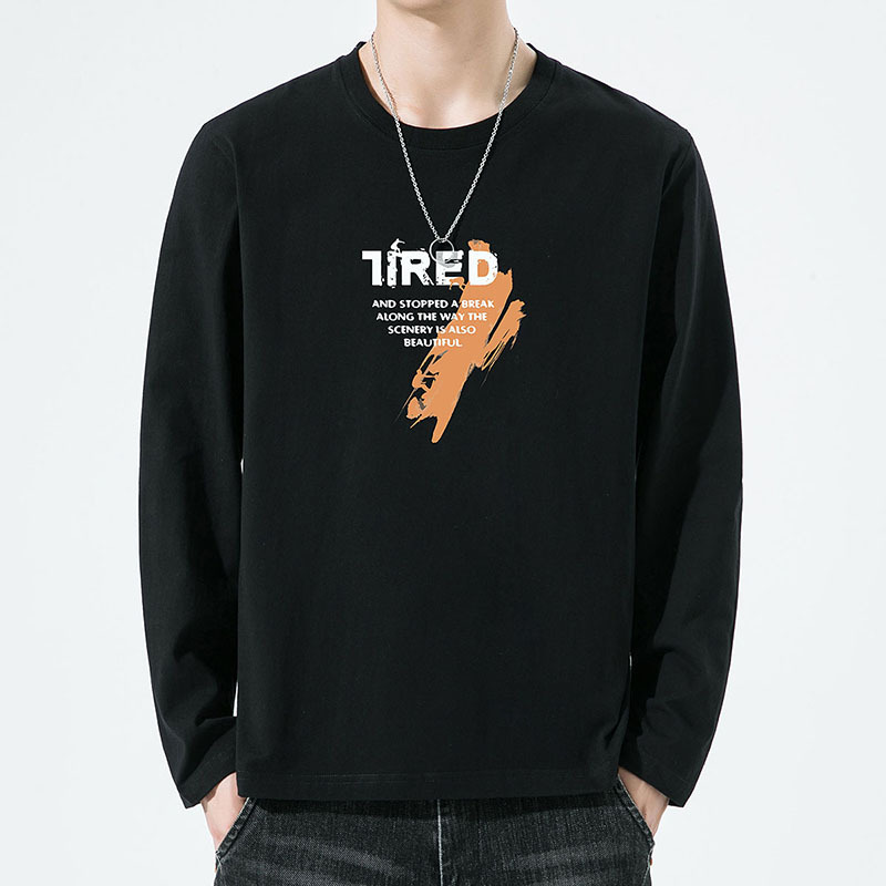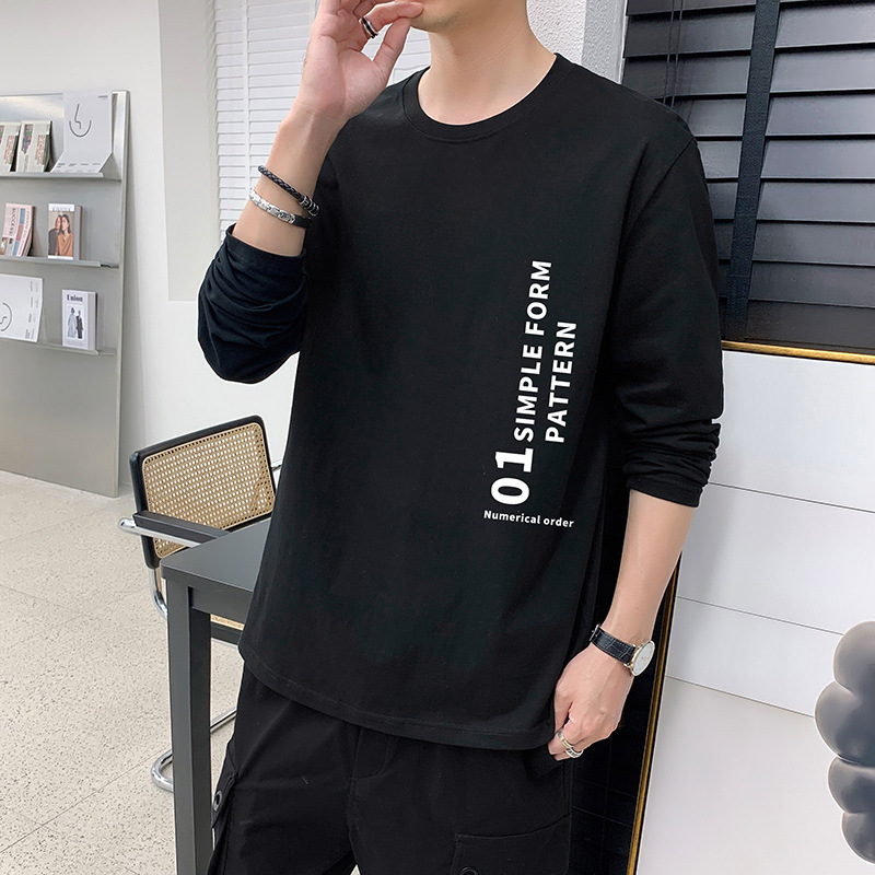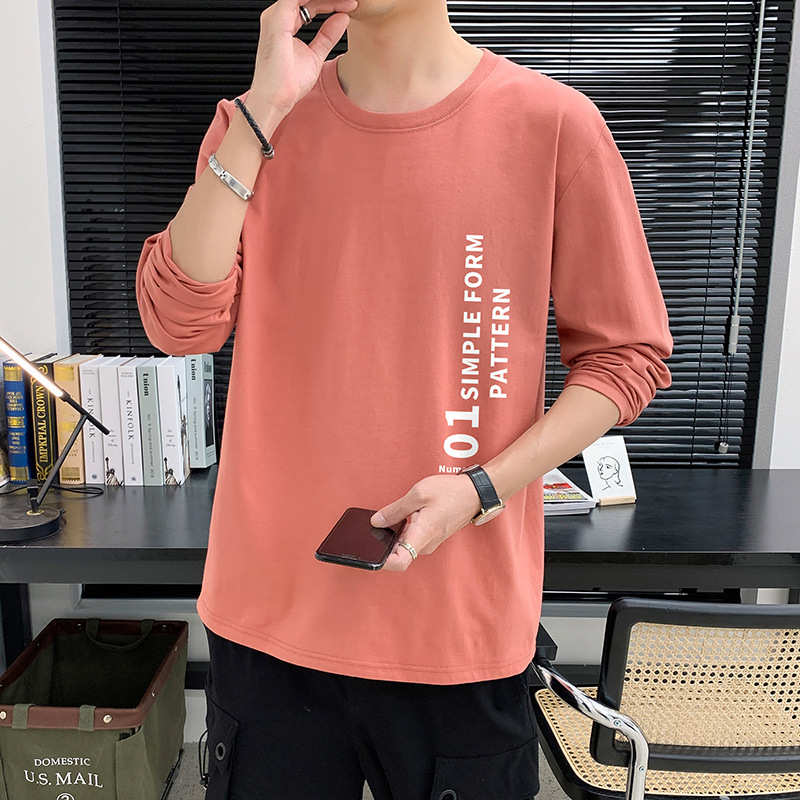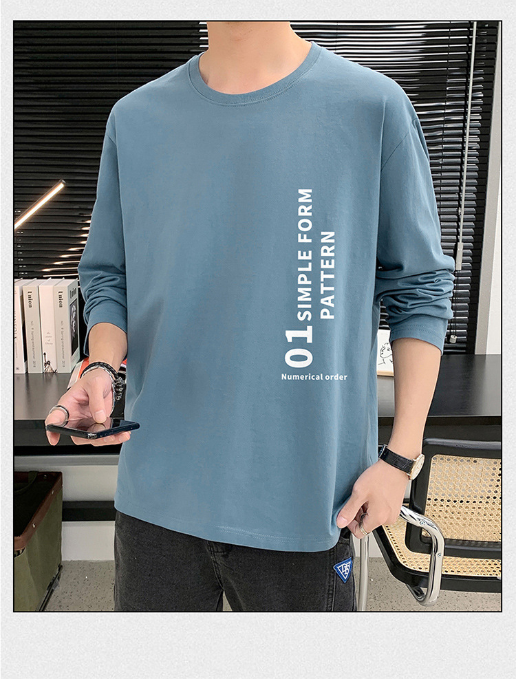 秋季新款长袖T恤男运动休闲长T青年时尚宽松圆领卫衣纯棉上衣大码