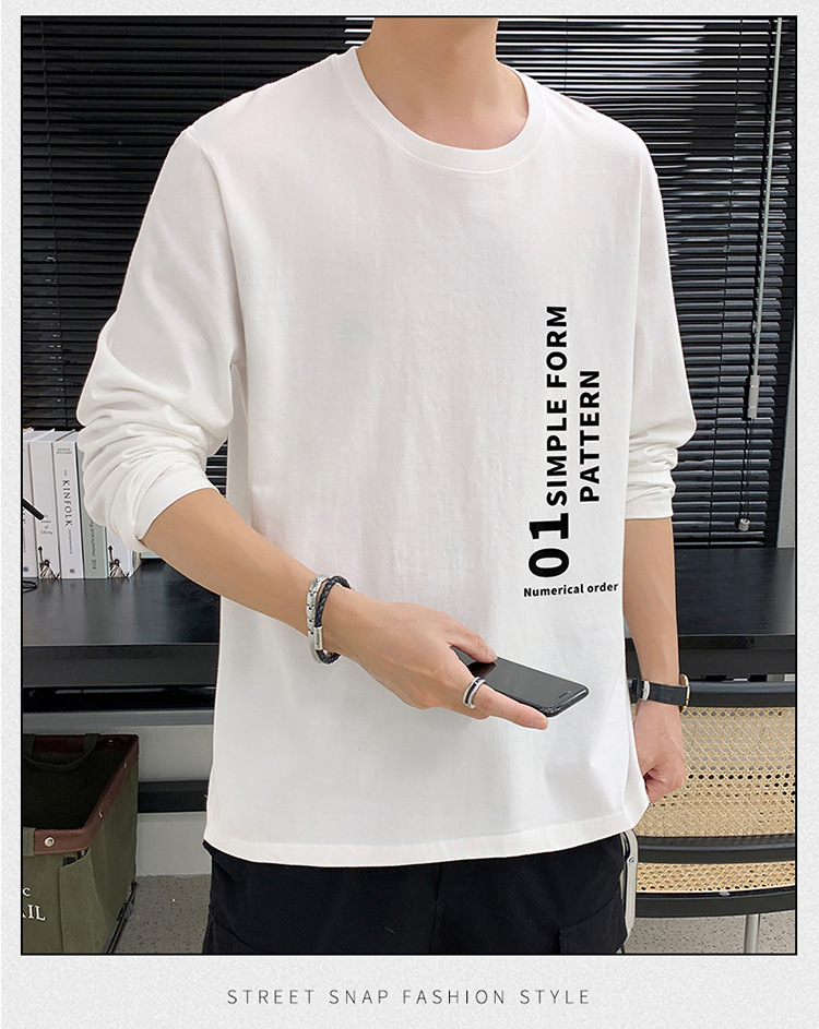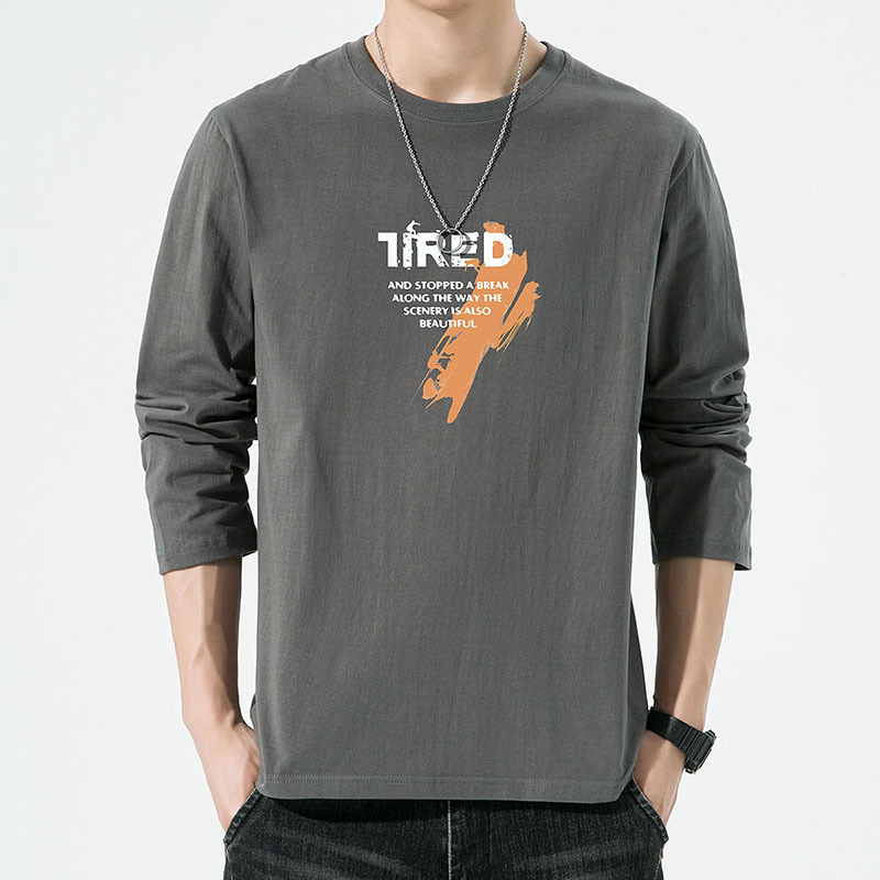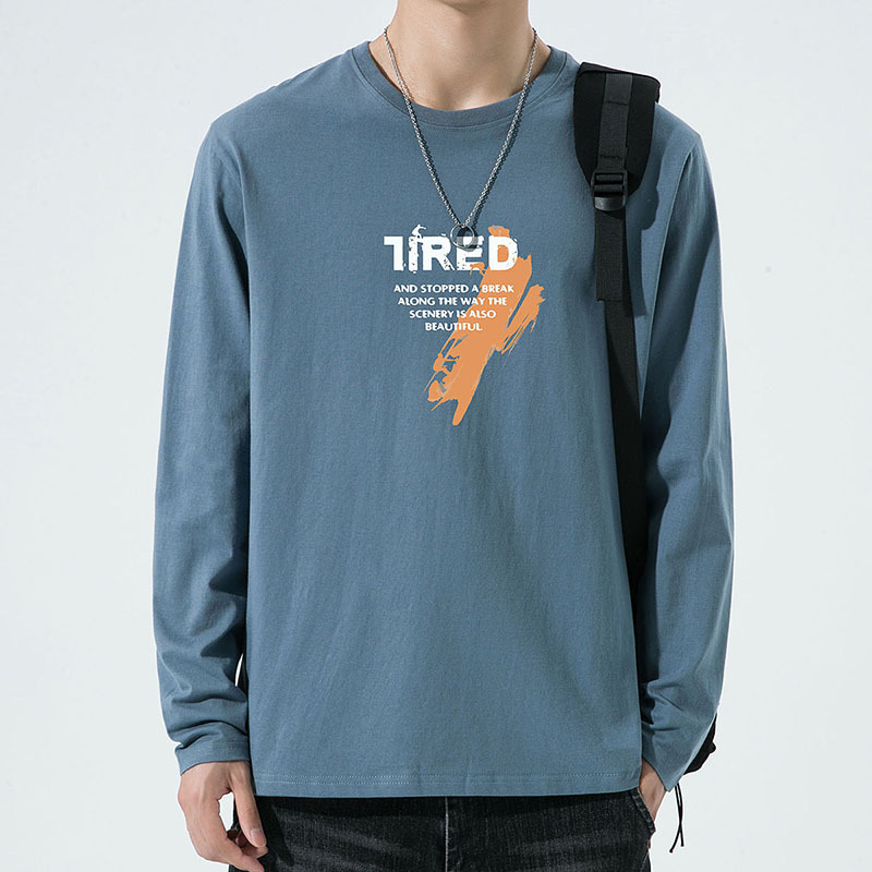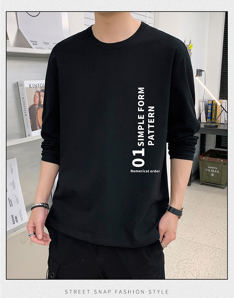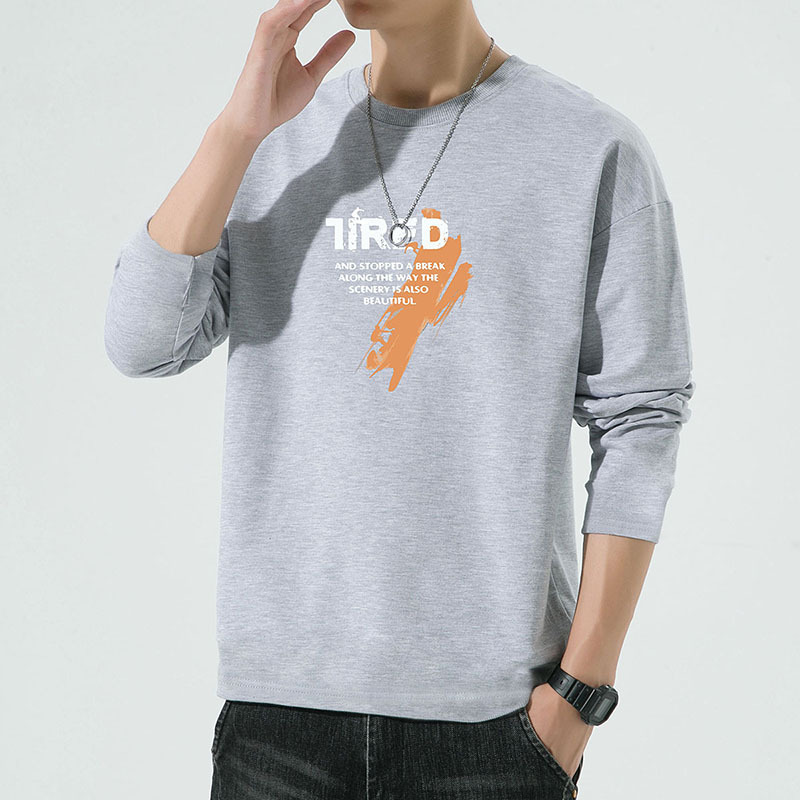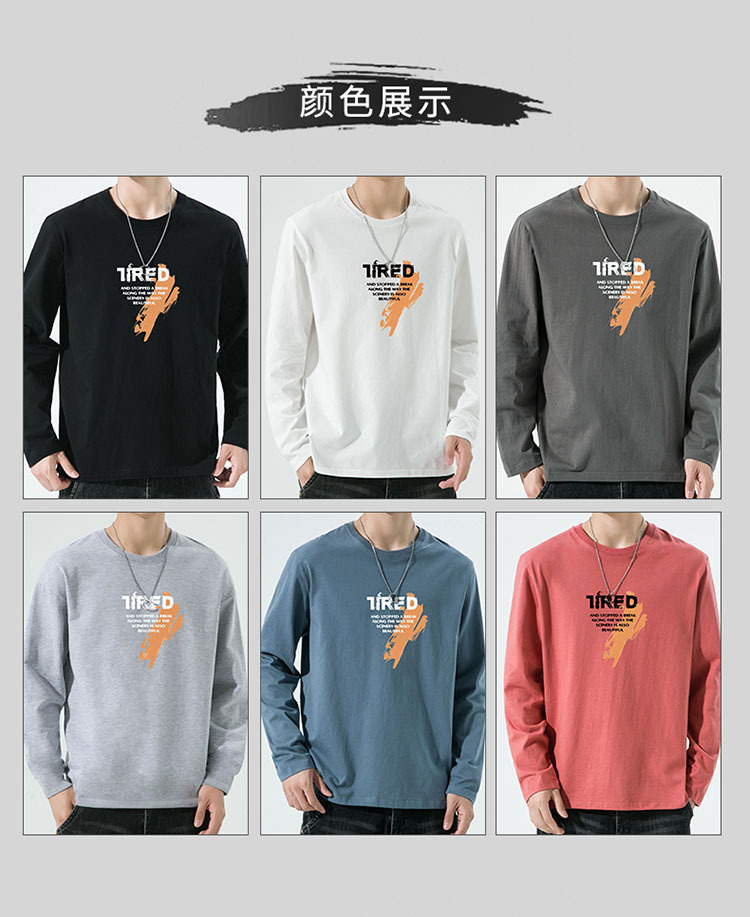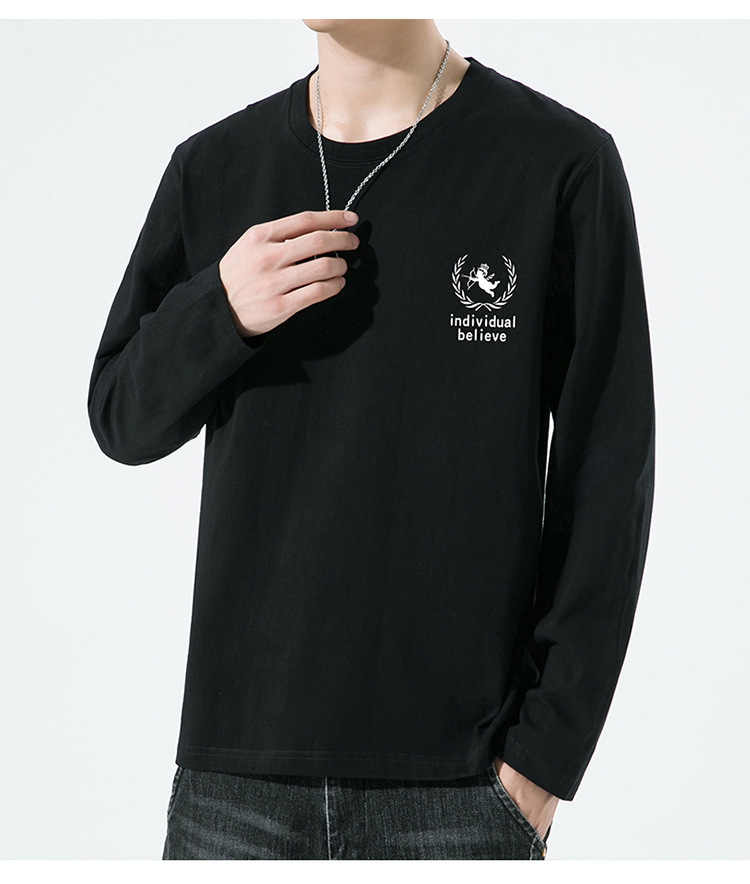 秋季新款长袖T恤男运动休闲长T青年时尚宽松圆领卫衣纯棉上衣大码