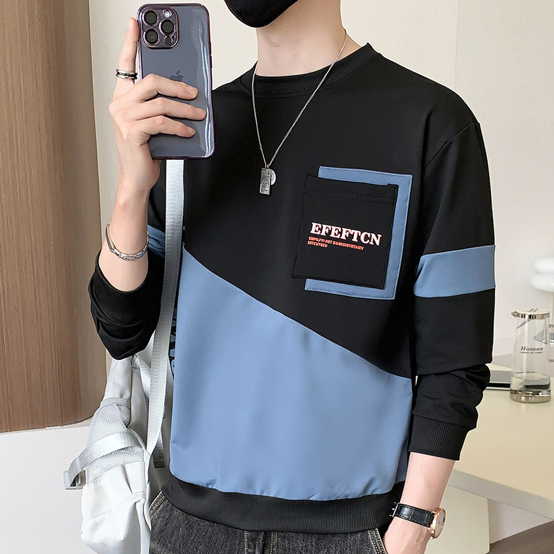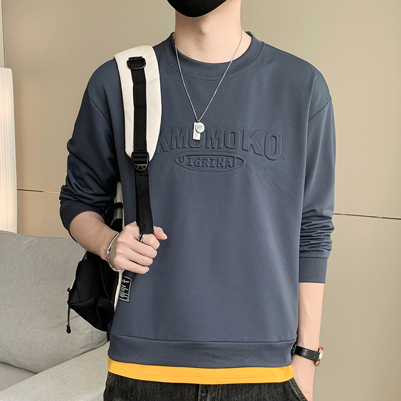 卫衣男士2023春秋季新款假两件长袖体恤男宽松休闲国潮圆领打底衫