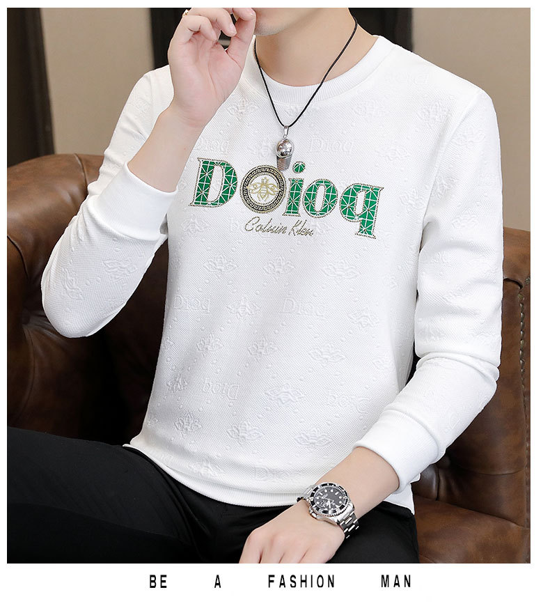 2023春秋季长袖t恤男士韩版时尚修身打底小衫上衣服潮流卫衣男装