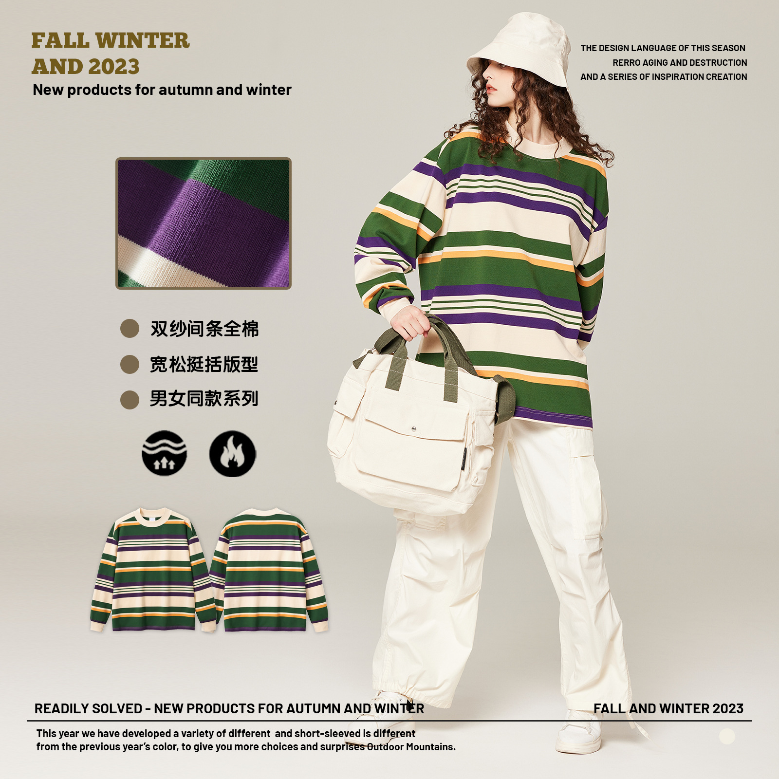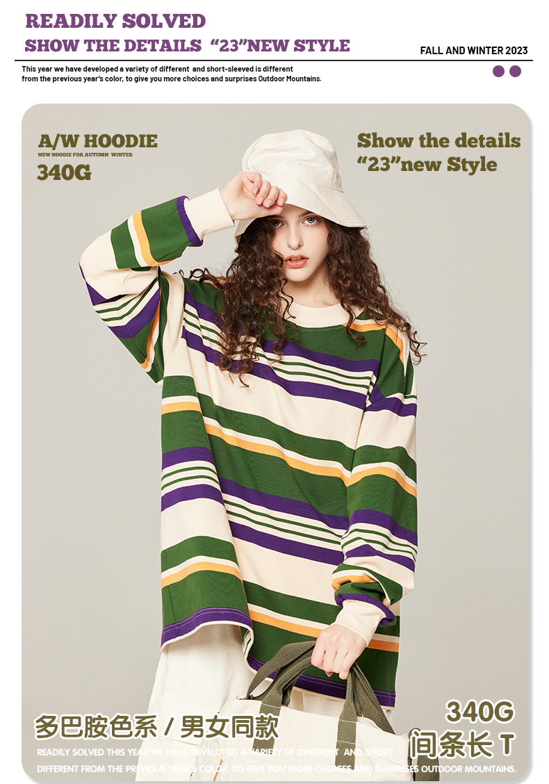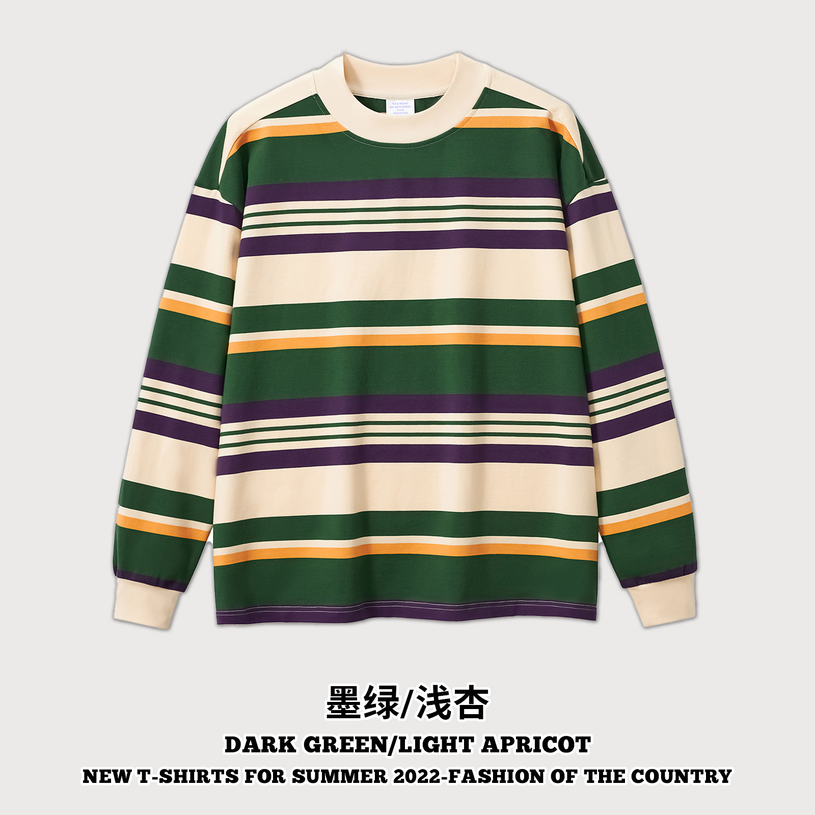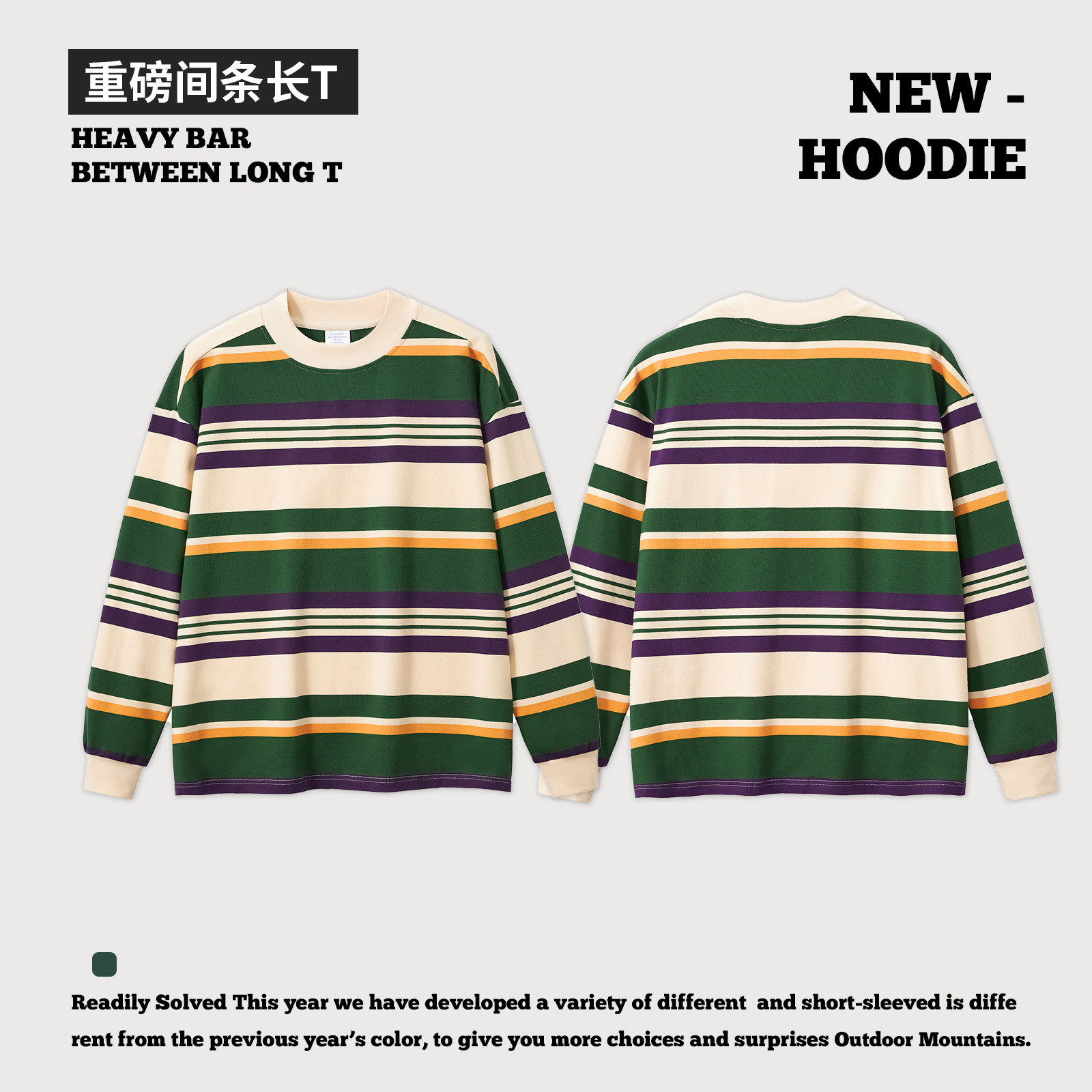 RS男装|340g纯棉洗水撞色条纹长袖t恤简约大方休闲ins潮牌情侣T恤