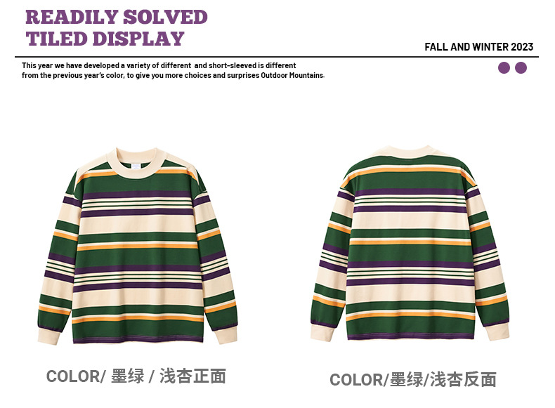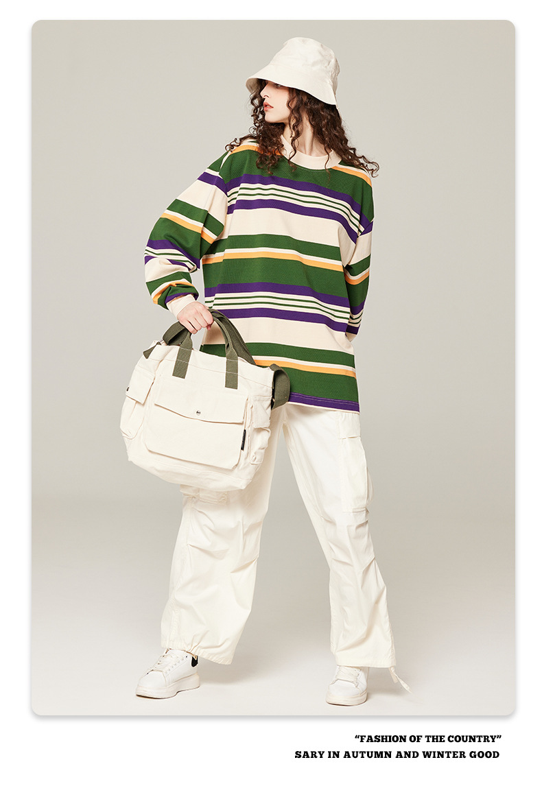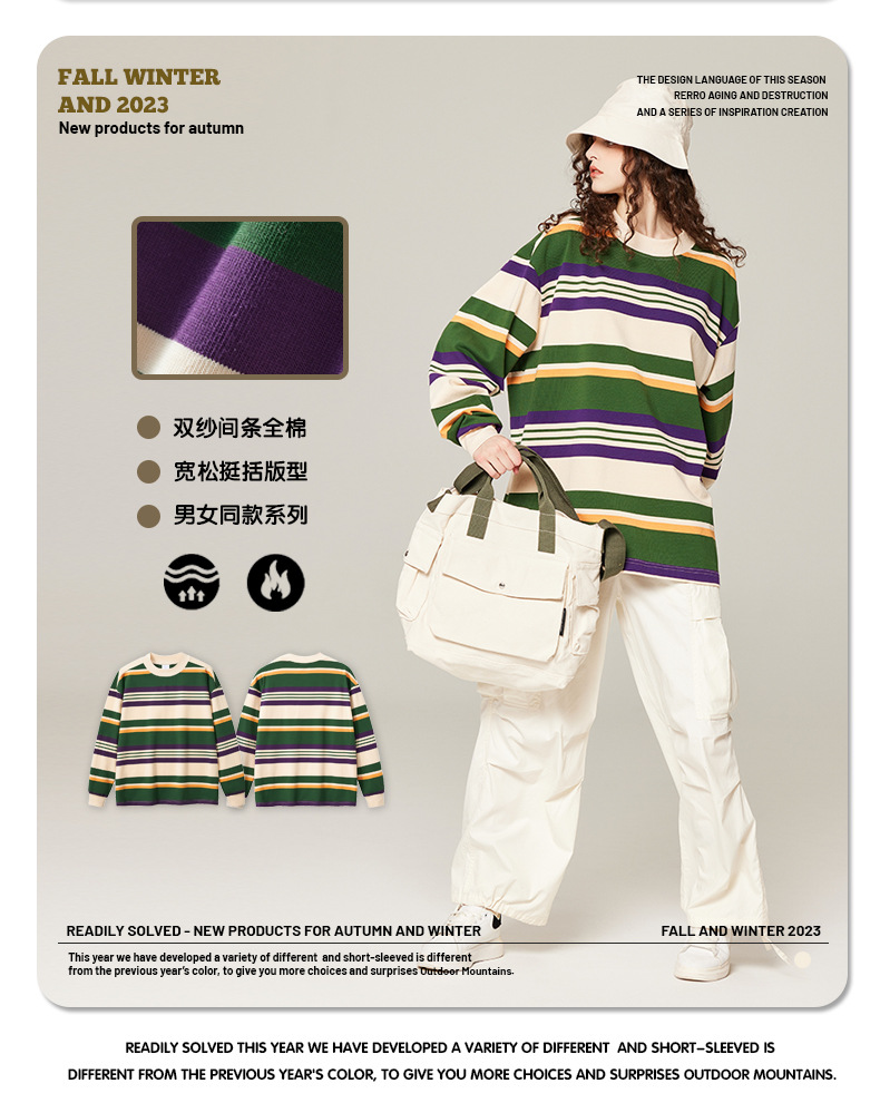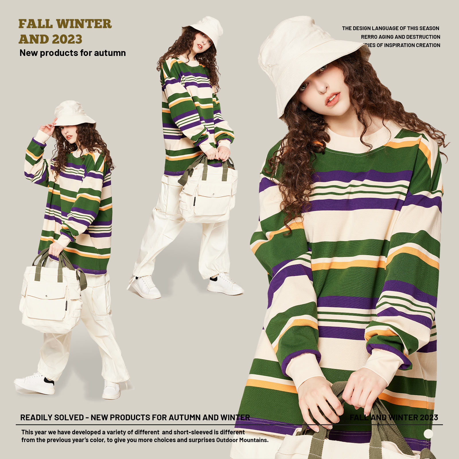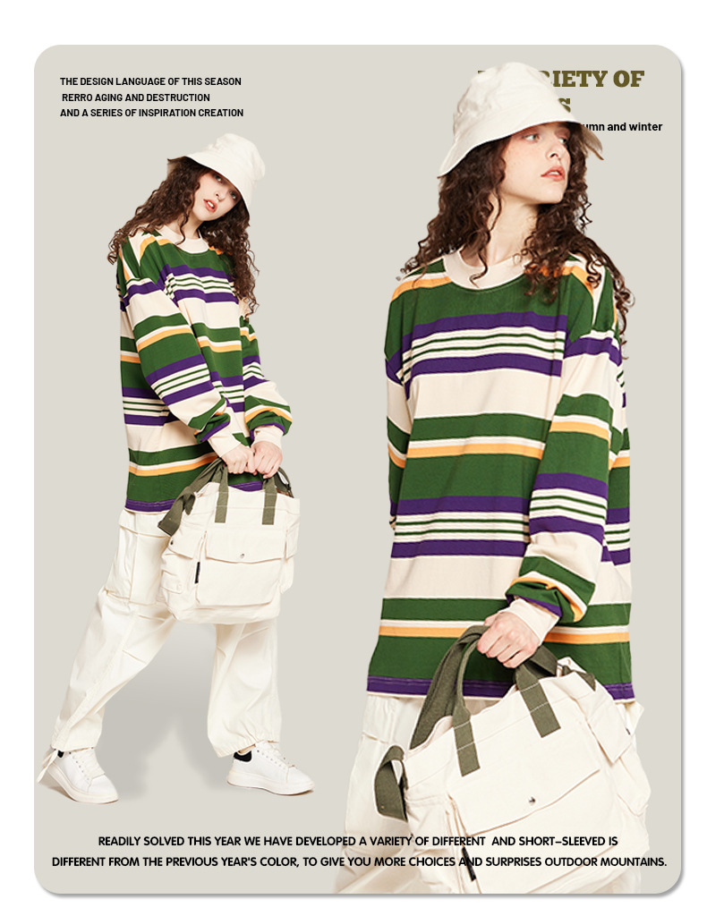 RS男装|340g纯棉洗水撞色条纹长袖t恤简约大方休闲ins潮牌情侣T恤