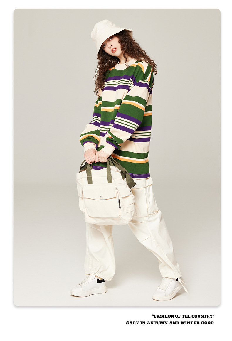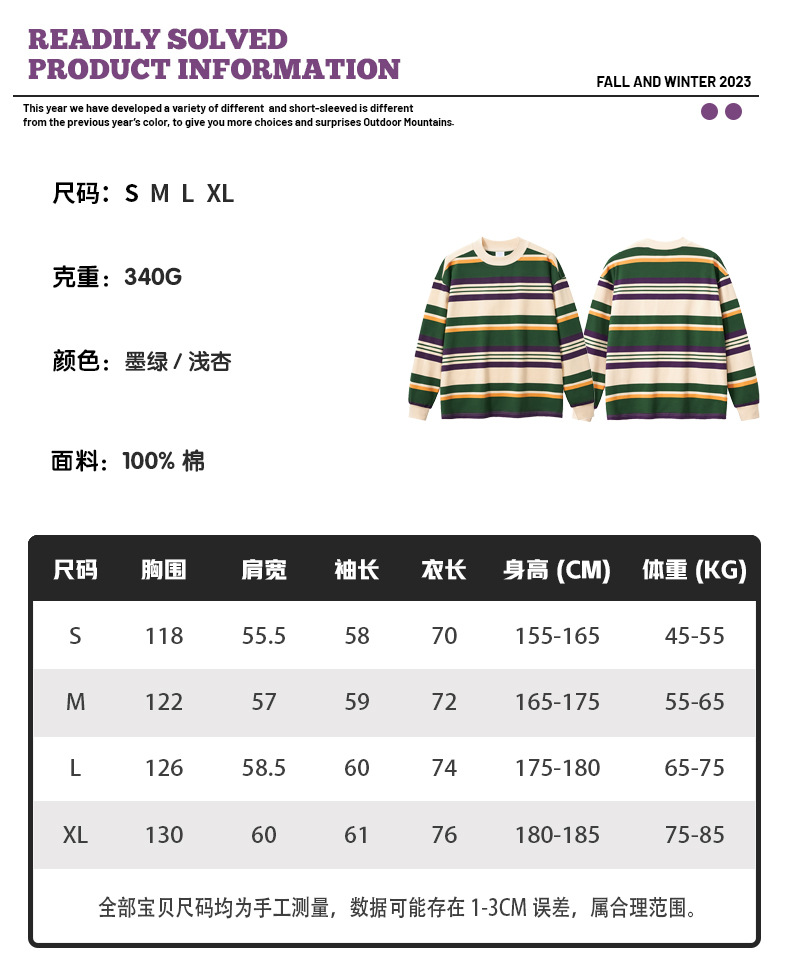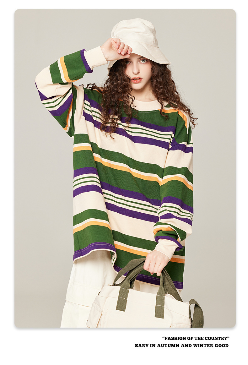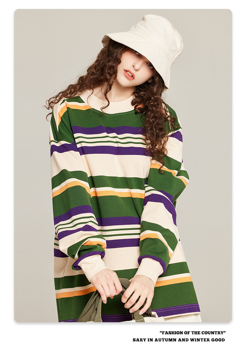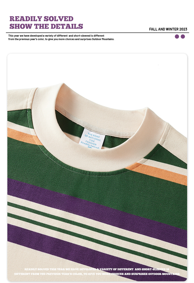 RS男装|340g纯棉洗水撞色条纹长袖t恤简约大方休闲ins潮牌情侣T恤