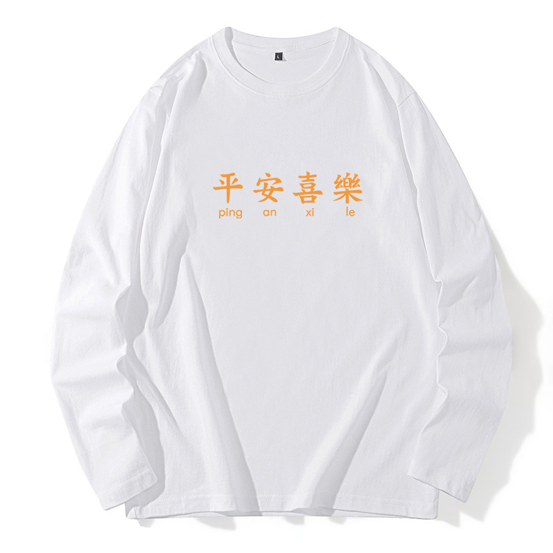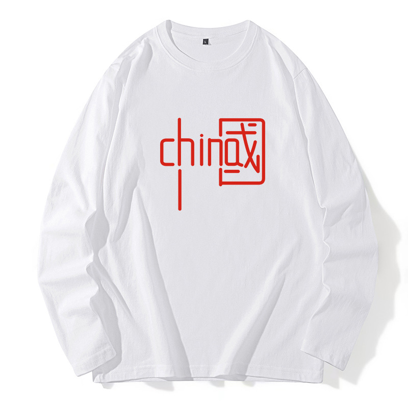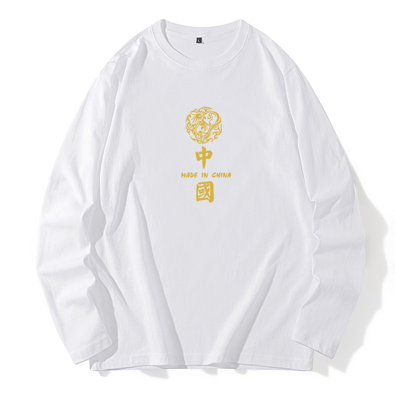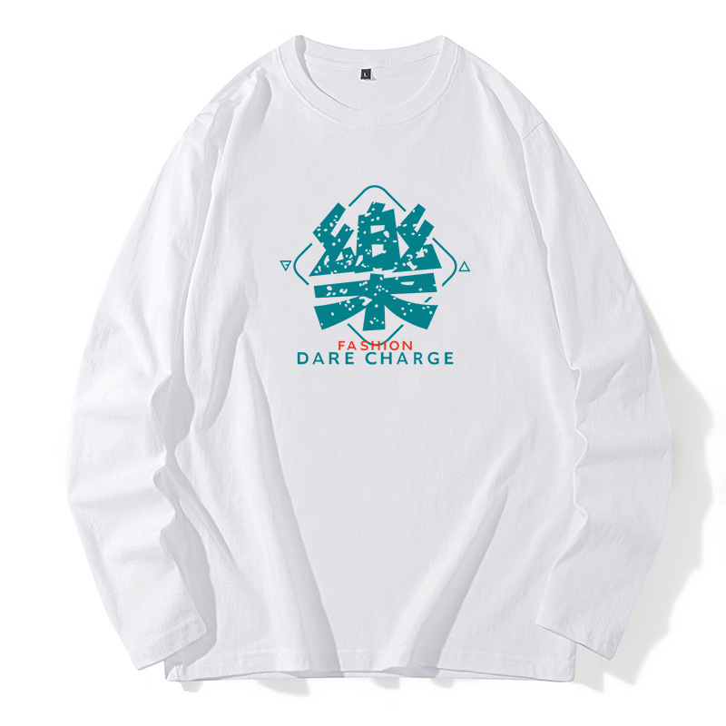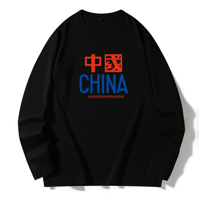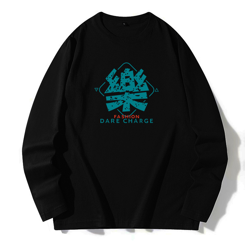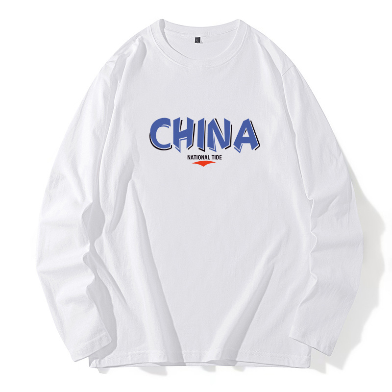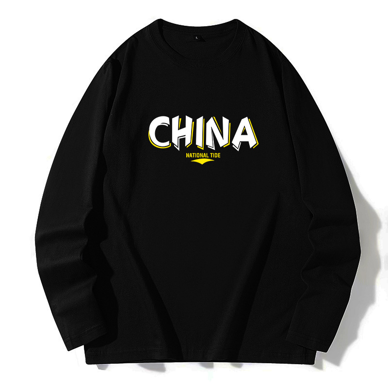 男士春秋季长袖t国潮时尚休闲潮流印花圆领T恤男女同款打底体恤衫
