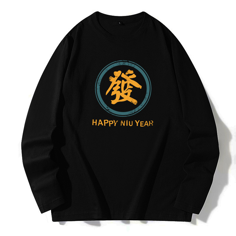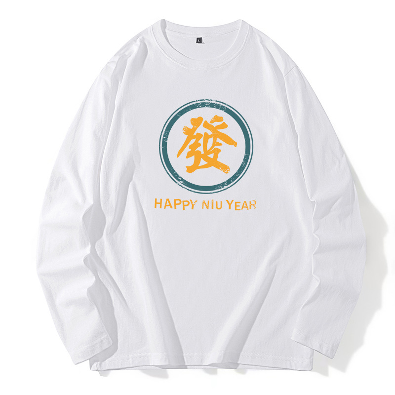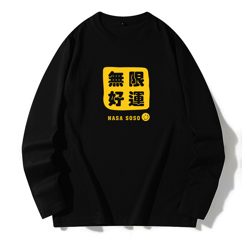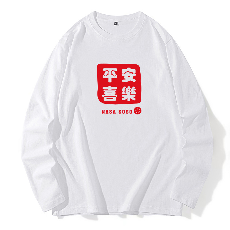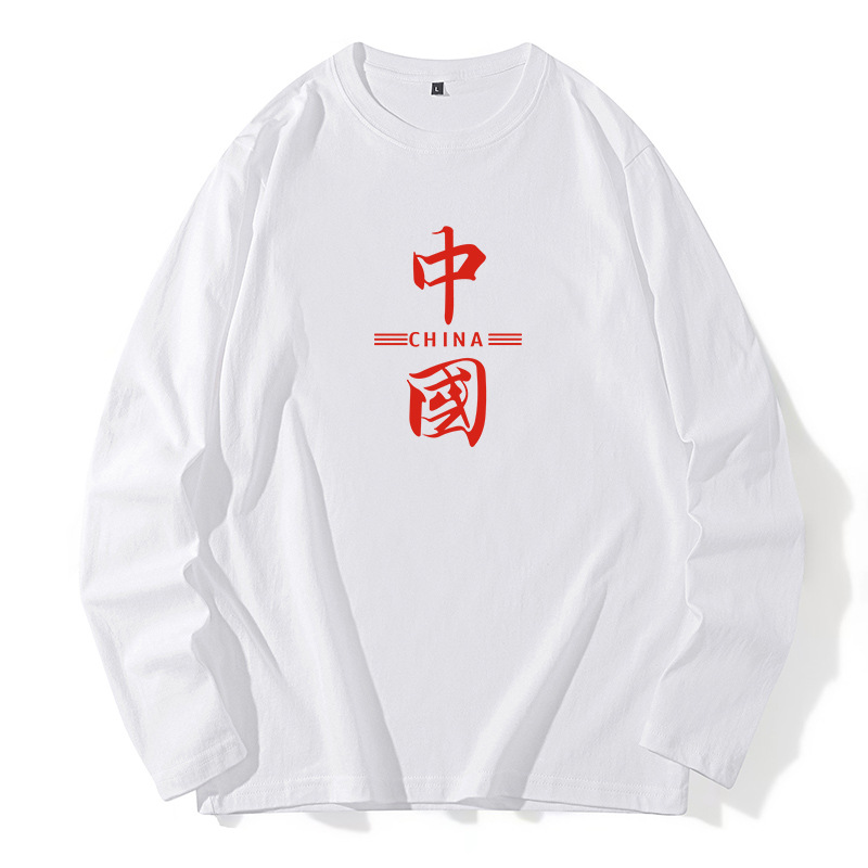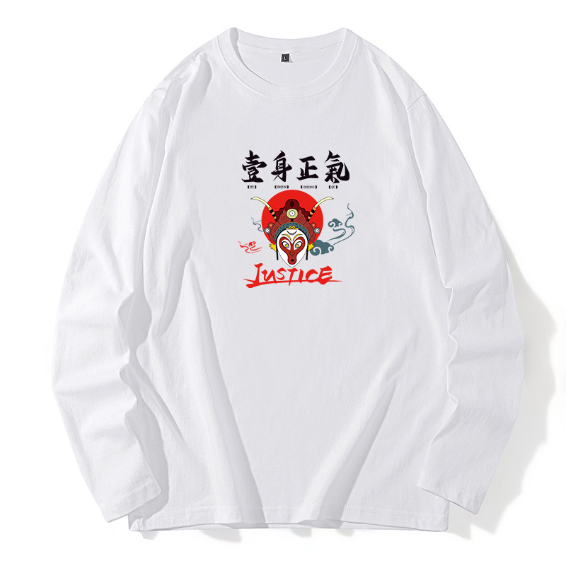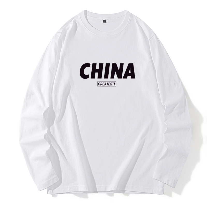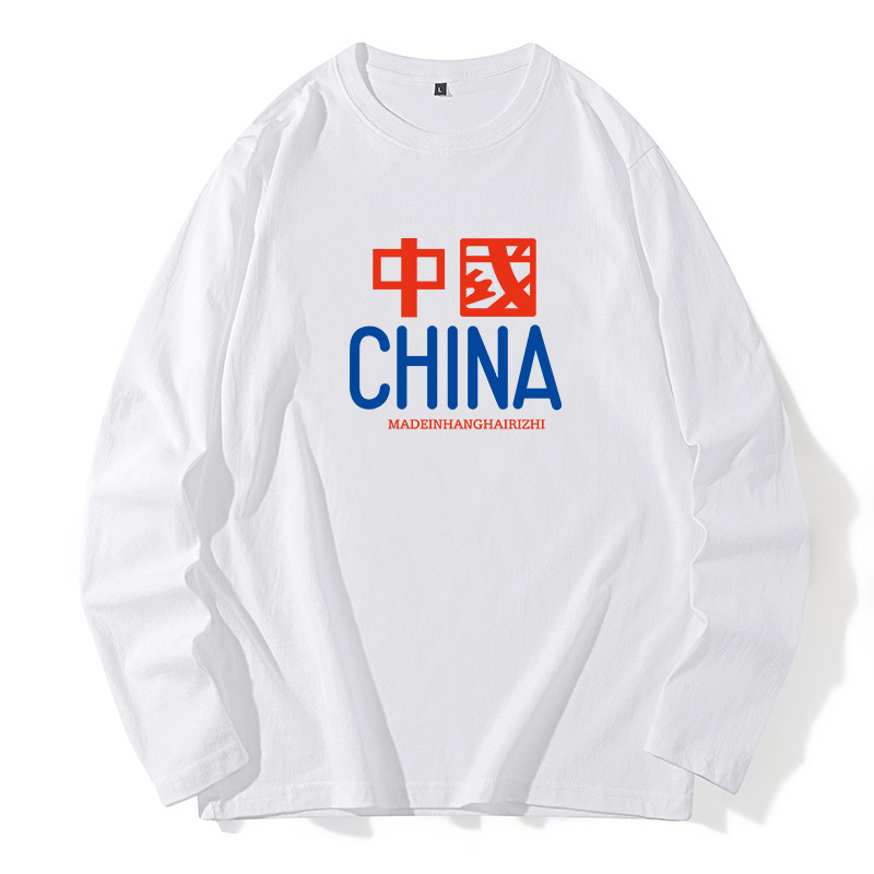 男士春秋季长袖t国潮时尚休闲潮流印花圆领T恤男女同款打底体恤衫