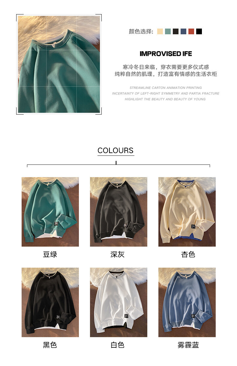 潮牌卫衣男圆领2023新款潮流秋冬季百搭加绒宽松男士套头长袖T恤