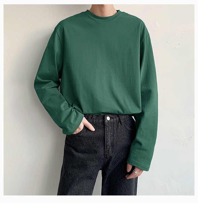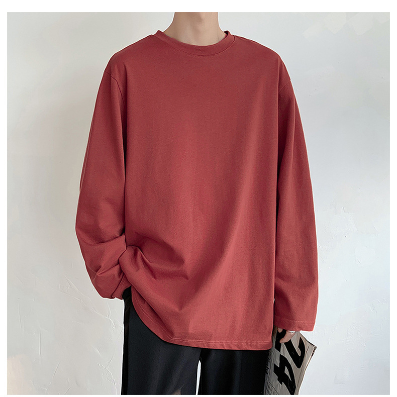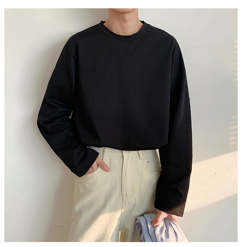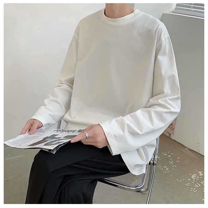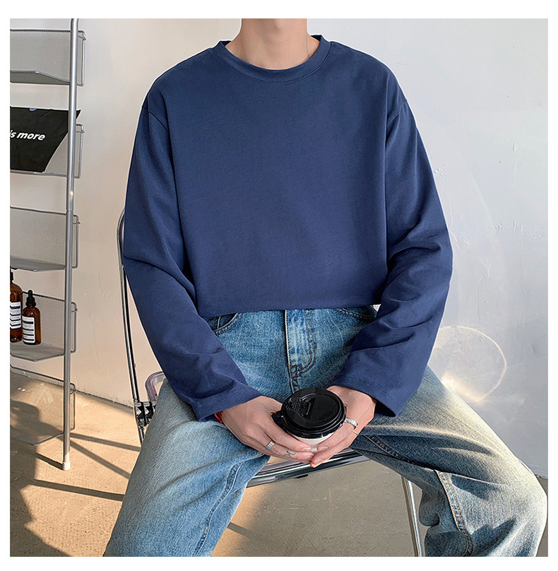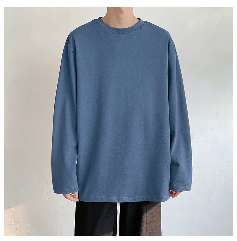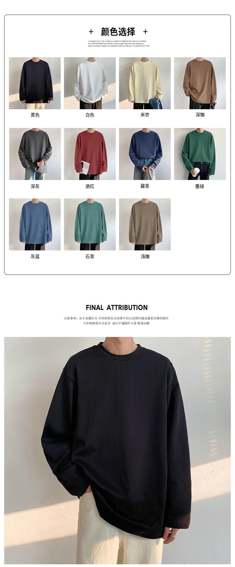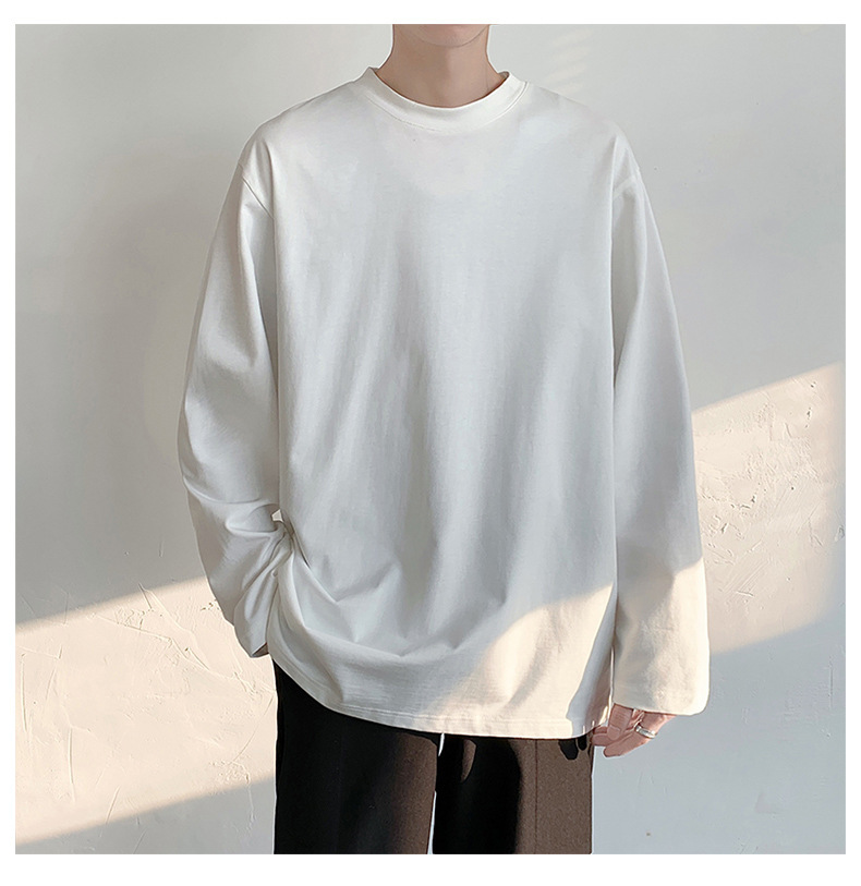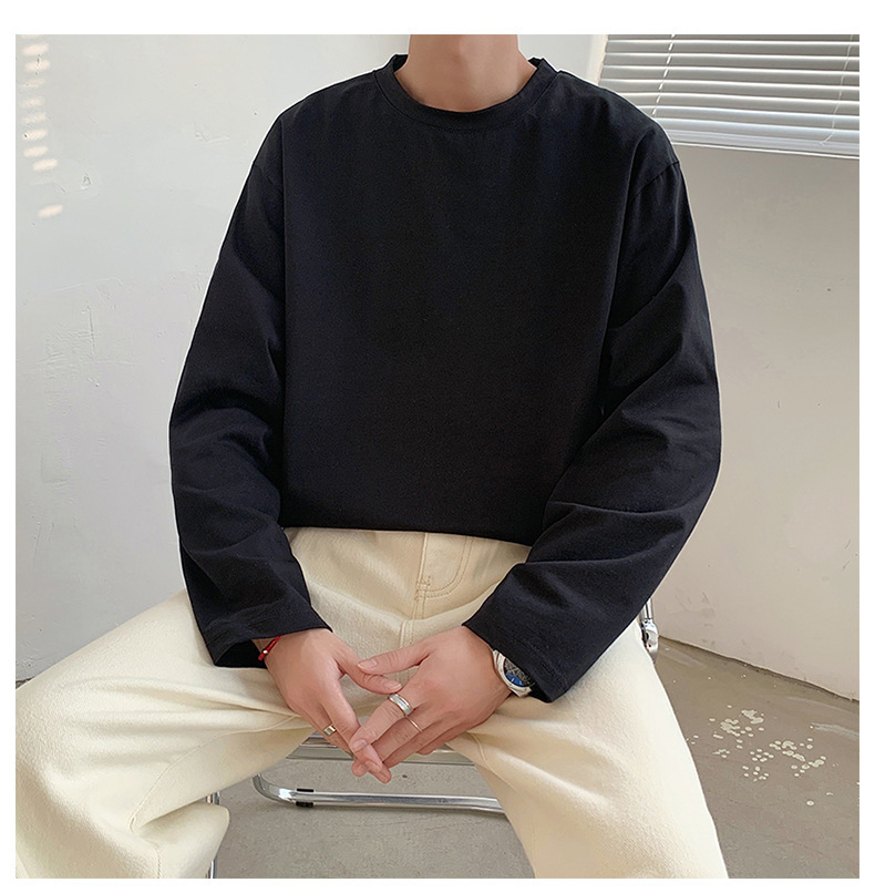 纯色长袖T恤男秋季宽松百搭港风大码简约打底杉圆领潮纯棉