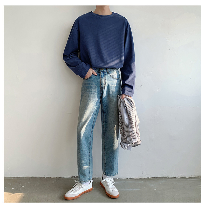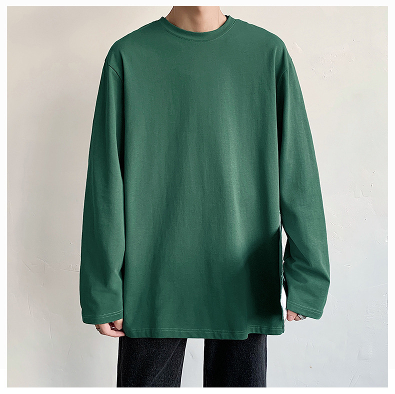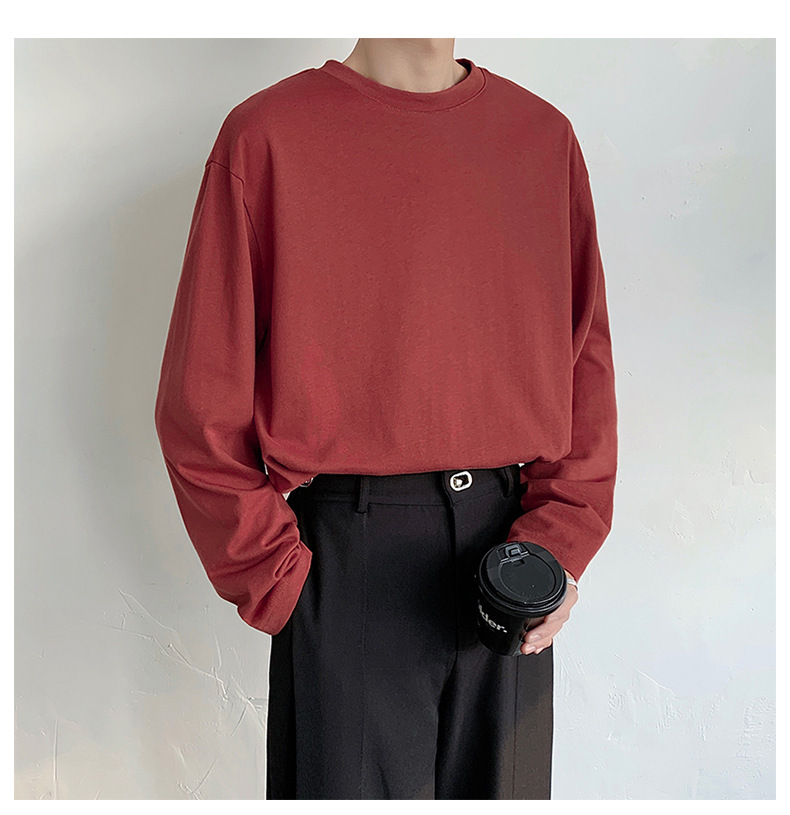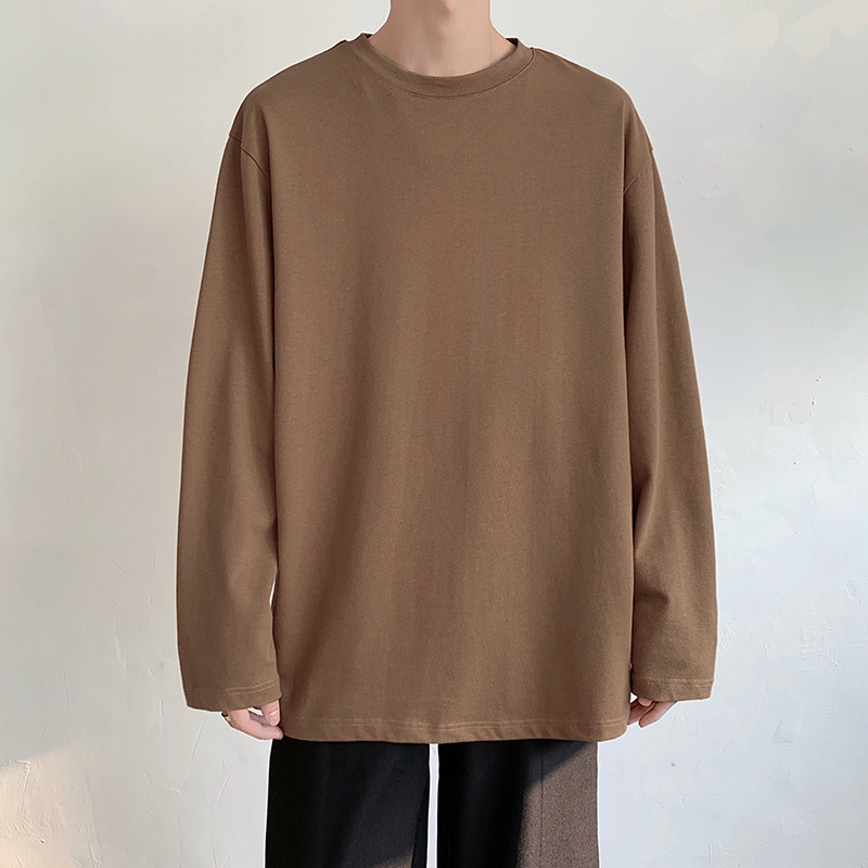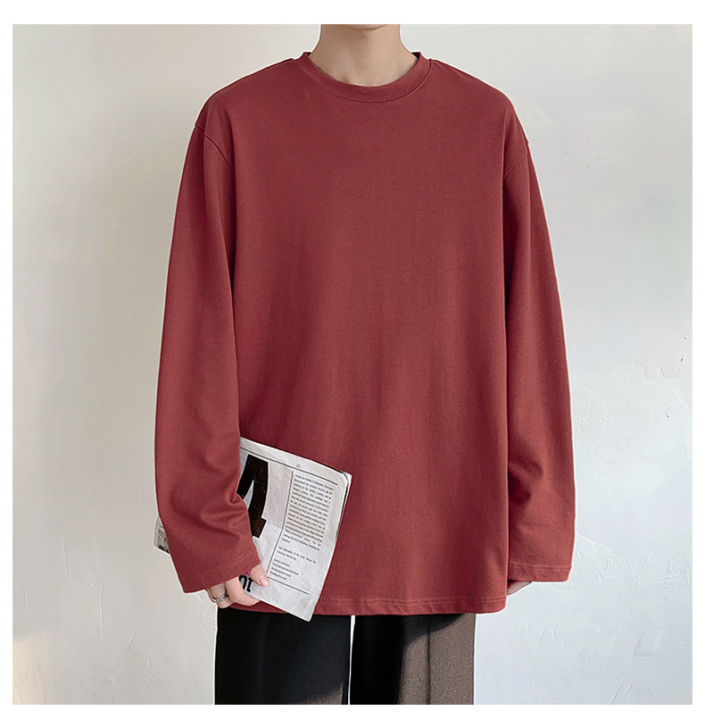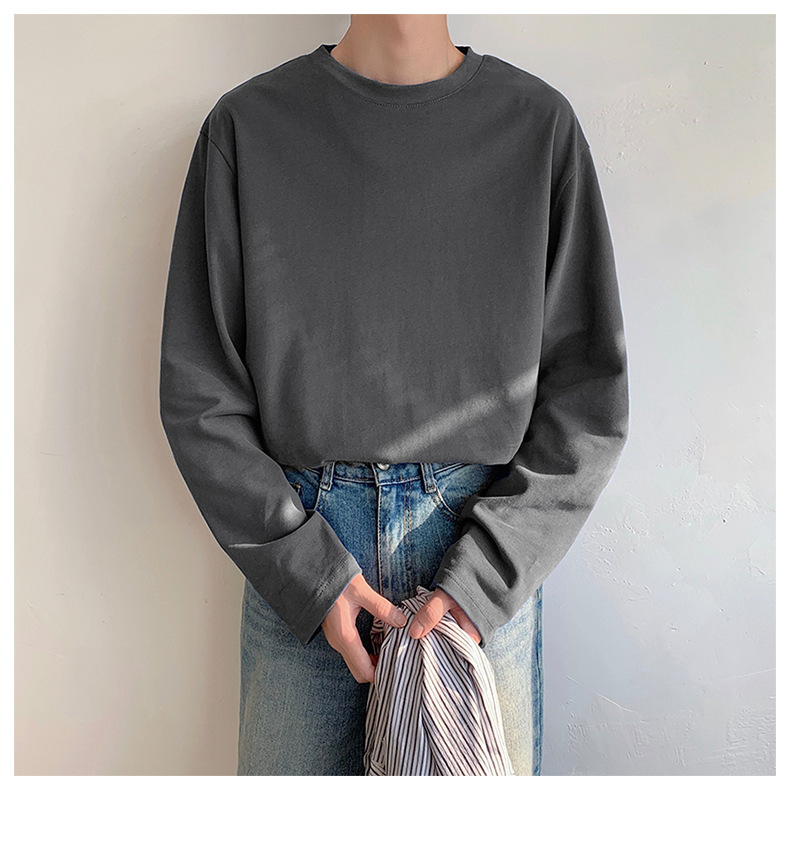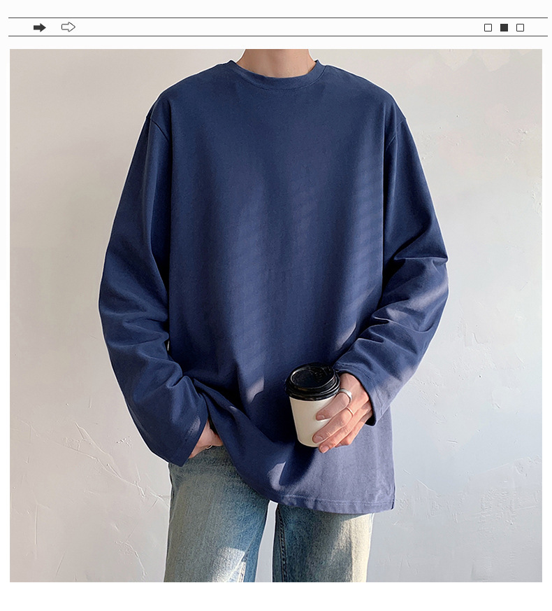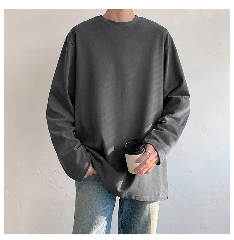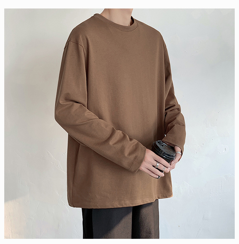 纯色长袖T恤男秋季宽松百搭港风大码简约打底杉圆领潮纯棉