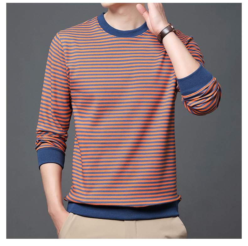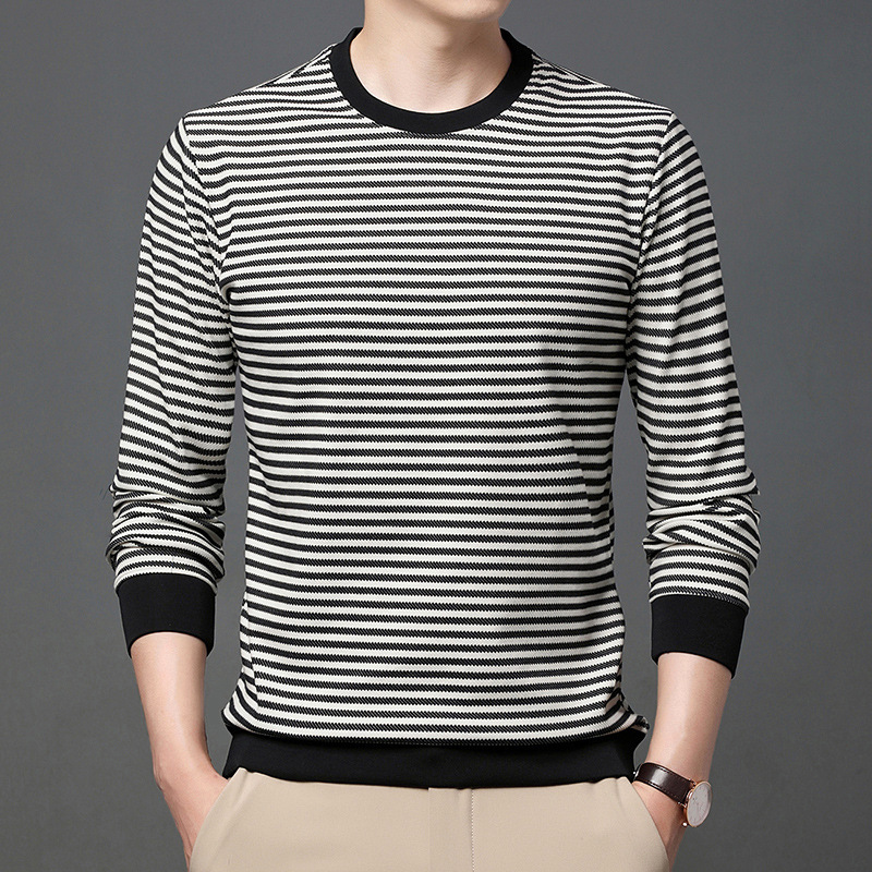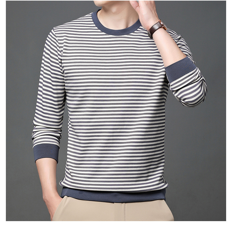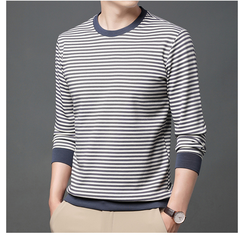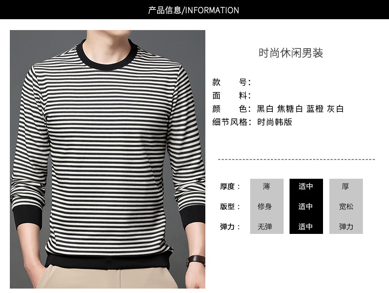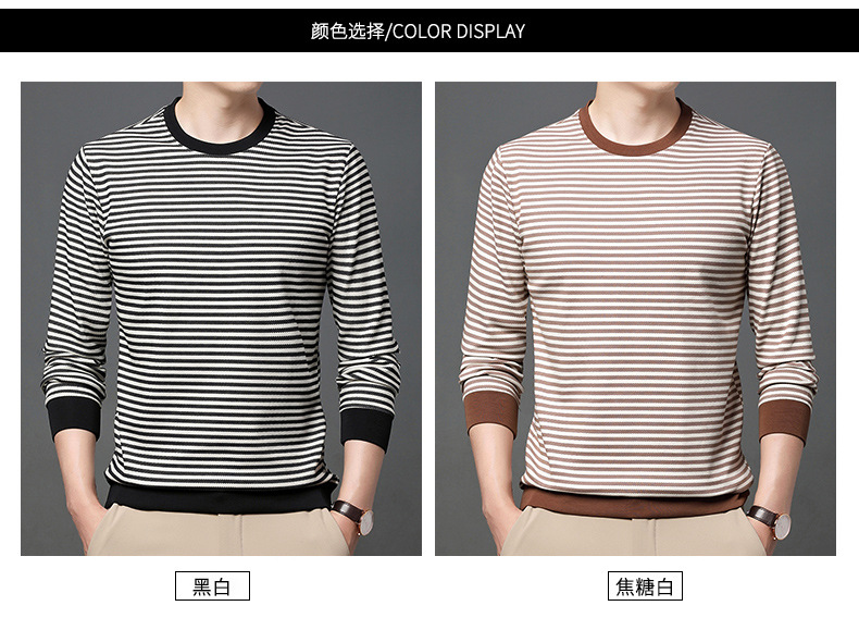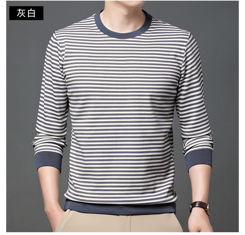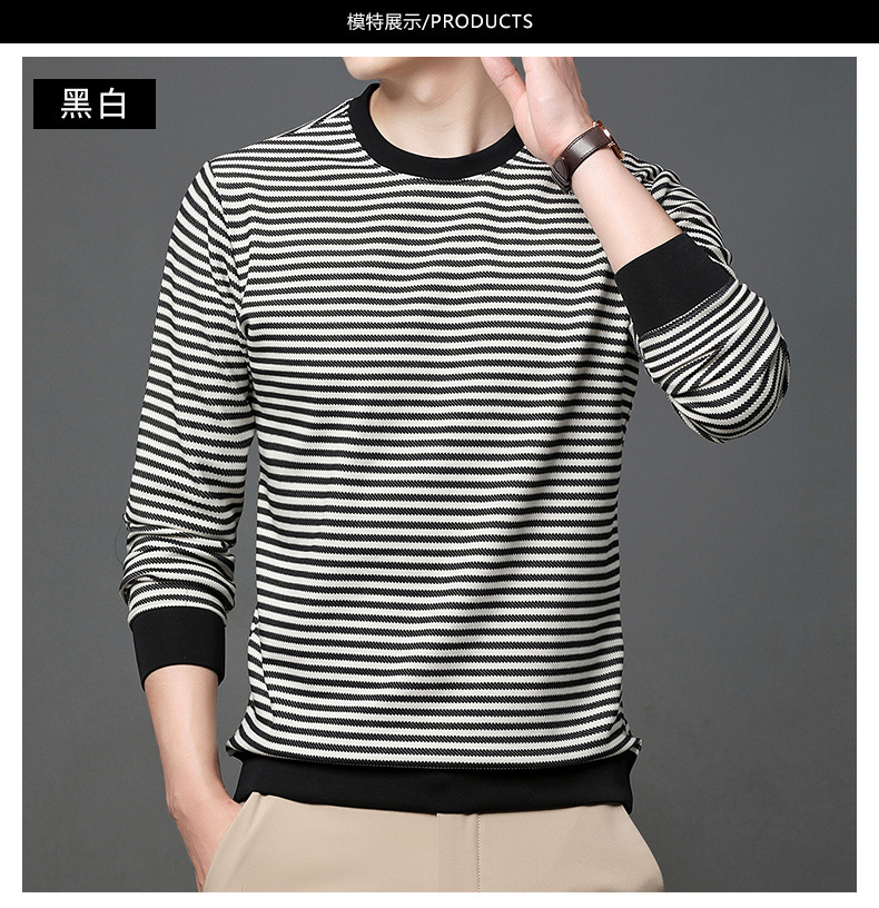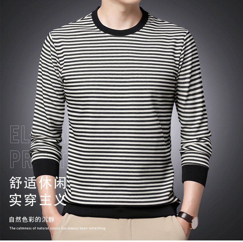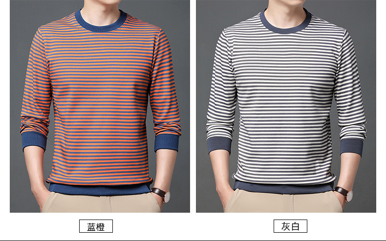 徽升男装秋季男士圆领横条纹棉质长袖t恤男韩版潮牌卫衣打底衫男