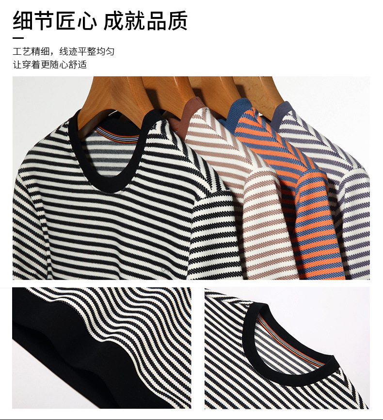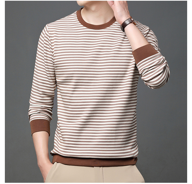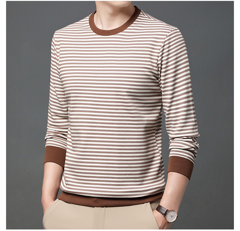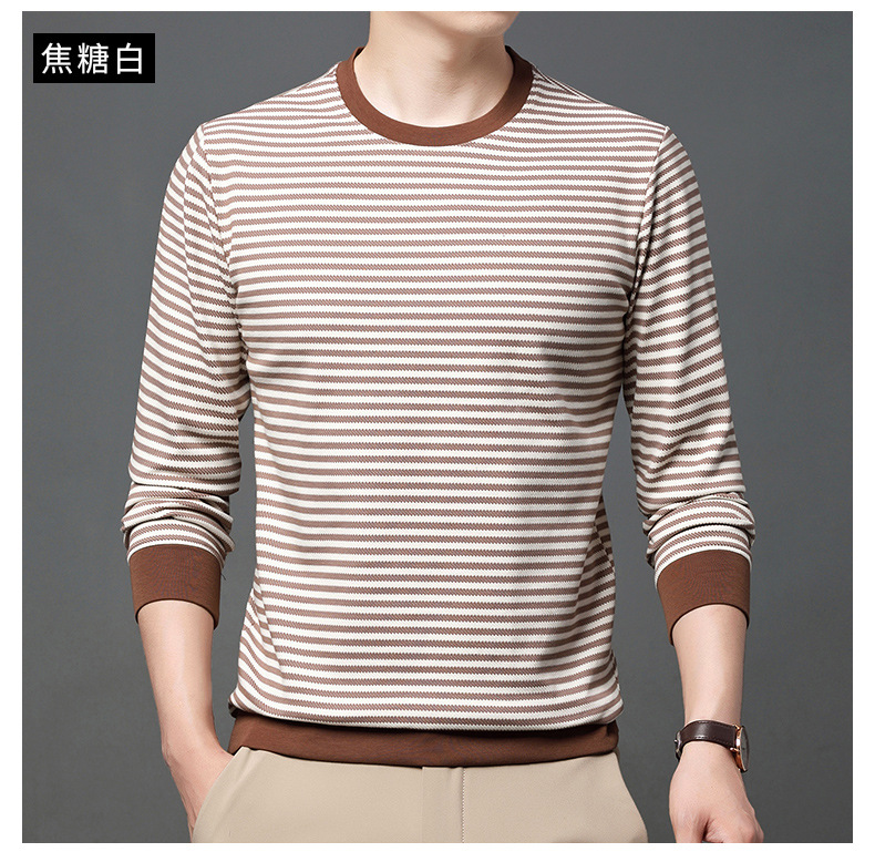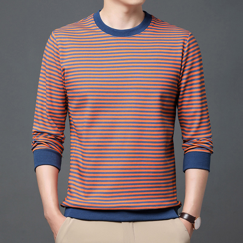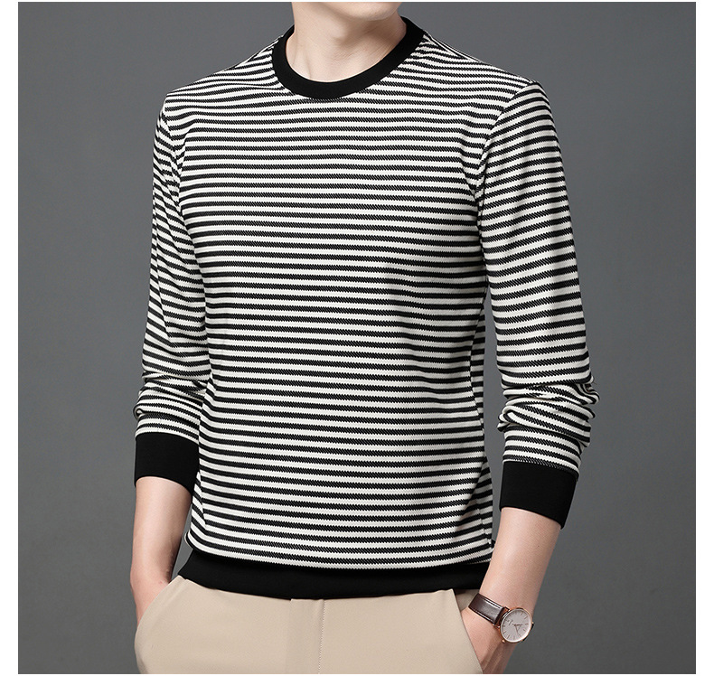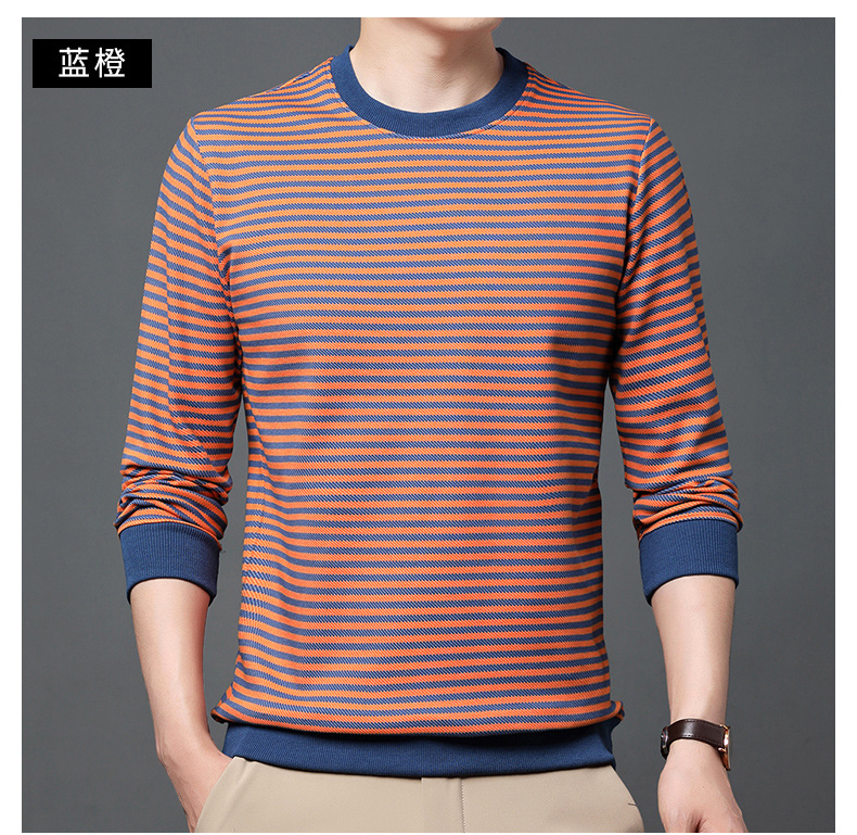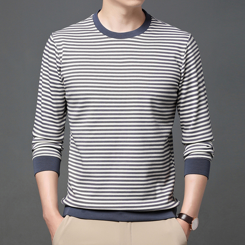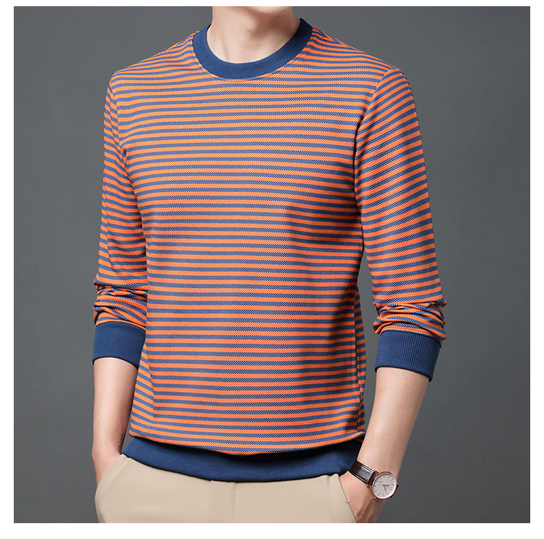 徽升男装秋季男士圆领横条纹棉质长袖t恤男韩版潮牌卫衣打底衫男