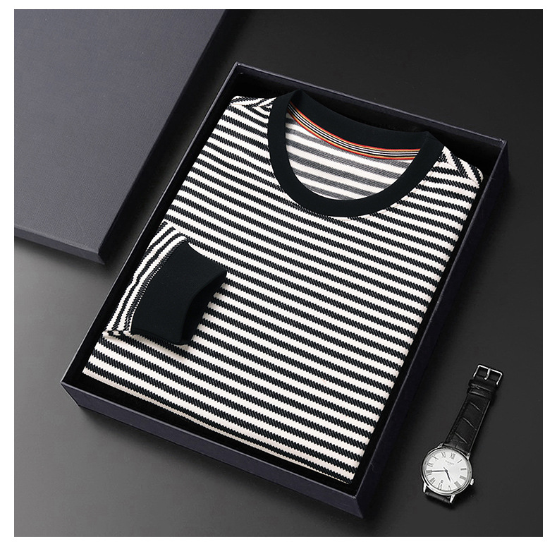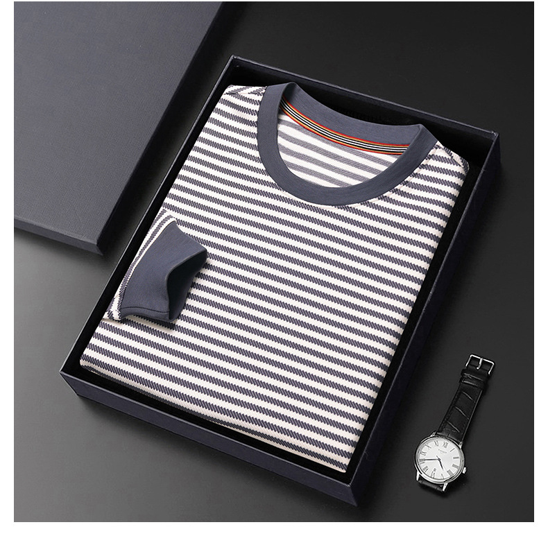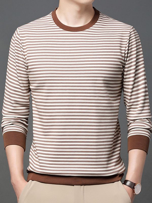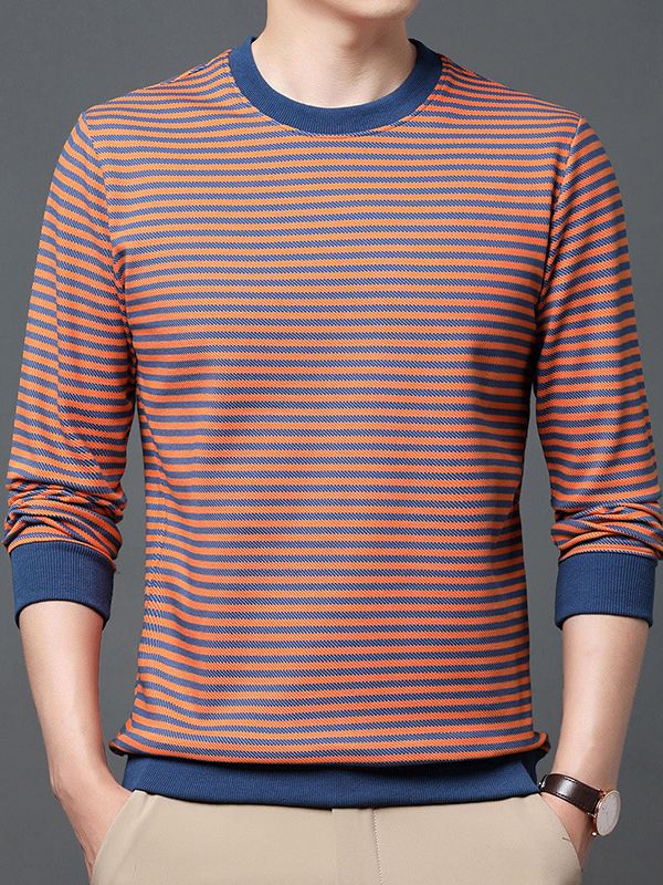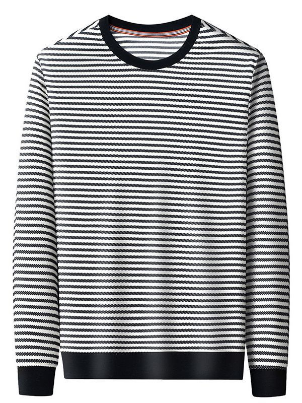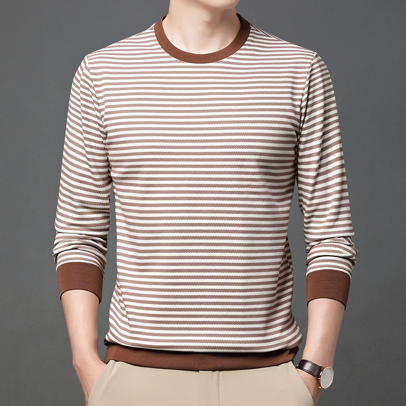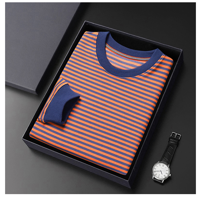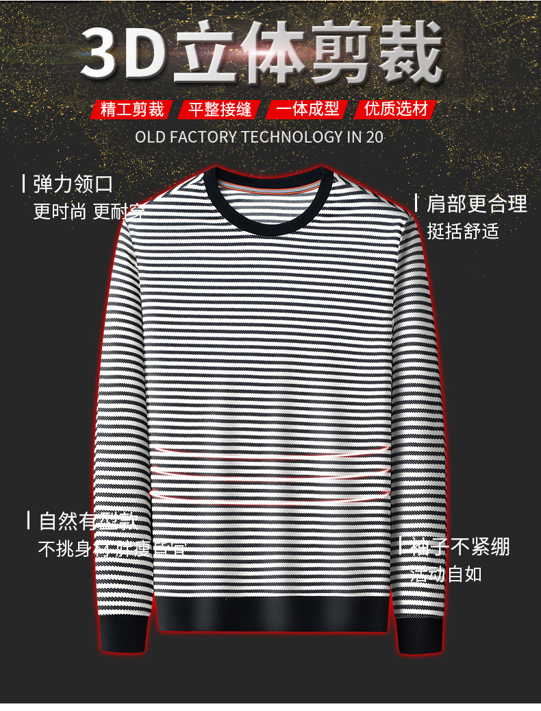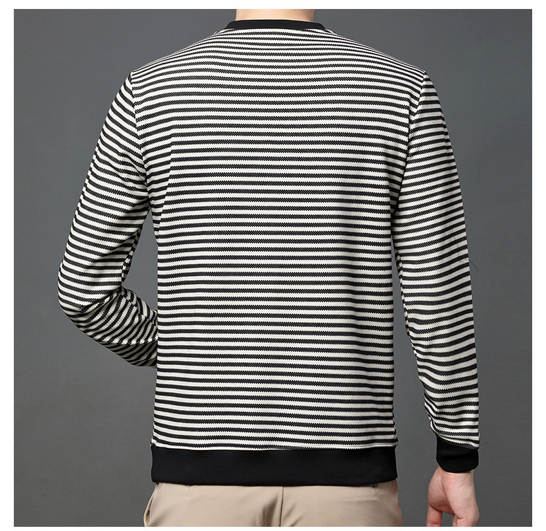 徽升男装秋季男士圆领横条纹棉质长袖t恤男韩版潮牌卫衣打底衫男