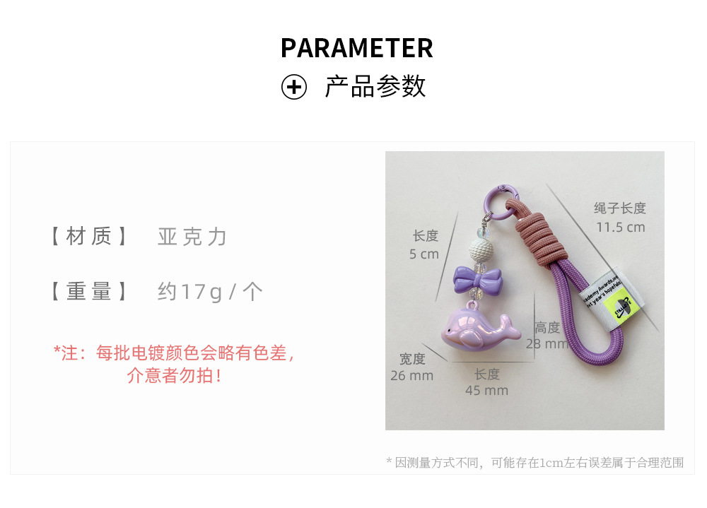 亚克力实色炫彩可爱小鲸鱼海豚镀uv挂件编制布绳钥匙扣书包挂饰绳
