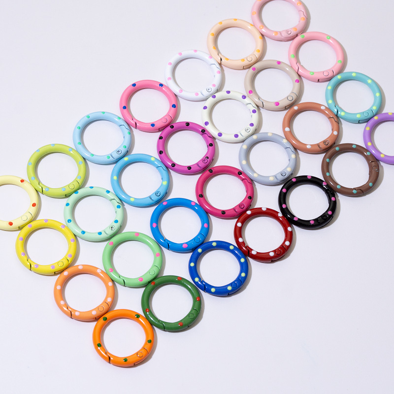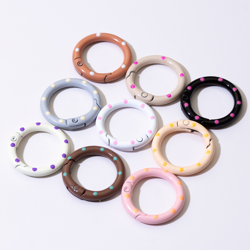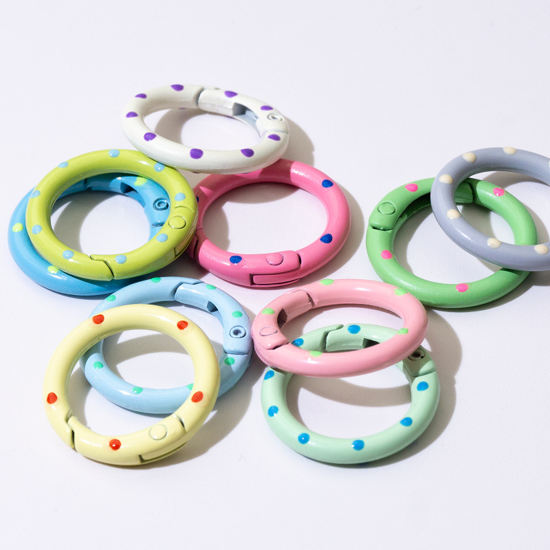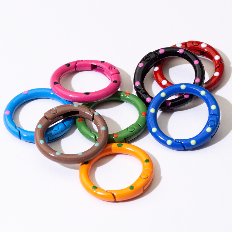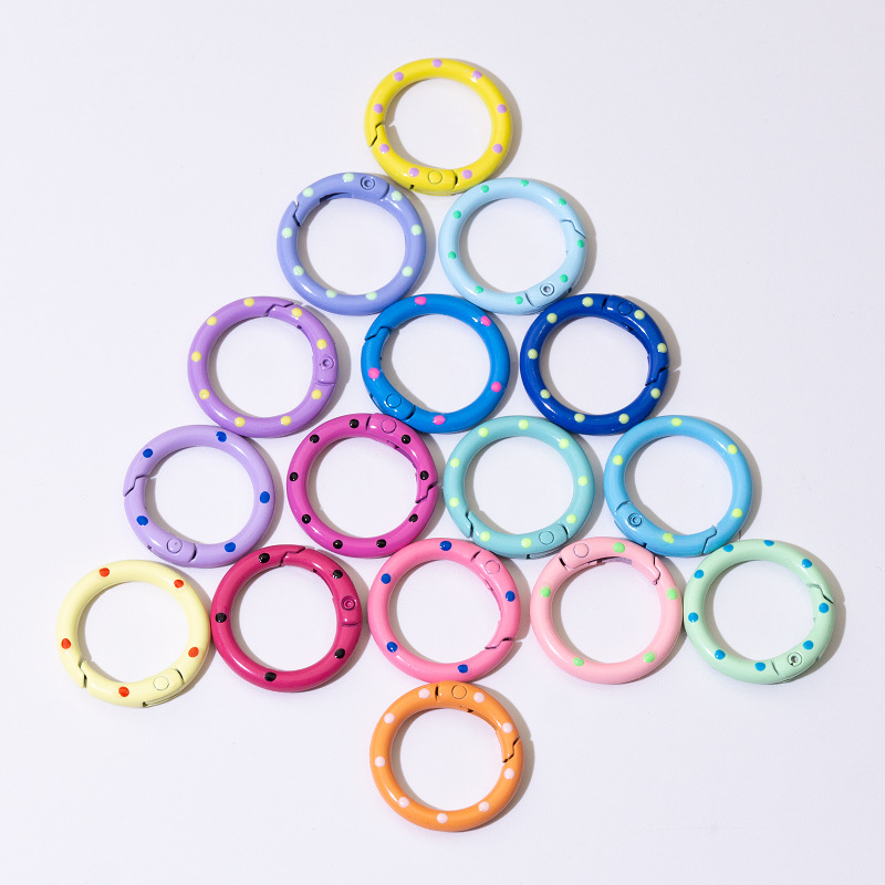 烤漆彩色弹簧扣圆形开口环波点弹簧圈钥匙扣DIY配件合金连接环