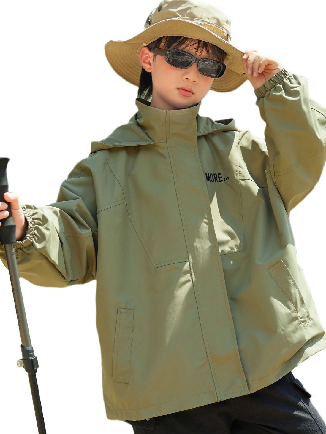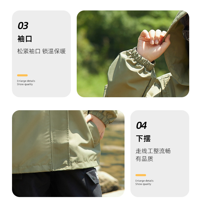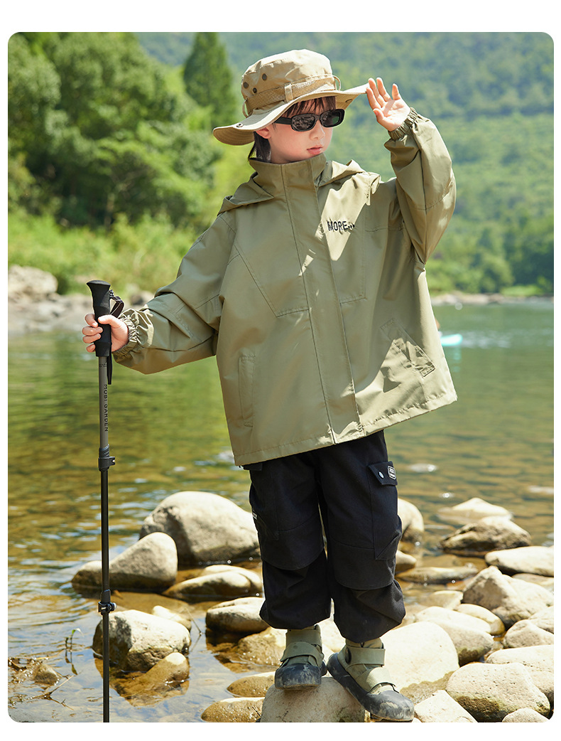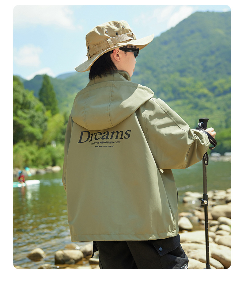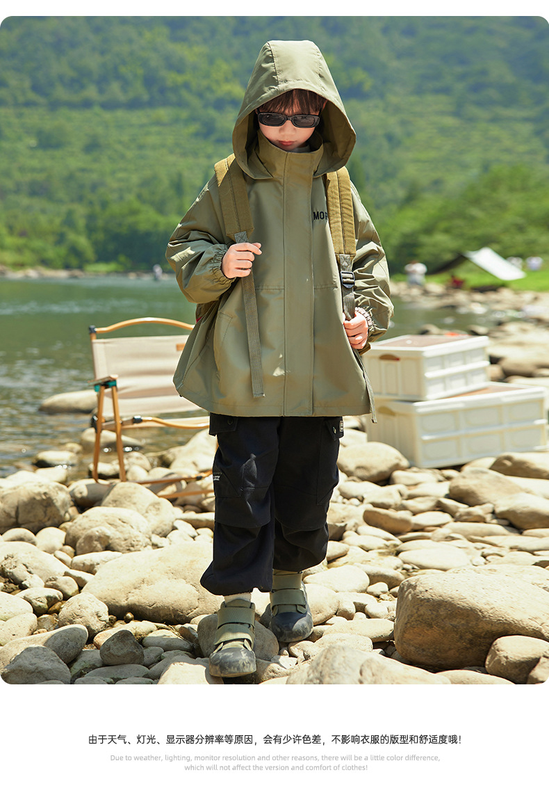 男童字母印花户外三防冲锋衣2023秋季新款中大童简约纯色连帽外套