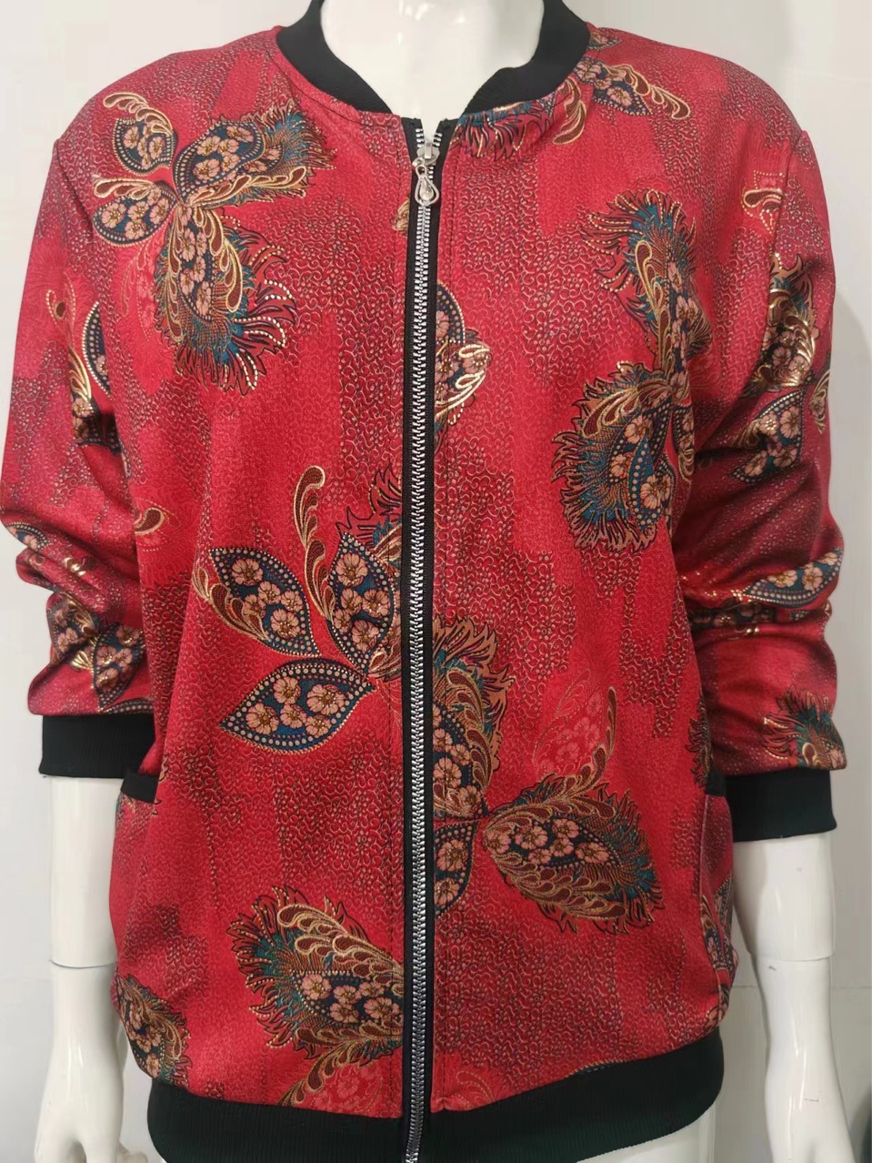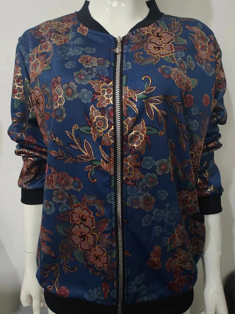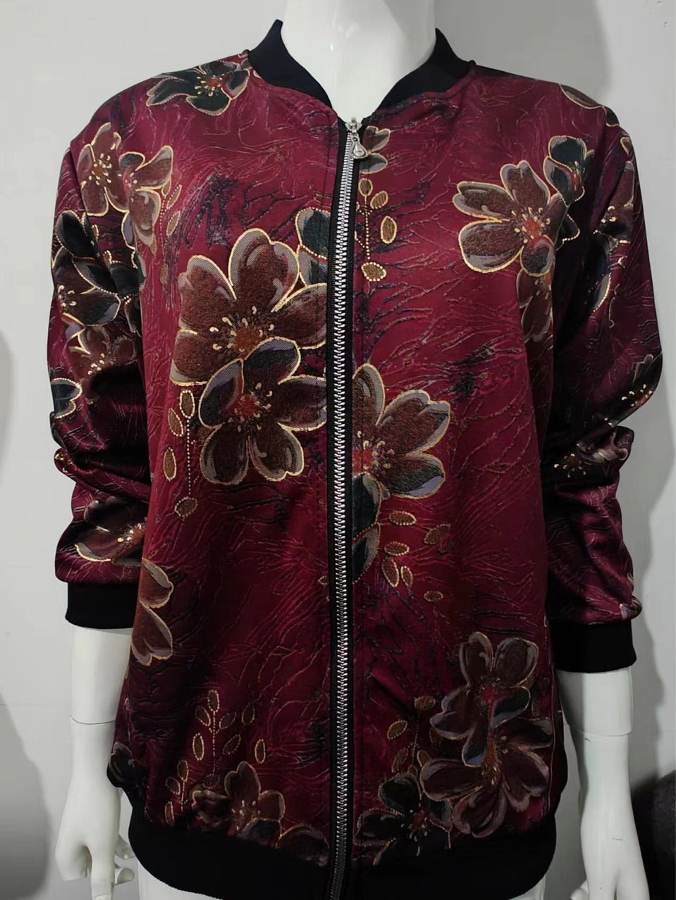 2024外套中老年人秋装女长袖上衣新款春秋立领夹克韩版休闲加肥大