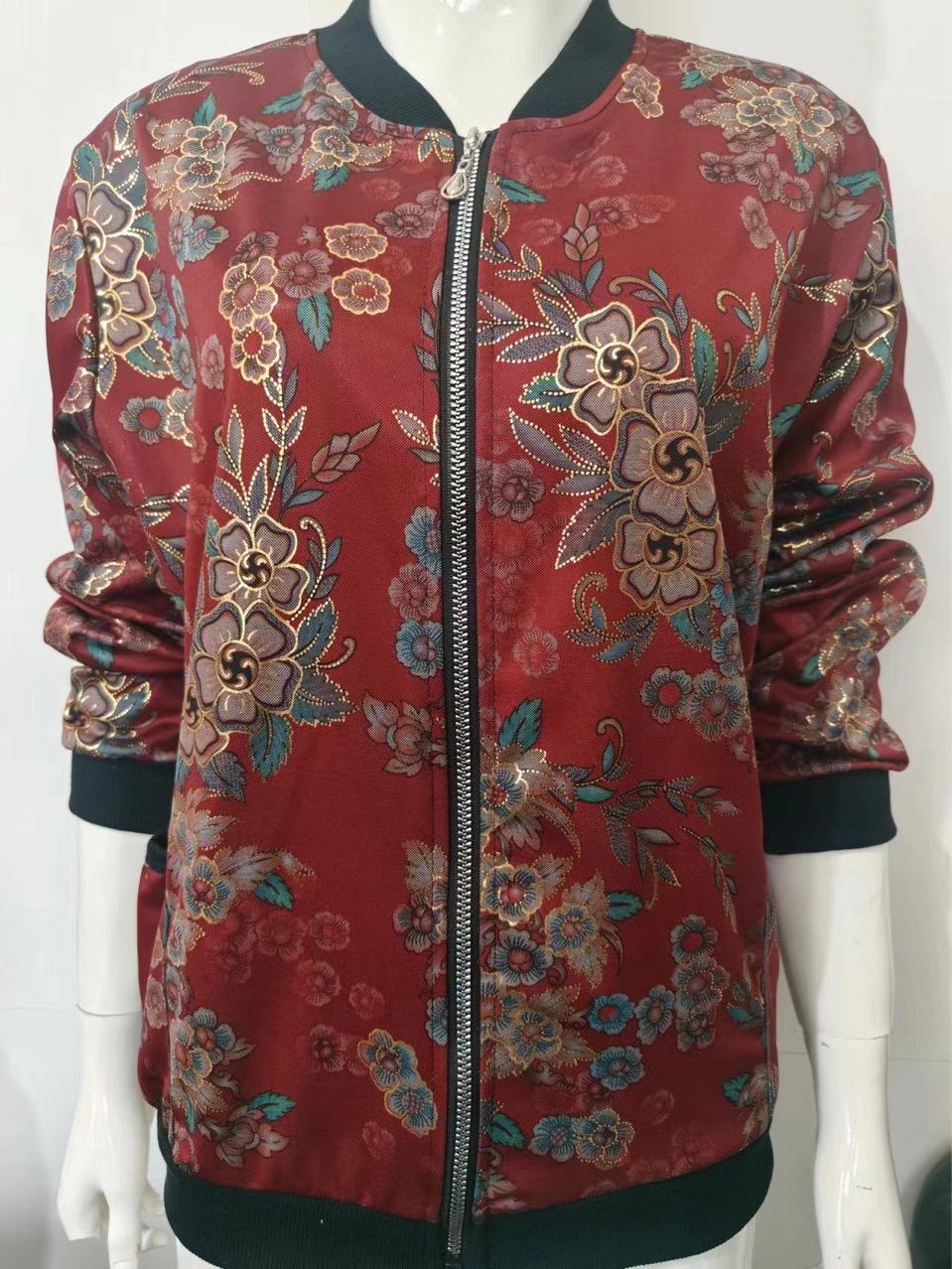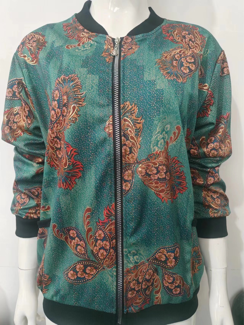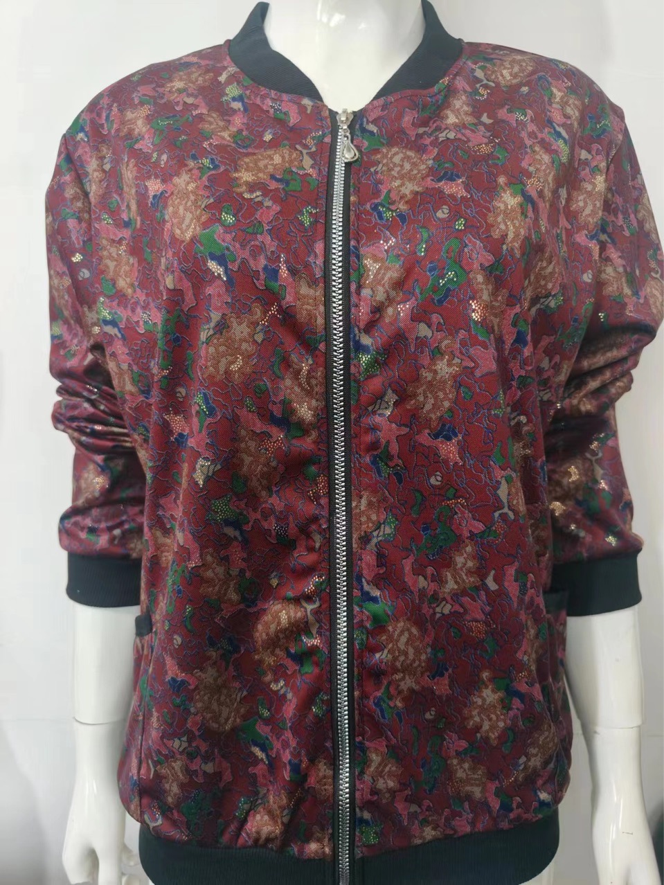 2024外套中老年人秋装女长袖上衣新款春秋立领夹克韩版休闲加肥大