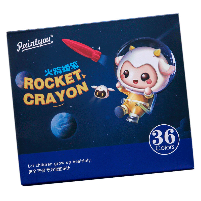 绘儿优火箭蜡笔儿童涂鸦造型蜡笔36色水洗不脏手蜡笔24色油画棒