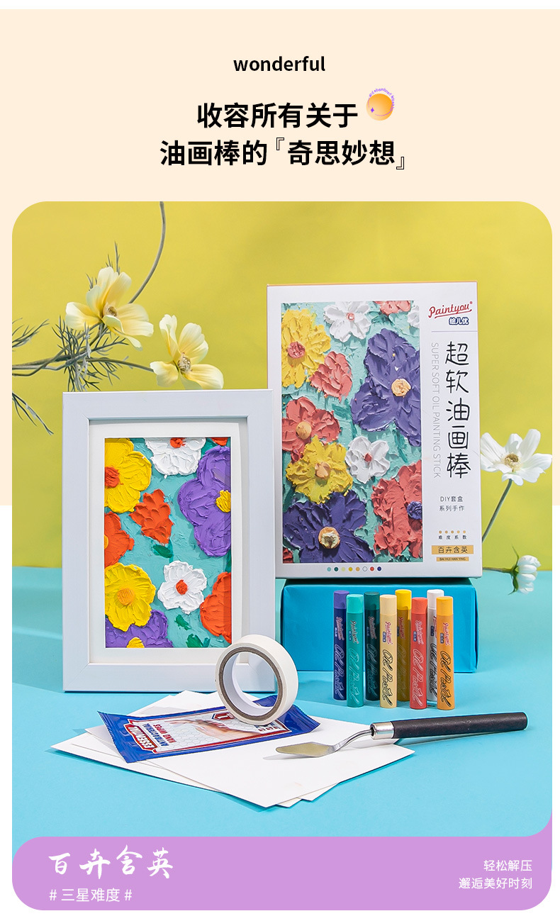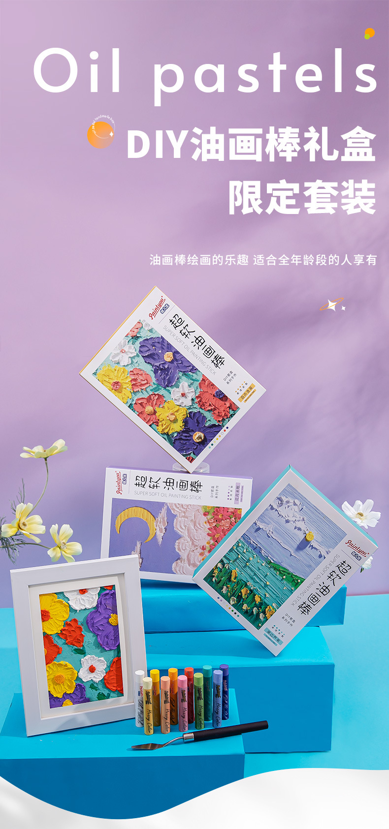 绘儿优重彩油画棒DIY绘画解压套盒批发专业油画棒套盒重彩棒8色