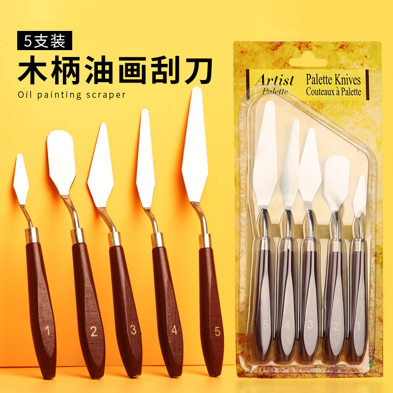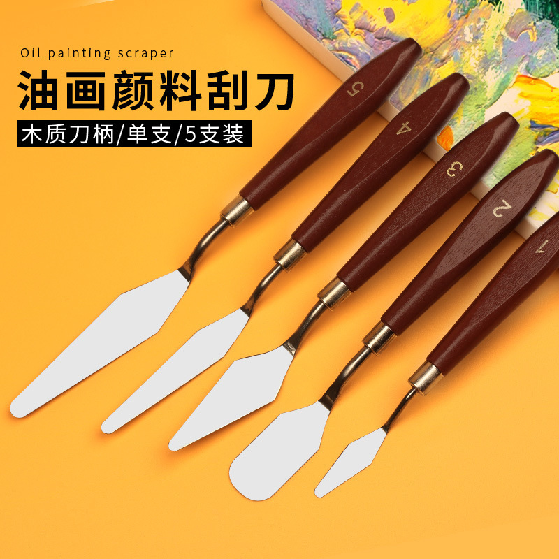 重彩油画棒刮刀调色刀美术刮刀木柄调色刀 铲刀 刮刀套装