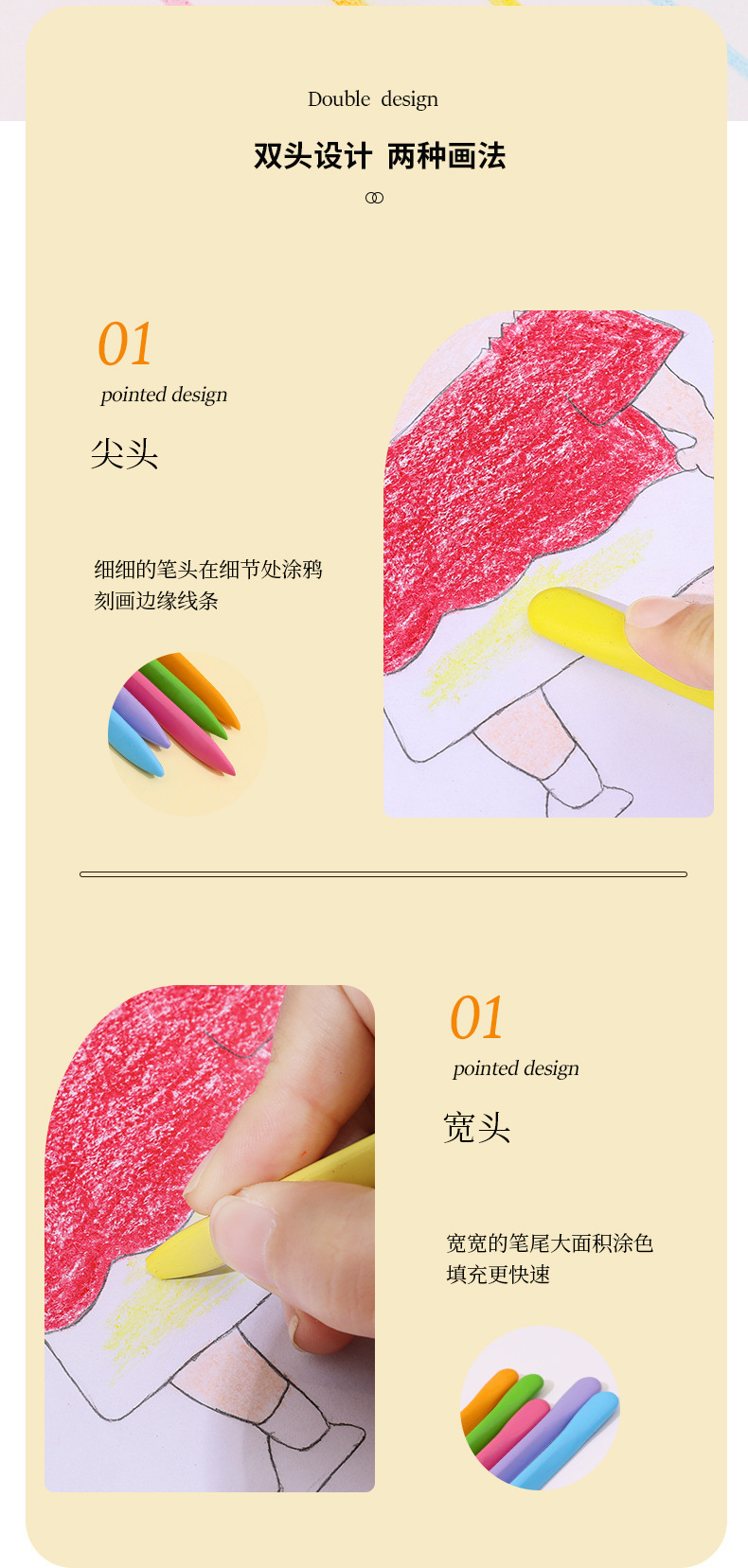 儿童美术专用不脏手蜡笔可水洗彩色笔12色蜡笔绘画涂鸦三角杆画笔