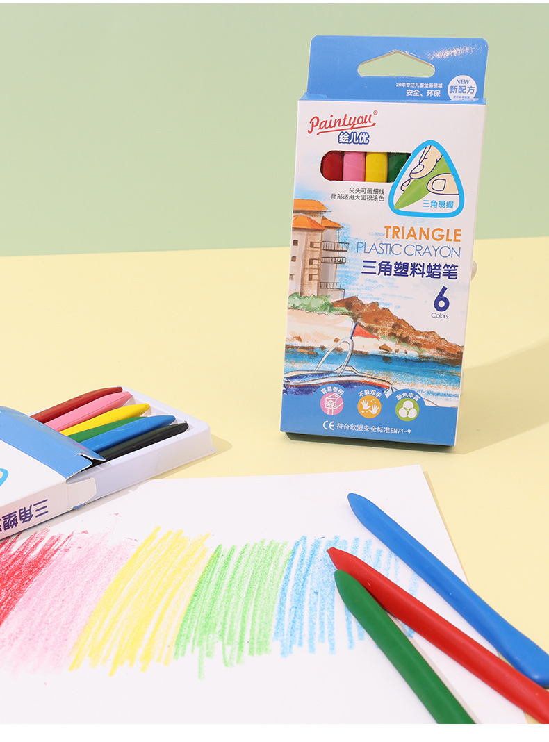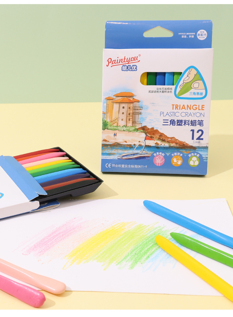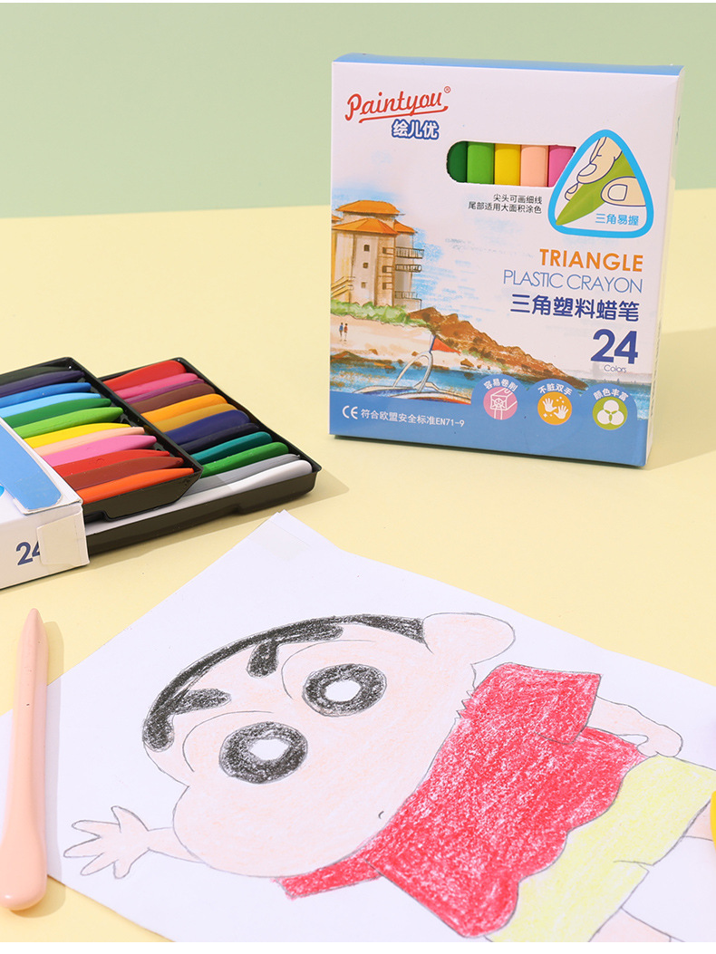 绘儿优三角蜡笔不沾手塑料12色24色蜡笔画笔防水油画棒工厂批发